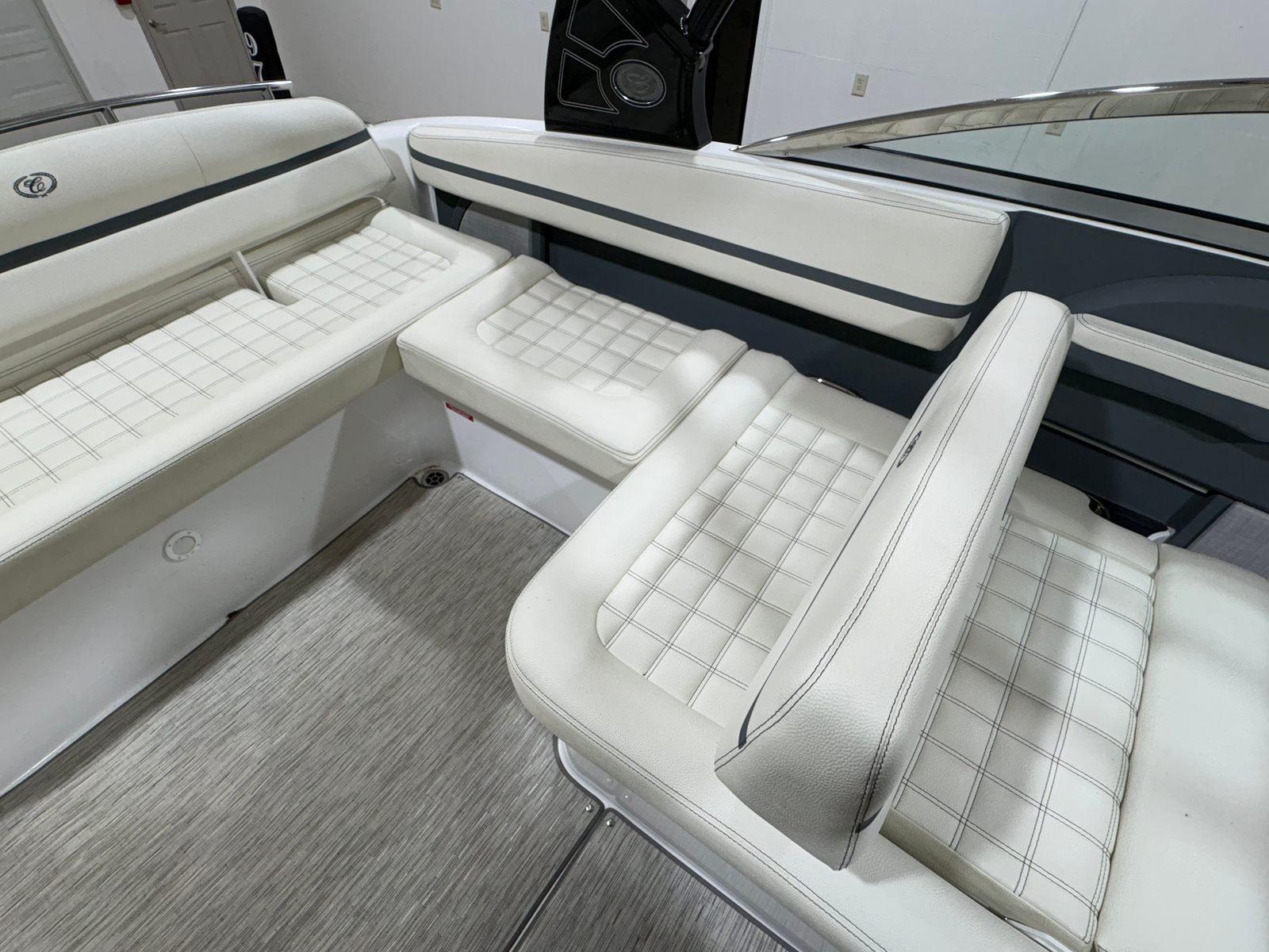 The 2021 Cobalt R5 Bowrider is packed with features designed to elevate your boating experience. Its spacious 25.67-foot layout provides generous seating and lounging areas, making it ideal for entertaining guests or relaxing with family. The ergonomic helm station offers intuitive controls and excellent visibility, ensuring a safe and enjoyable journey every time you set out.The open bow configuration is a hallmark of Bowrider boats, offering easy access to the water and a versatile space for sunbathing, socializing, or simply enjoying the view. The cockpit is designed for comfort, with plush seating and ample legroom. Storage compartments are strategically placed throughout the boat, allowing you to stow gear, snacks, and personal items securely and conveniently.