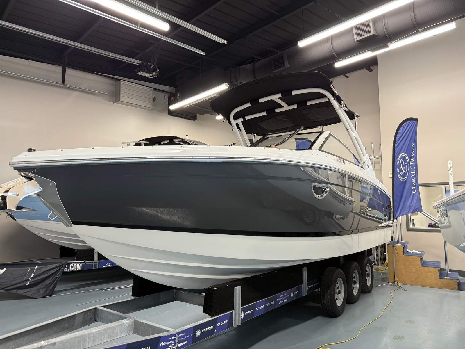 The Cobalt R6 OB is designed with practicality in mind, making ownership as enjoyable as it is effortless. The folding arch and Bimini top provide flexible shade options, adapting to changing weather and your preferred level of sun exposure. The battery maintainer/charger keeps your systems powered up and ready to go, reducing maintenance hassles and ensuring reliability. The boarding ladder on the port side makes swimming and water sports more accessible, while the Bow Tonneau Cover protects your investment from the elements. The outboard engine configuration not only enhances performance but also simplifies maintenance and docking, making this Bowrider a smart choice for both new and experienced boaters.
