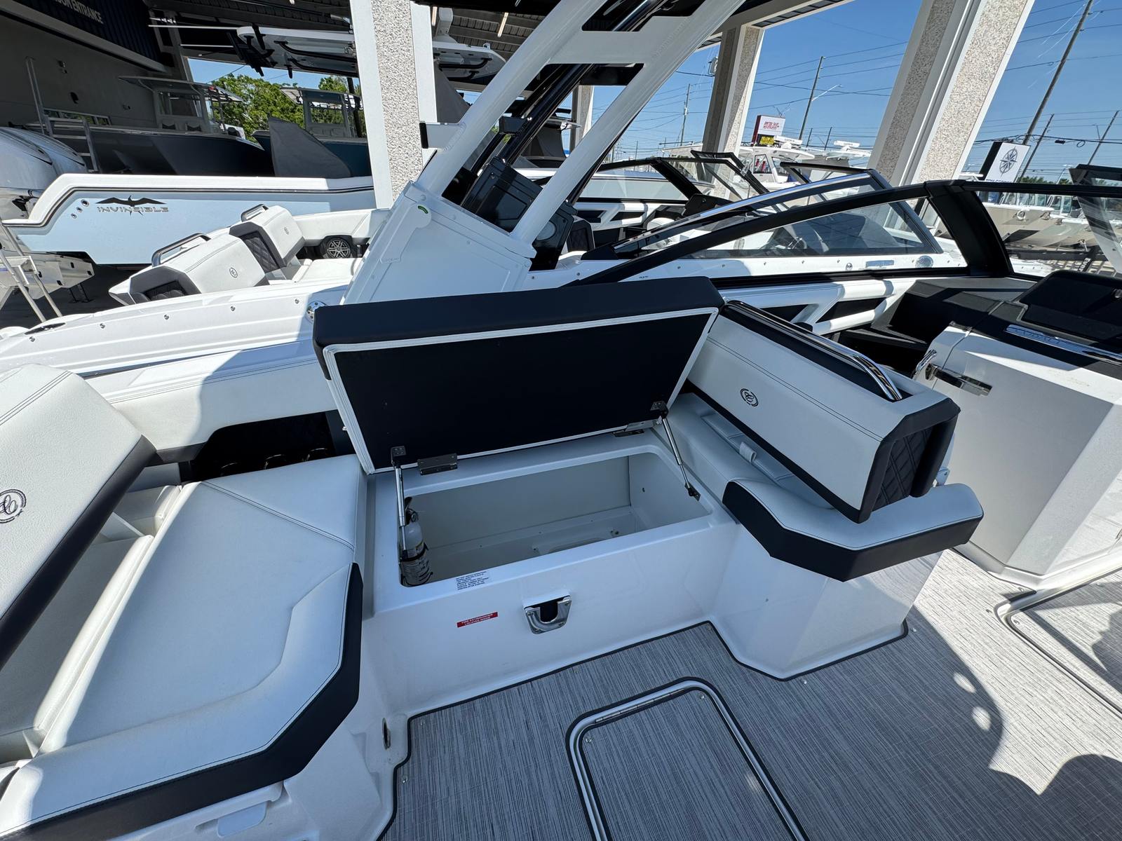 This Cobalt bowrider is the perfect companion for a wide range of on-water activities. Imagine hosting family outings where everyone can relax, swim, and enjoy the sun in comfort and style. The spacious layout and versatile seating make it easy to accommodate guests, while the dinette table provides a convenient spot for picnics or refreshments.For those who love water sports, the powerful Yamaha F300XSB engine delivers the performance needed for tubing, wakeboarding, or skiing. The easy-access boarding ladder ensures quick transitions between activities, keeping the fun going all day long. If you prefer a more laid-back experience, the rotating shade arch and comfortable seating create the perfect environment for leisurely cruises, sunset watching, or simply soaking in the beauty of your favorite waterway.The R6 OB also shines as a luxury getaway vessel, offering the comfort and amenities needed for romantic escapes or peaceful solo adventures. Its stylish design and premium features make every trip feel like a special occasion, whether you’re exploring new destinations or revisiting beloved spots.