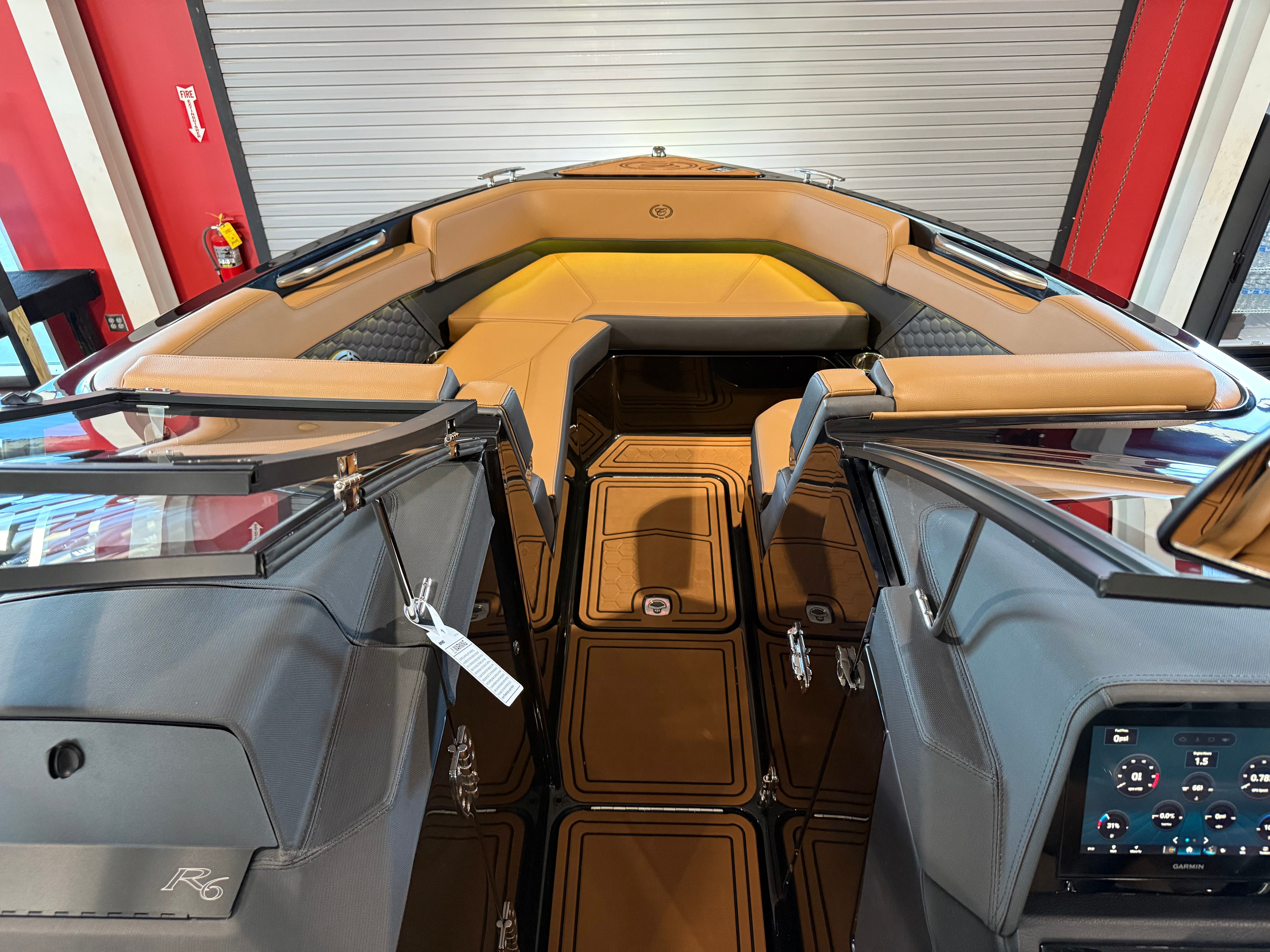 Beyond its impressive performance and style, the Cobalt R6 Surf is engineered for practicality and ease of ownership. The battery maintainer/charger helps keep your boat ready for spontaneous outings, while the stainless steel docking lights make docking and navigating marinas a breeze, even after sunset. The electric arch with Bimini provides quick and convenient shade, enhancing comfort during long days on the water.The thoughtful design extends to storage solutions, allowing you to stow away essentials and keep the deck clutter-free. The intuitive glass cockpit with dual Garmin 8610 displays simplifies navigation and system management, reducing stress and increasing your confidence as captain. These practical features make the R6 Surf not only a joy to own but also easy to maintain and operate.