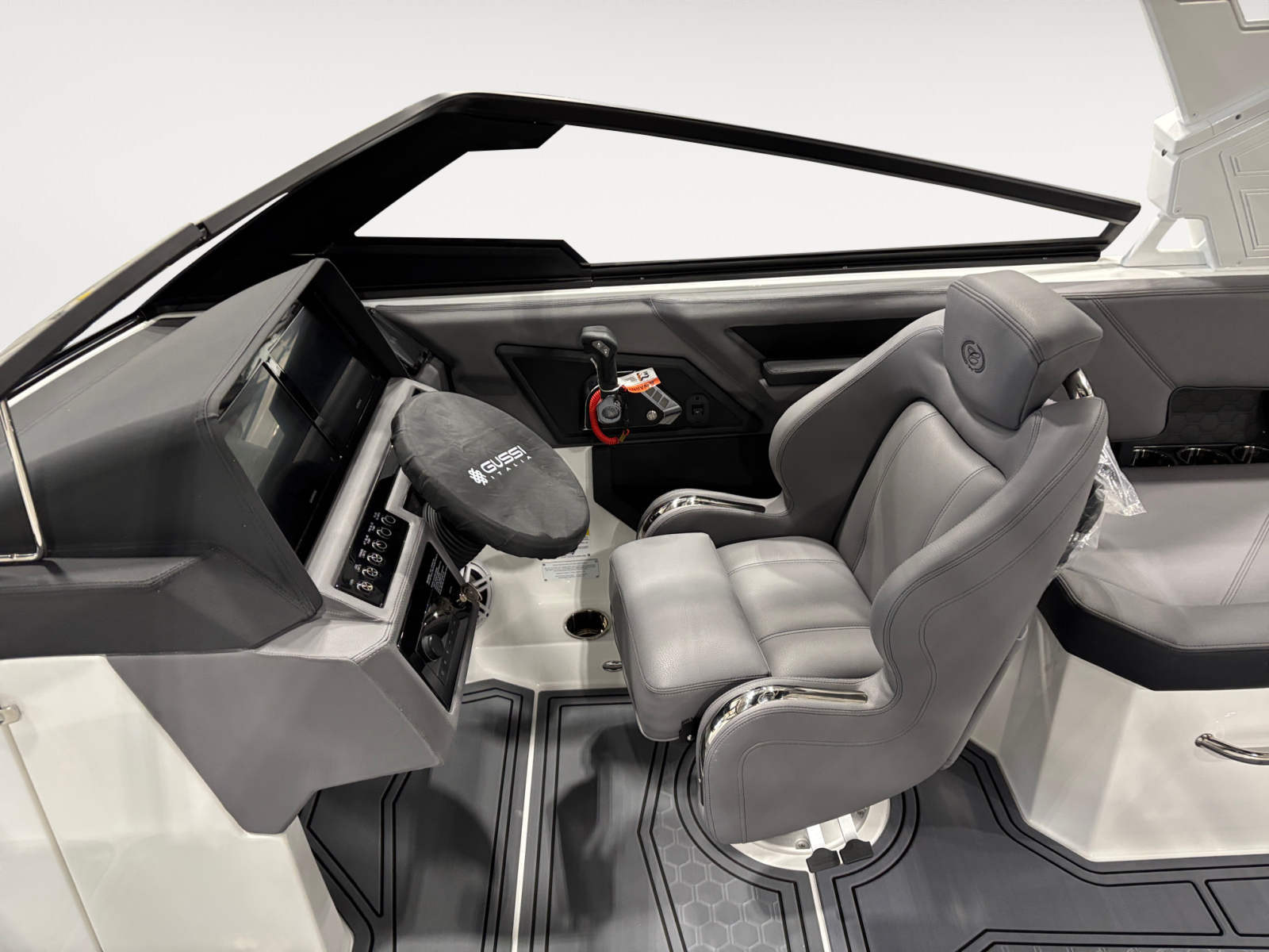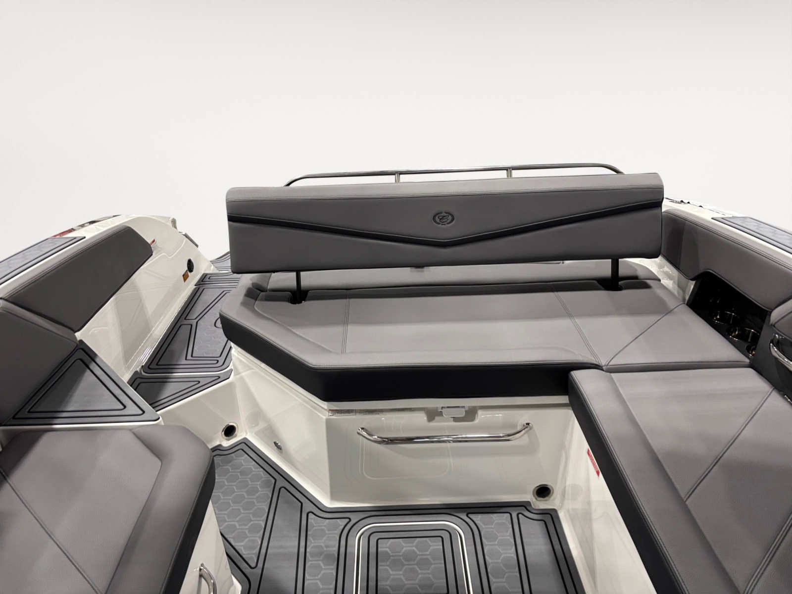 The Cobalt R6 Surf is loaded with premium features that elevate your boating experience. The battery maintainer/charger (110V) ensures your boat is always ready for action, while the rear-facing camera provides enhanced visibility for safer maneuvering and docking. The Cobalt letters in black satin add a touch of sophistication to the boat’s exterior, complemented by stainless steel docking lights that not only enhance safety but also contribute to the boat’s modern aesthetic.The white (folding) El Arch with Prisma and the ebony rotating shade offer both style and functionality, providing shade and comfort for all passengers. The flagpole with flag adds a classic nautical touch, while the glass cockpit with dual Garmin 8610 displays delivers state-of-the-art navigation and control at your fingertips. The head with pump out porta potti ensures convenience during longer outings, and the LED interior accent lighting, featuring customizable R/G/B colors, creates a vibrant and inviting atmosphere for evening cruises.