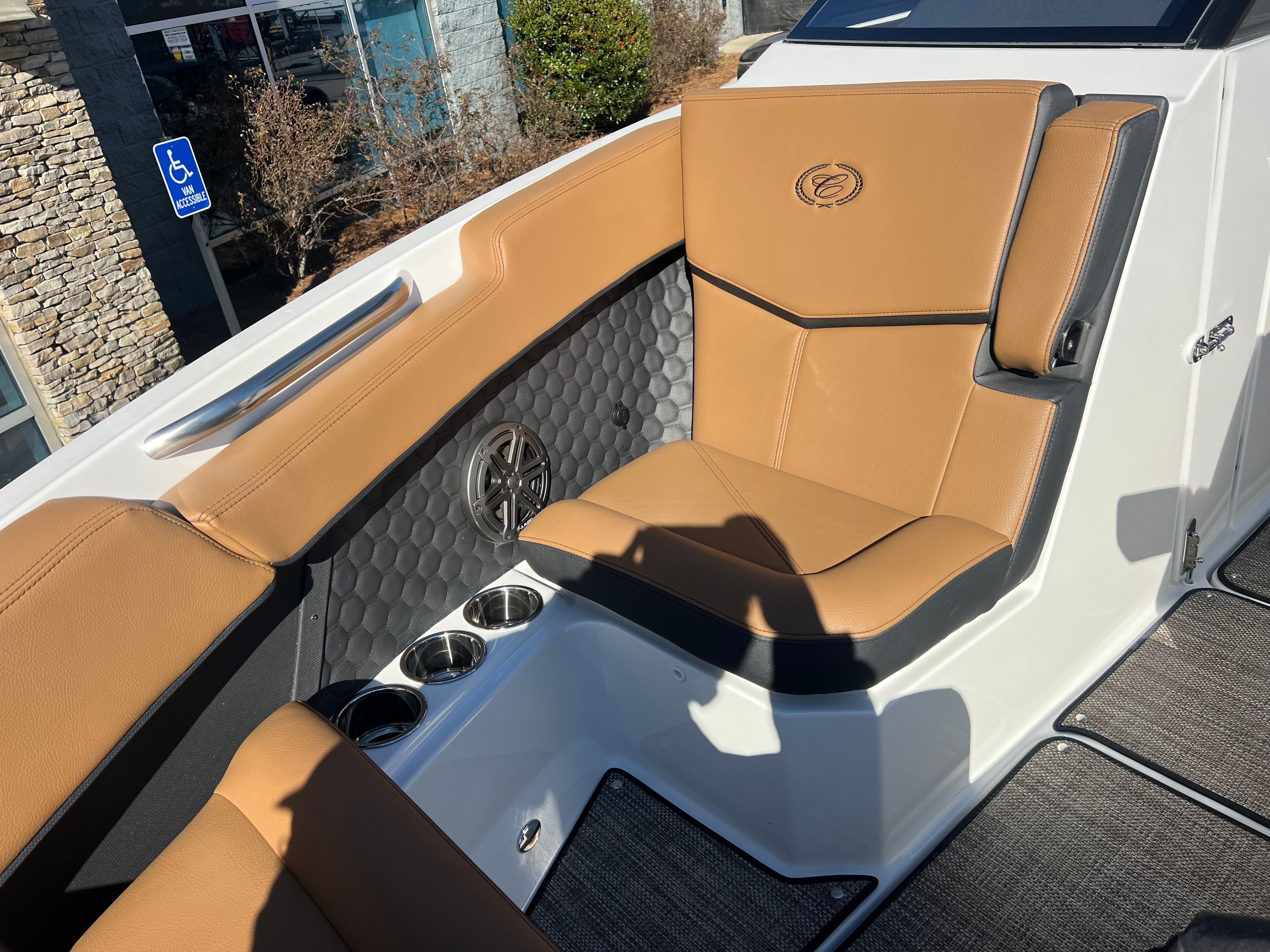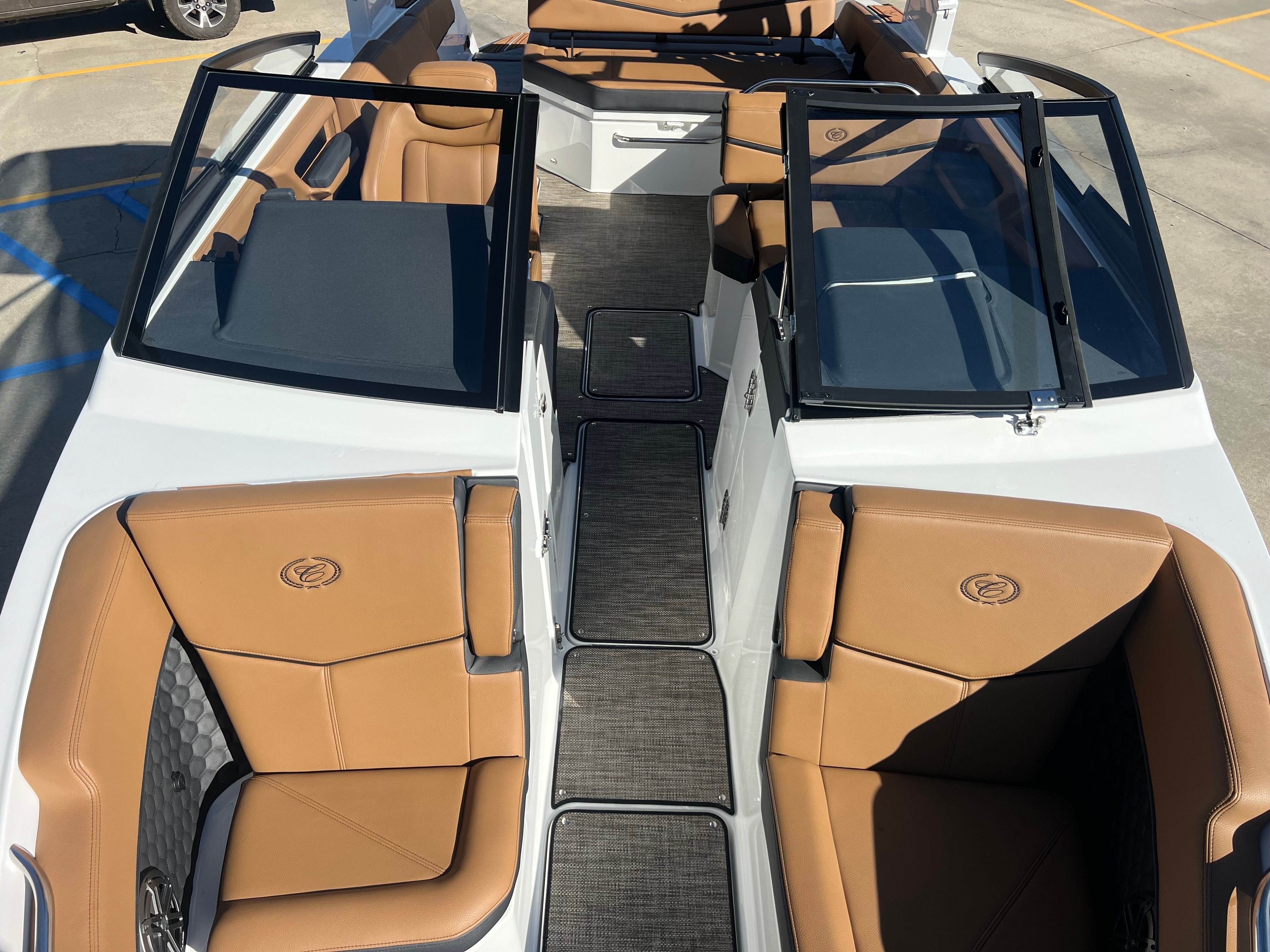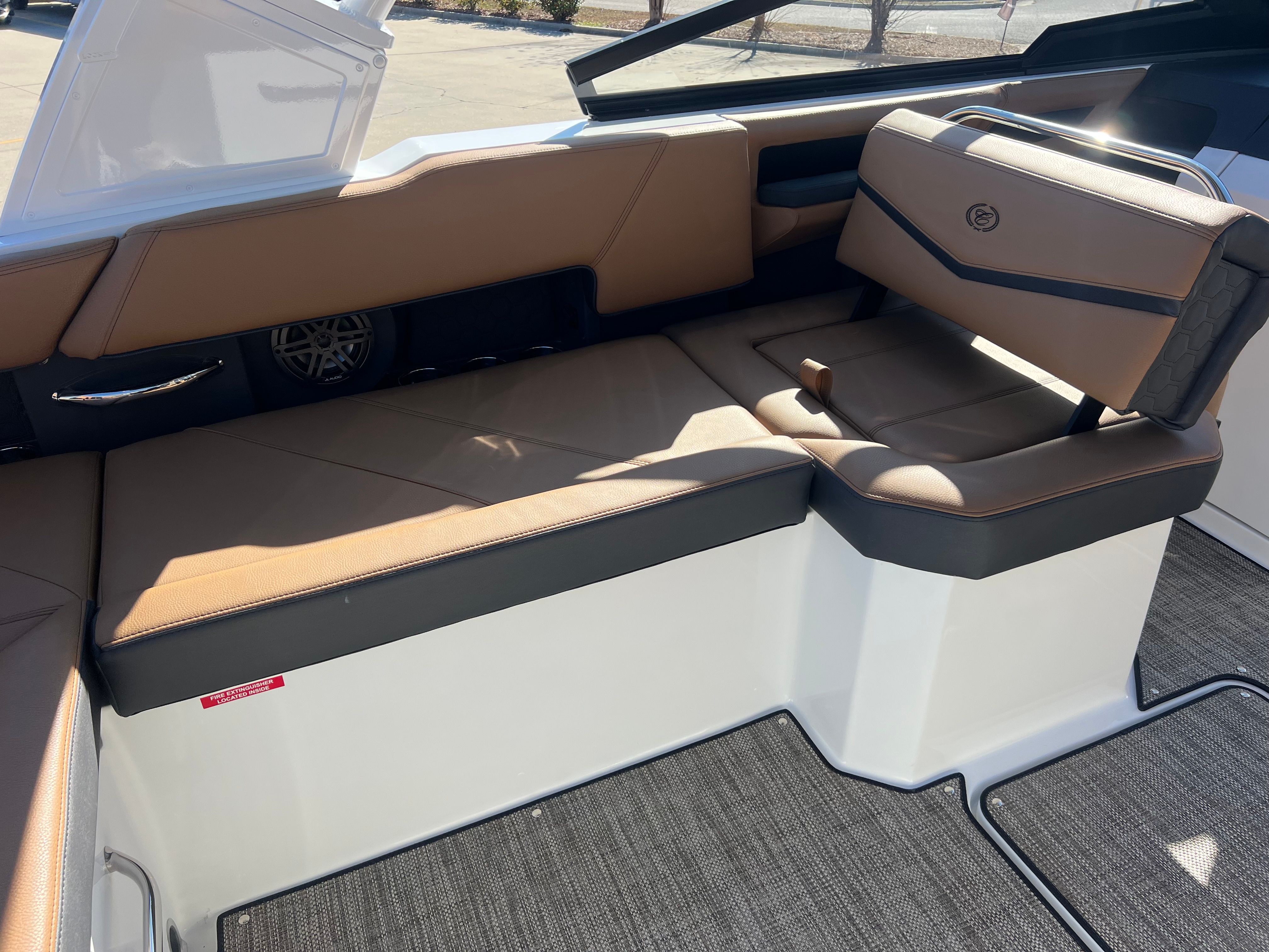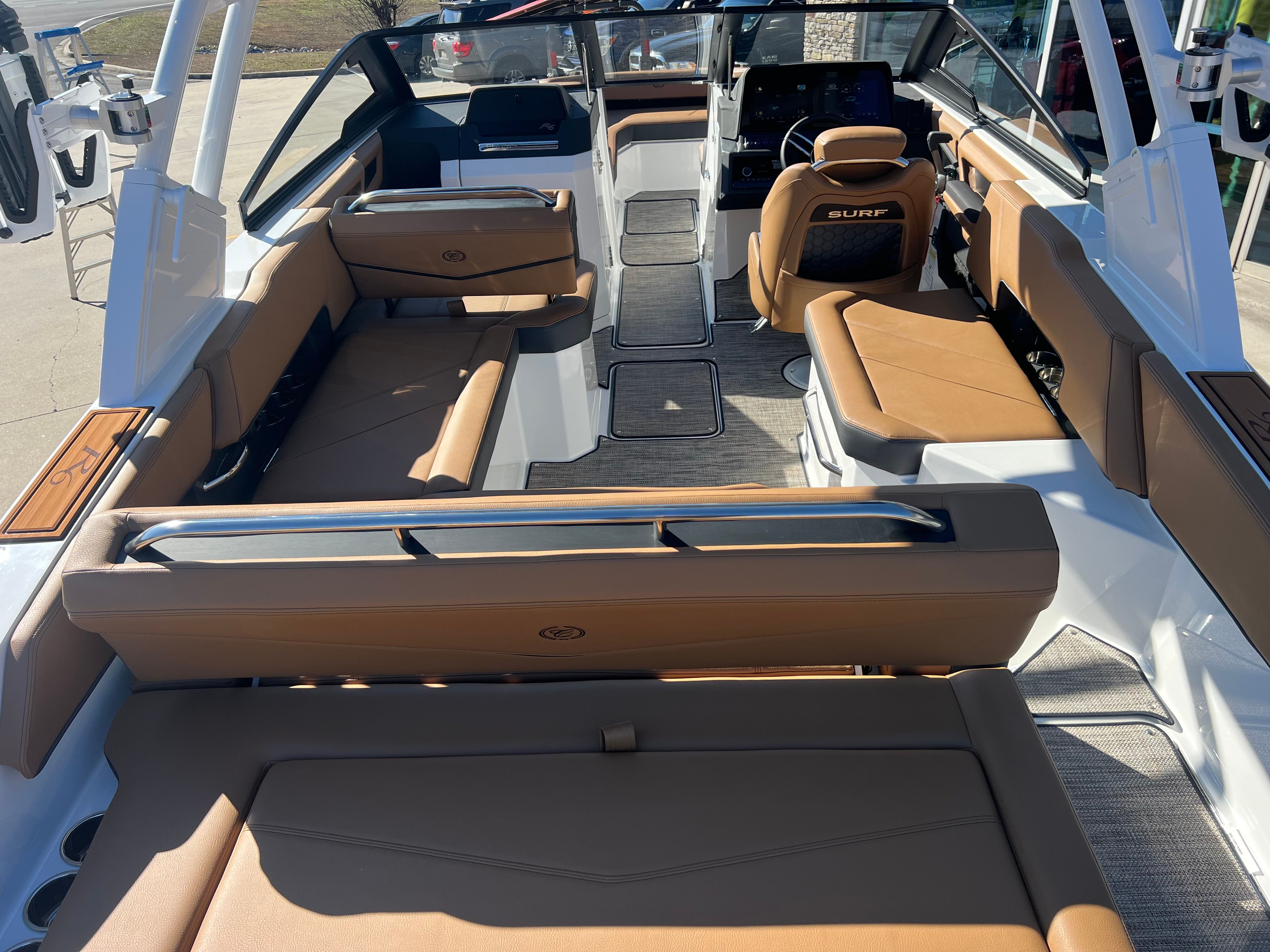 The Cobalt R6 Surf is packed with special features that set it apart from other Bowrider boats for sale. The Upper Surf Accent in Navy and Surf Mid Hull Side in White create a dynamic visual appeal, while the Accent Stripe and Hull Bottom in Navy add a touch of sophistication. The interior, finished in Caramel, Carbon, and Ebony, offers plush seating and a stylish environment for passengers.This model is equipped with a Battery Maintainer/Charger, ensuring your boat is always ready for action. Bow Filler Cushions provide additional comfort and flexibility, allowing you to customize the seating arrangement for lounging or socializing. The Rear Facing Camera enhances safety and convenience, giving you a clear view of the action behind the boat—perfect for monitoring surfers or swimmers. Stainless Steel Docking Lights not only add a premium touch but also improve visibility during evening outings or when docking in low-light conditions.