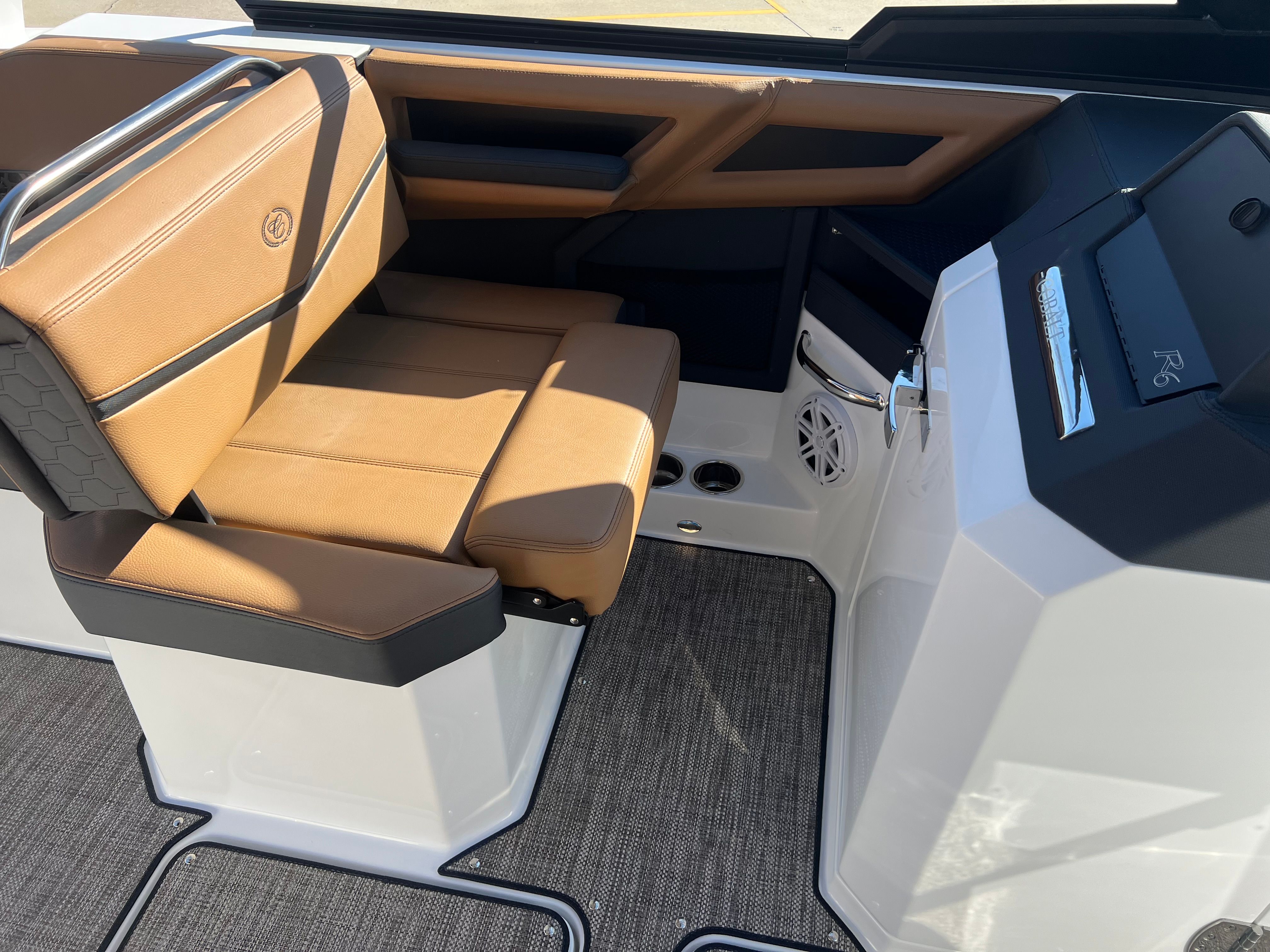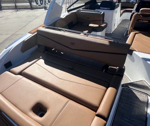 The Cobalt R6 Surf is designed with practicality in mind, making ownership as enjoyable as the boating experience itself. The Battery Maintainer/Charger keeps your boat’s electrical system in top condition, reducing downtime and ensuring reliability. The single-engine setup simplifies maintenance and operation, while still delivering robust performance for all your water adventures.Docking is a breeze thanks to the Stainless Steel Docking Lights, which provide excellent visibility and add a touch of elegance to the boat’s exterior. The spacious layout offers plenty of storage for gear, water toys, and personal items, so you can bring everything you need for a day on the water. The Bow Filler Cushions allow you to adapt the seating to suit your needs, whether you’re hosting a party or enjoying a quiet afternoon.