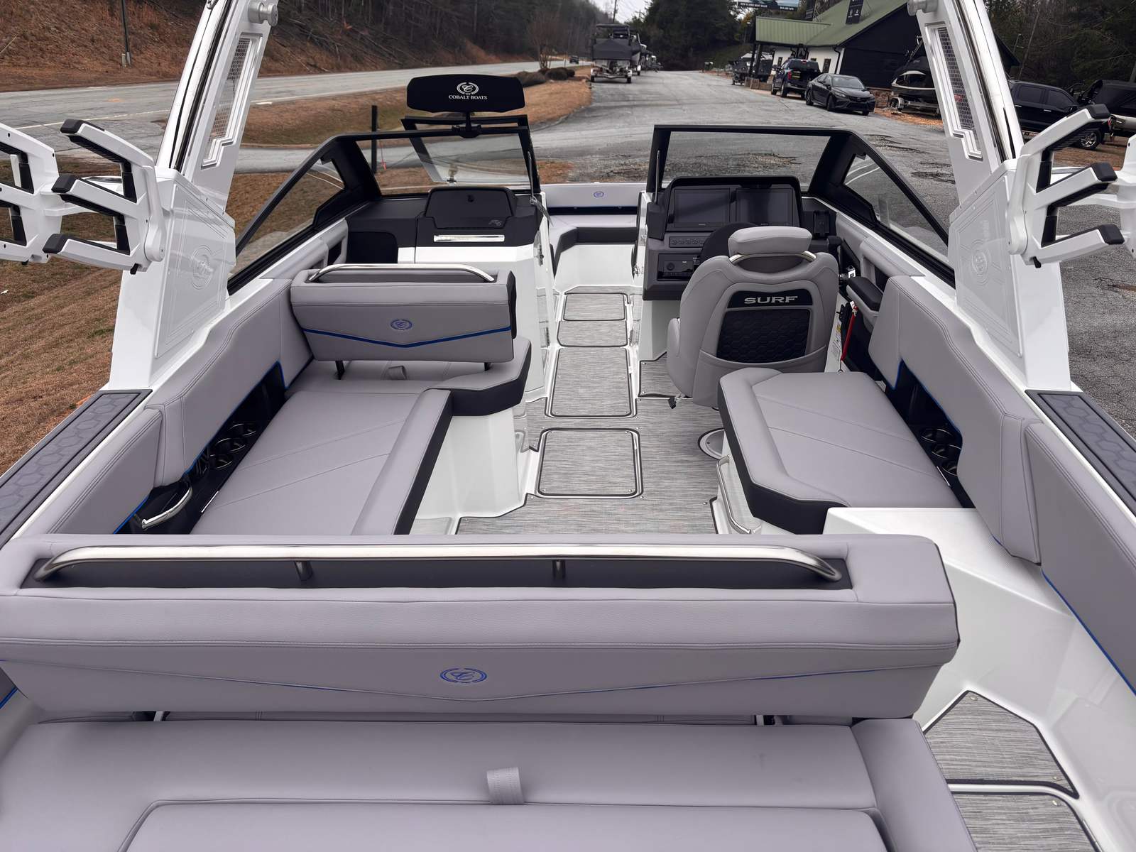 In summary, the 2026 Cobalt R6 Surf is a remarkable bowrider that combines power, luxury, and innovation in one stunning package. With its impressive 430 horsepower Monsoon engine, elegant design, and a host of premium features—including Cobalt Letters in White Satin, stainless steel docking lights, white electric arch, Prisma Navy folding bimini, seagrass silver ash flooring, frost/slate/pacific blue interior, glass cockpit with dual Garmin 8610, head with pump out porta potti, LED interior accent lighting, and mooring cover with Prisma folding arch—this Cobalt boat for sale is ready to deliver unforgettable experiences on the water.If you are looking for a new bowrider that offers exceptional performance, comfort, and style, the Cobalt R6 Surf is an outstanding choice. Discover the joys of boating with this incredible vessel and contact your local dealer today to learn more about making the 2026 Cobalt R6 Surf yours.