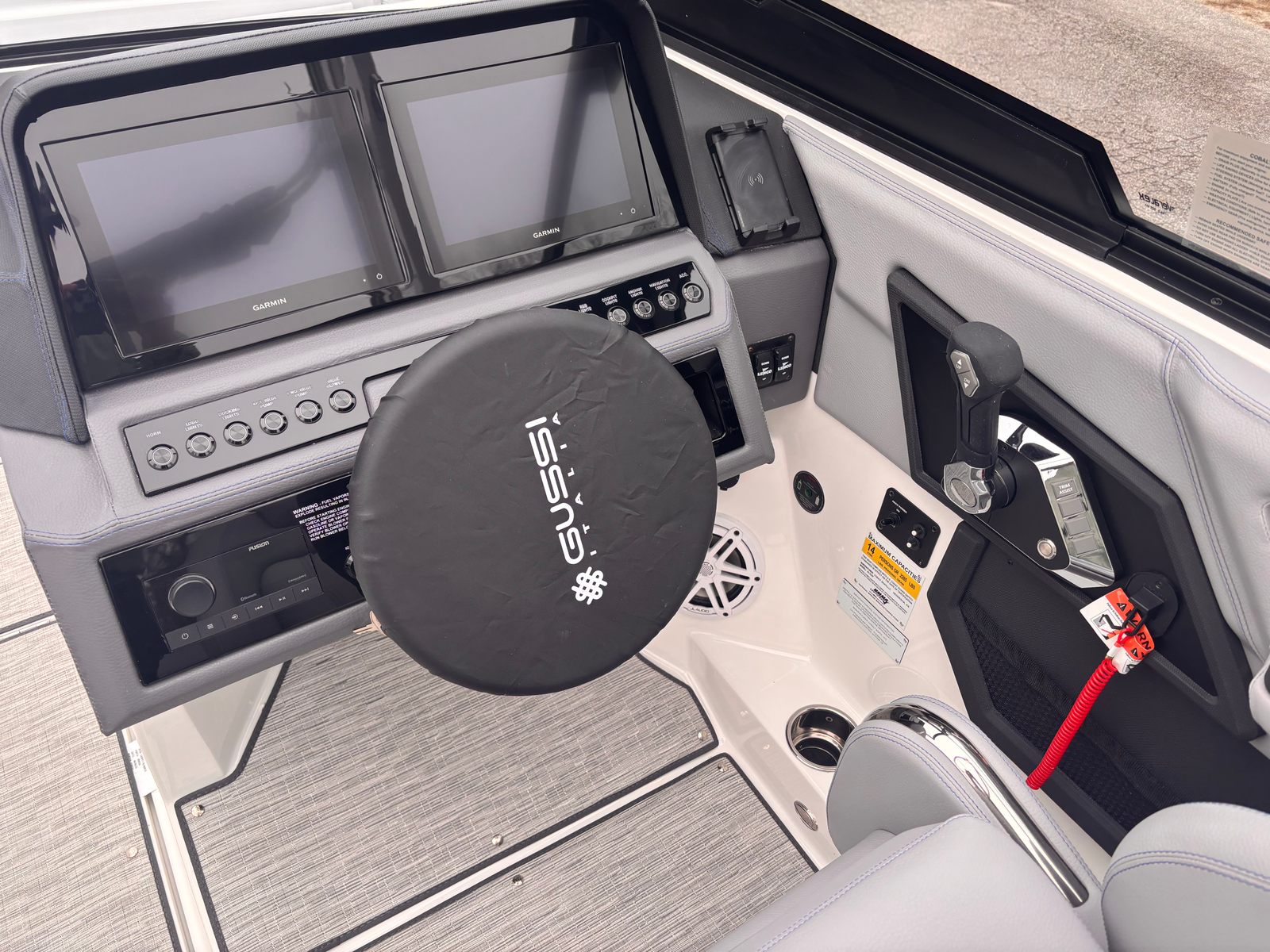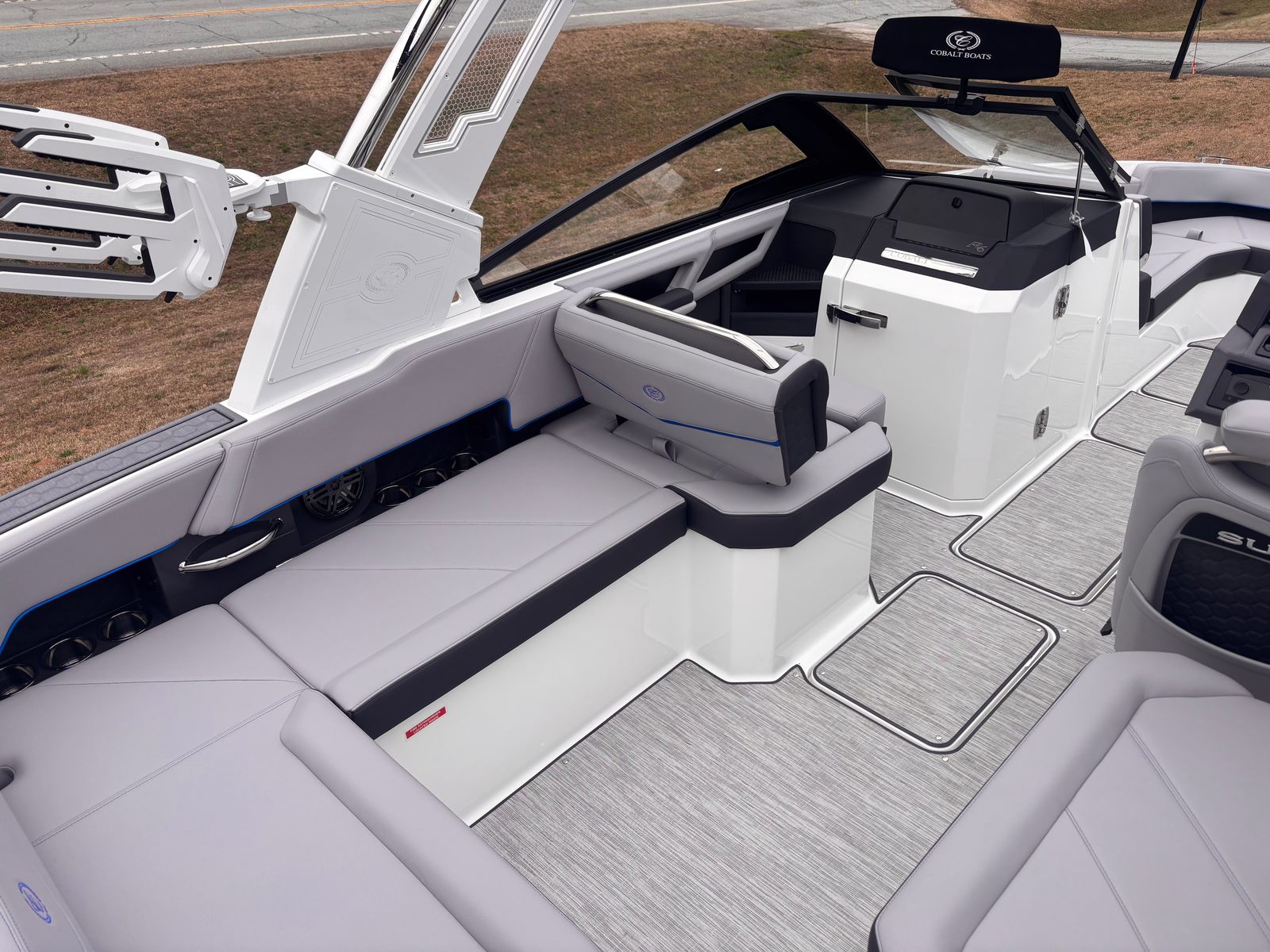 The Cobalt R6 Surf is loaded with premium features designed to enhance your time on the water. The striking Cobalt Letters in White Satin add a touch of elegance to the exterior, while the Docking Lights in Stainless Steel ensure safe and stylish arrivals at any time of day. The White Electric Arch not only adds a modern flair but also offers practical benefits, such as easy storage and improved visibility. The Prisma, Navy (Folding) Bimini provides versatile shade options, allowing you to enjoy sunny days in comfort.Step aboard and experience the luxury of the Seagrass, Silver Ash floor covering, which is both durable and comfortable underfoot. The interior, finished in Frost, Slate, and Pacific Blue, creates a sophisticated and inviting atmosphere. The Glass Cockpit, featuring Dual Garmin 8610 displays, puts advanced navigation and control at your fingertips, ensuring you are always in command of your journey. For added convenience, the R6 Surf includes a Head with Pump Out Porta Potti, making longer trips more comfortable for everyone on board.LED Interior Accent Lighting with customizable R/G/B settings allows you to set the perfect mood for any occasion, while the Mooring Cover with Prisma Folding Arch ensures your boat stays protected when not in use. Every detail of the Cobalt R6 Surf is thoughtfully designed to provide the ultimate boating experience.