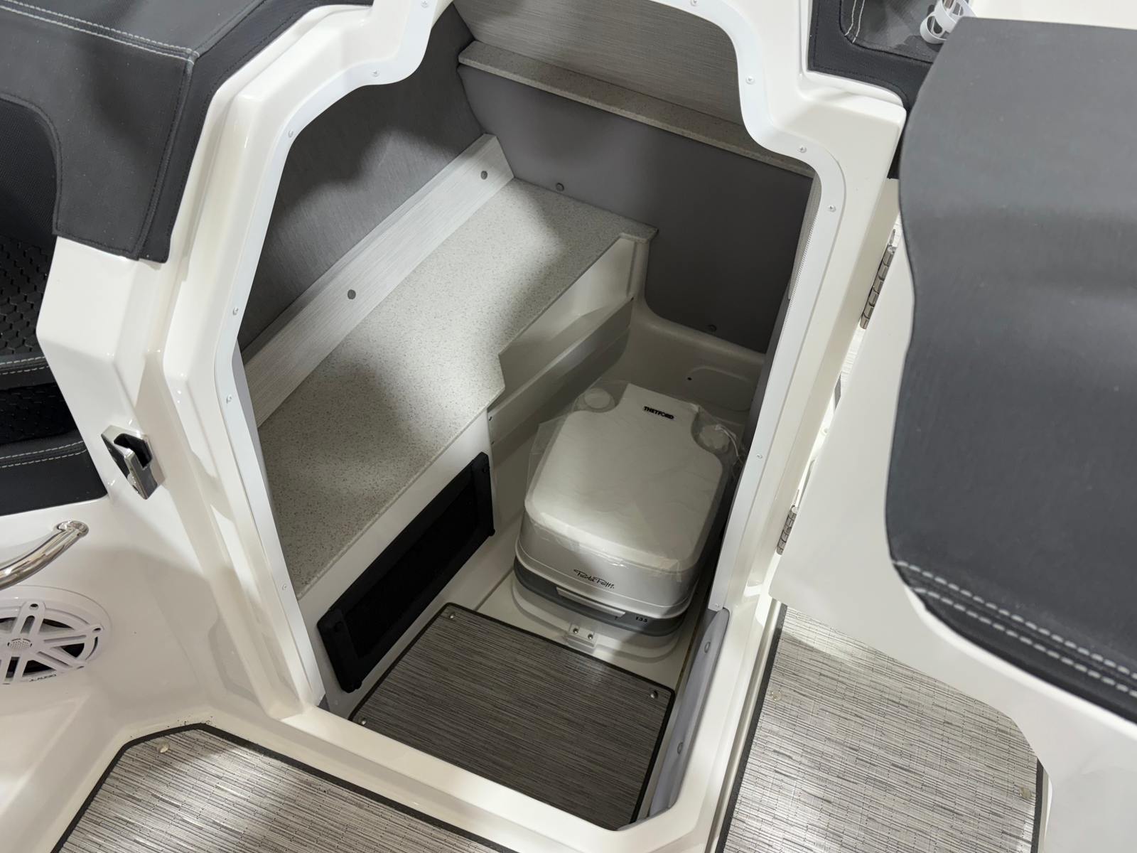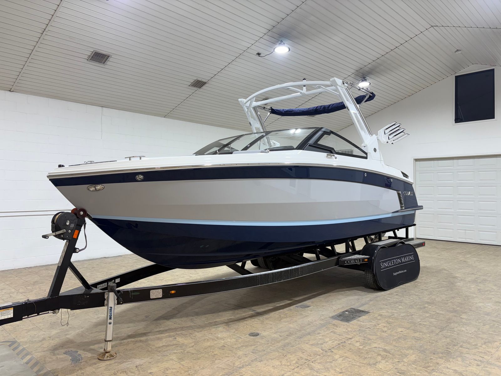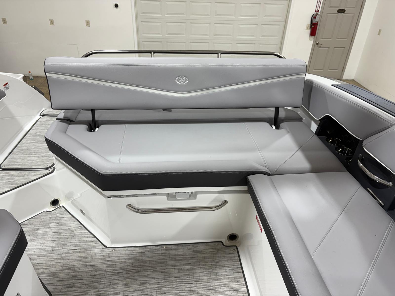 The 2026 Cobalt R6 Surf is a remarkable bowrider, measuring an impressive 25.75 feet in length. This new model is meticulously crafted to provide ample space for friends and family, making it ideal for social gatherings, water sports, or simply relaxing under the sun. The sleek lines and modern design of the R6 Surf are accentuated by its navy hull bottom, which not only adds to its visual appeal but also speaks to the quality and attention to detail that Cobalt is known for. As a new boat, you can expect pristine condition and the latest advancements in marine technology.