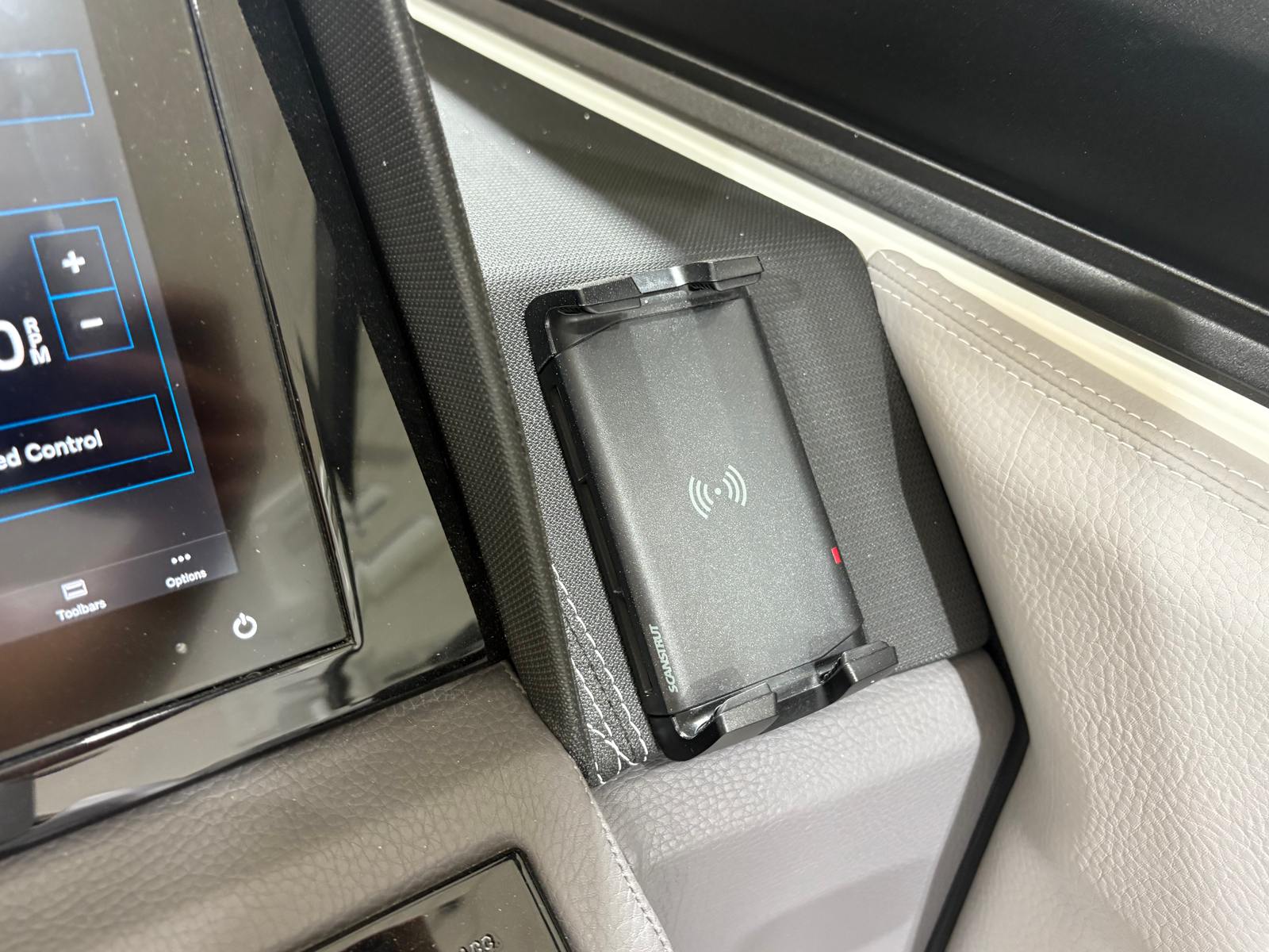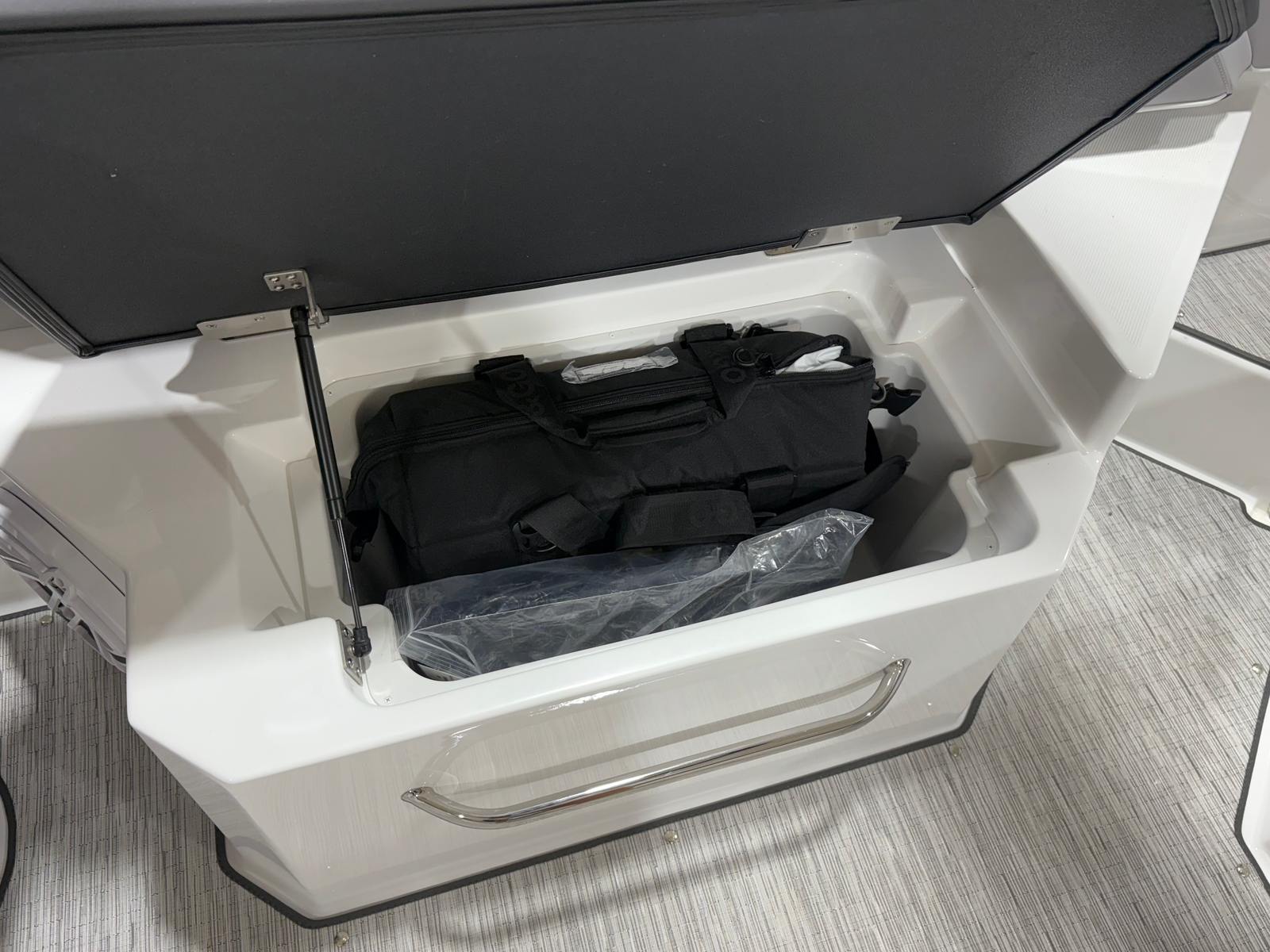 Practicality meets luxury in the Cobalt R6 Surf. The folding electric arch and mooring cover make storage and docking straightforward, protecting your boat and simplifying maintenance. The stainless steel docking lights enhance visibility during low-light conditions, making it easier to navigate marinas and docks safely. The Seagrass floor covering is not only stylish but also durable and easy to clean, ensuring your boat stays looking its best season after season.The dual Volvo 8610 displays in the glass cockpit provide comprehensive information at a glance, streamlining navigation and engine monitoring. The premium sound system, with transom speakers and remote, allows you to control your music from anywhere on the boat, adding convenience and enjoyment to every outing. These practical features make the R6 Surf a pleasure to own and operate, whether you are a seasoned captain or new to boating.
