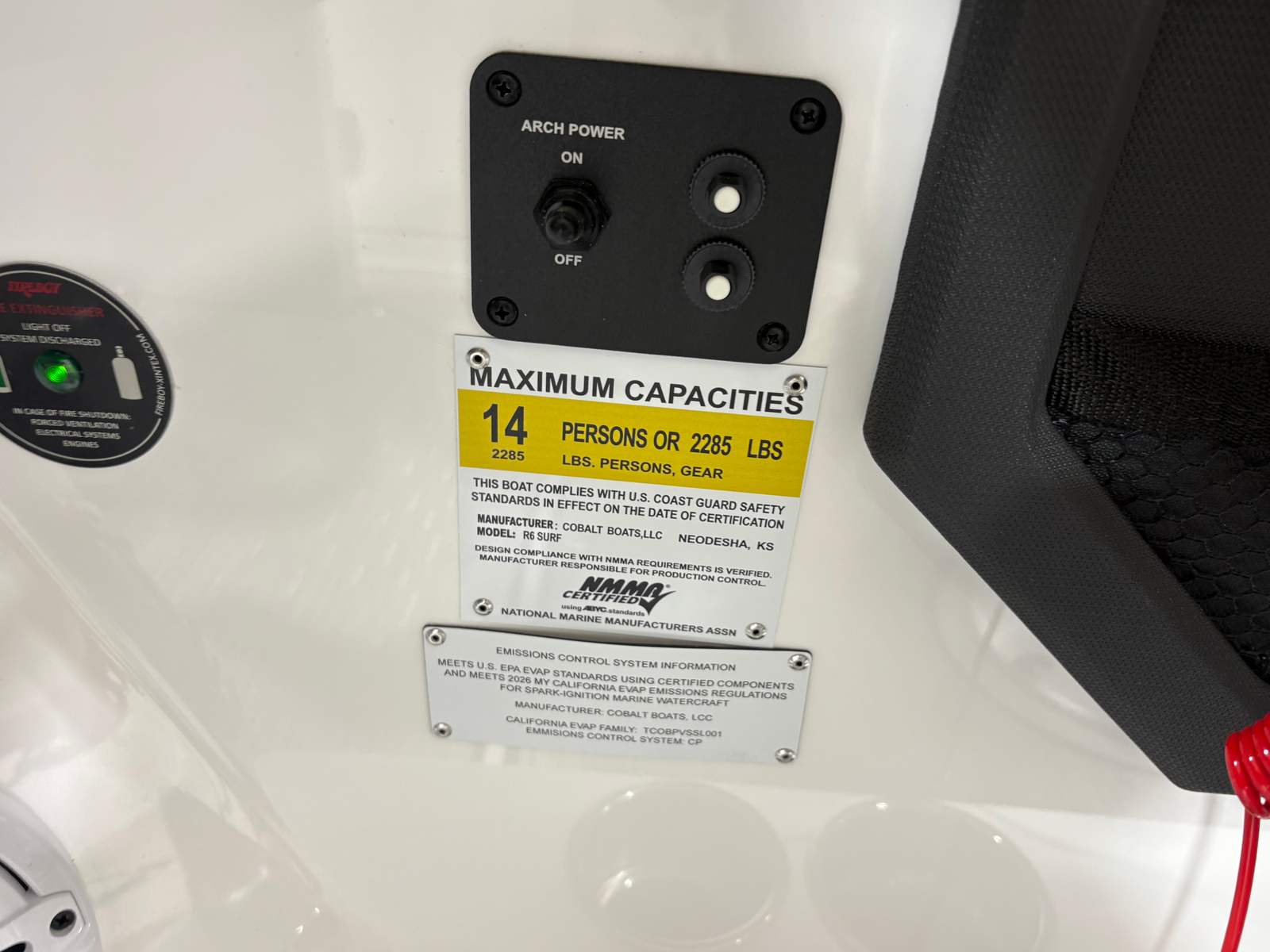 In summary, the 2026 Cobalt R6 Surf is a standout bowrider boat for sale that combines cutting-edge performance, luxurious features, and practical design. With its powerful Volvo V8 380CE DP engine, advanced glass cockpit with dual Volvo 8610 displays, stylish navy hull, and premium sound system, this Cobalt boat for sale is ready to deliver unforgettable experiences on the water. The folding electric arch, Seagrass floor covering, LED accent lighting, and other premium features ensure that every outing is comfortable, convenient, and enjoyable.If you are searching for a new bowrider that offers the perfect blend of excitement, comfort, and style, the Cobalt R6 Surf deserves your attention. Discover the joys of boating with this exceptional vessel and make every day on the water a celebration. Contact your local dealer today to learn more about the 2026 Cobalt R6 Surf and schedule your personal viewing.