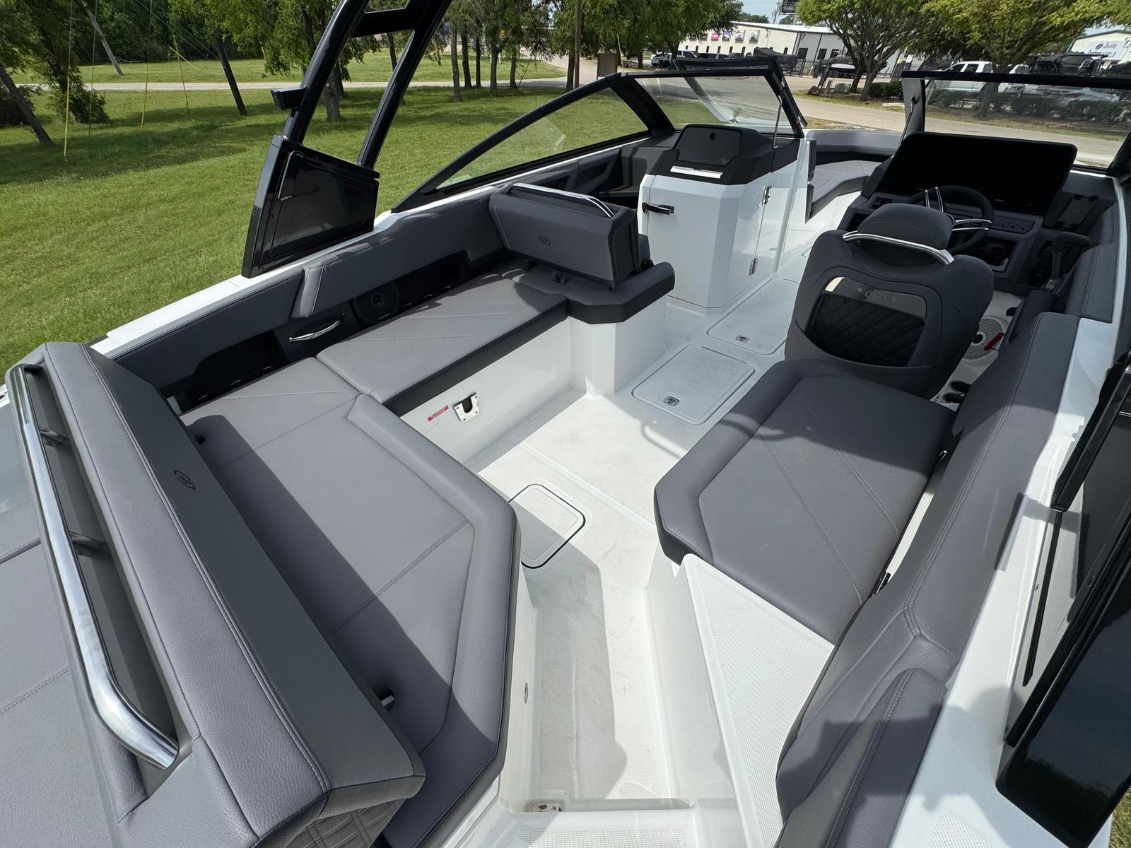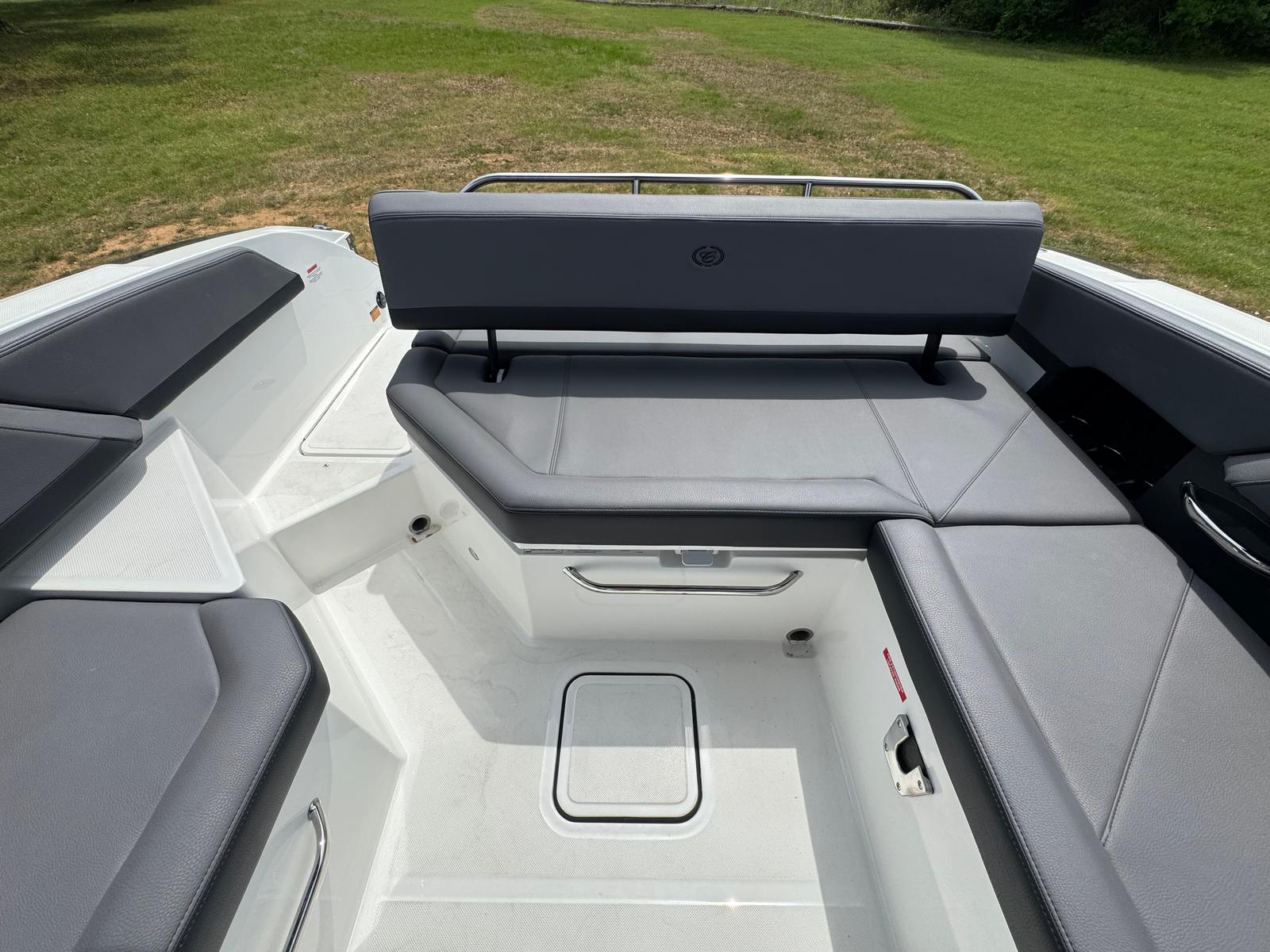 The Cobalt R6 is packed with features that elevate your boating experience. Its spacious bow seating area is perfect for lounging in the sun or enjoying scenic views, while the ergonomic helm station puts all controls within easy reach for the captain. The cockpit is thoughtfully designed to maximize comfort and usability, with plush seating, ample legroom, and intuitive storage solutions. The R6’s innovative layout ensures that every inch of space is utilized efficiently, providing plenty of room for guests and gear alike.Special features of the Cobalt R6 include advanced navigation and control systems, premium upholstery, and a stylish, modern interior. The boat’s high-quality materials and attention to detail are evident throughout, from the sleek dashboard to the durable flooring. The swim platform at the stern offers easy access to the water, making it ideal for swimming, diving, or simply relaxing at anchor.