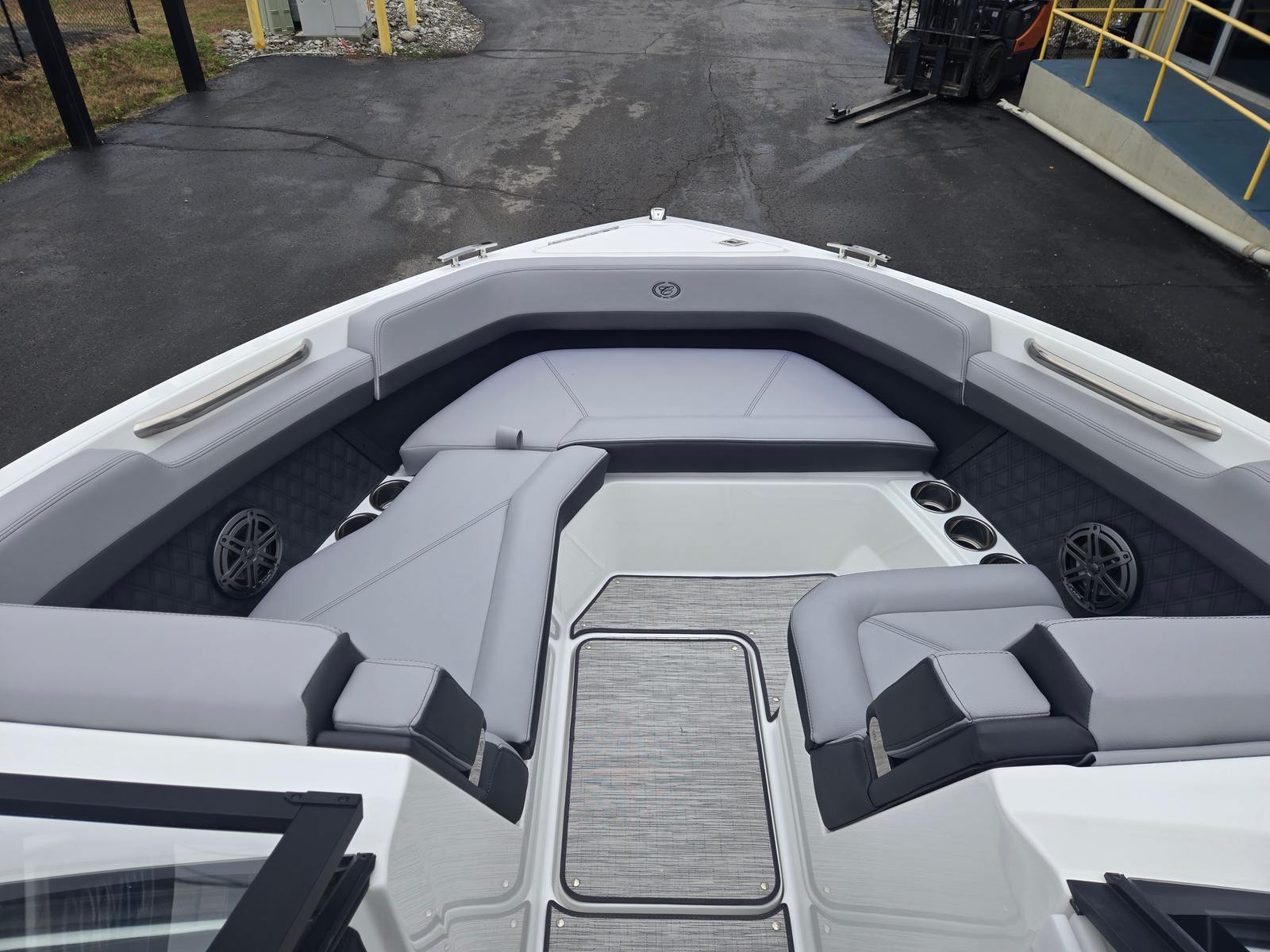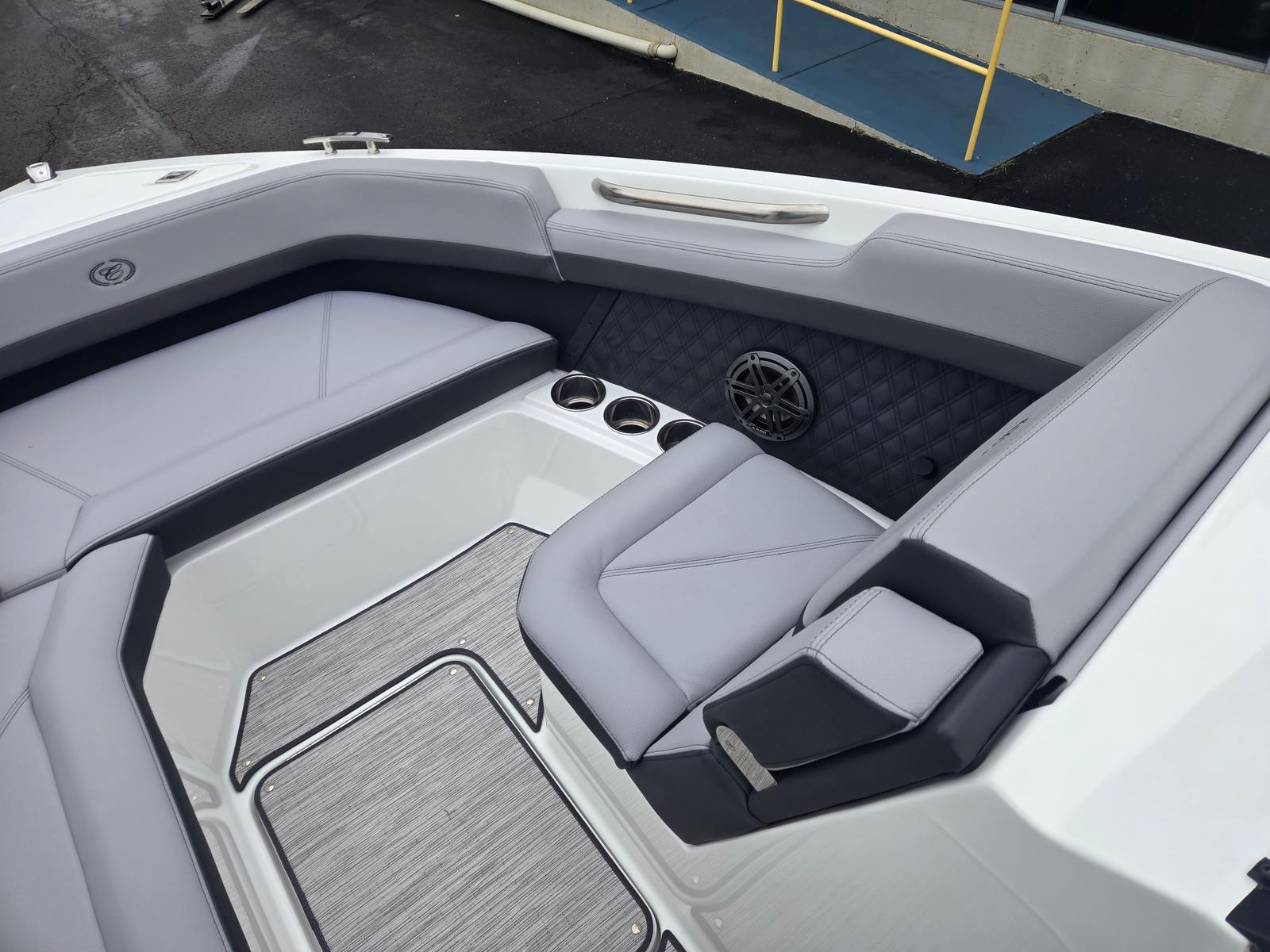 The Cobalt R6 is designed with real-world usability in mind. The generous length and smart layout provide ample storage for gear, water toys, and personal items, keeping the deck clutter-free and organized. The stainless steel docking lights make it easy to approach docks and slips, even in low-light conditions, while the battery charger ensures your systems are always powered up and ready to go.The durable Seagrass floor covering is both attractive and practical, standing up to wet feet and active days on the water. The Bimini top offers quick, adjustable shade, so you can adapt to changing weather and keep everyone comfortable. With its user-friendly controls and advanced Garmin displays, the R6 is as easy to dock and maneuver as it is fun to drive.