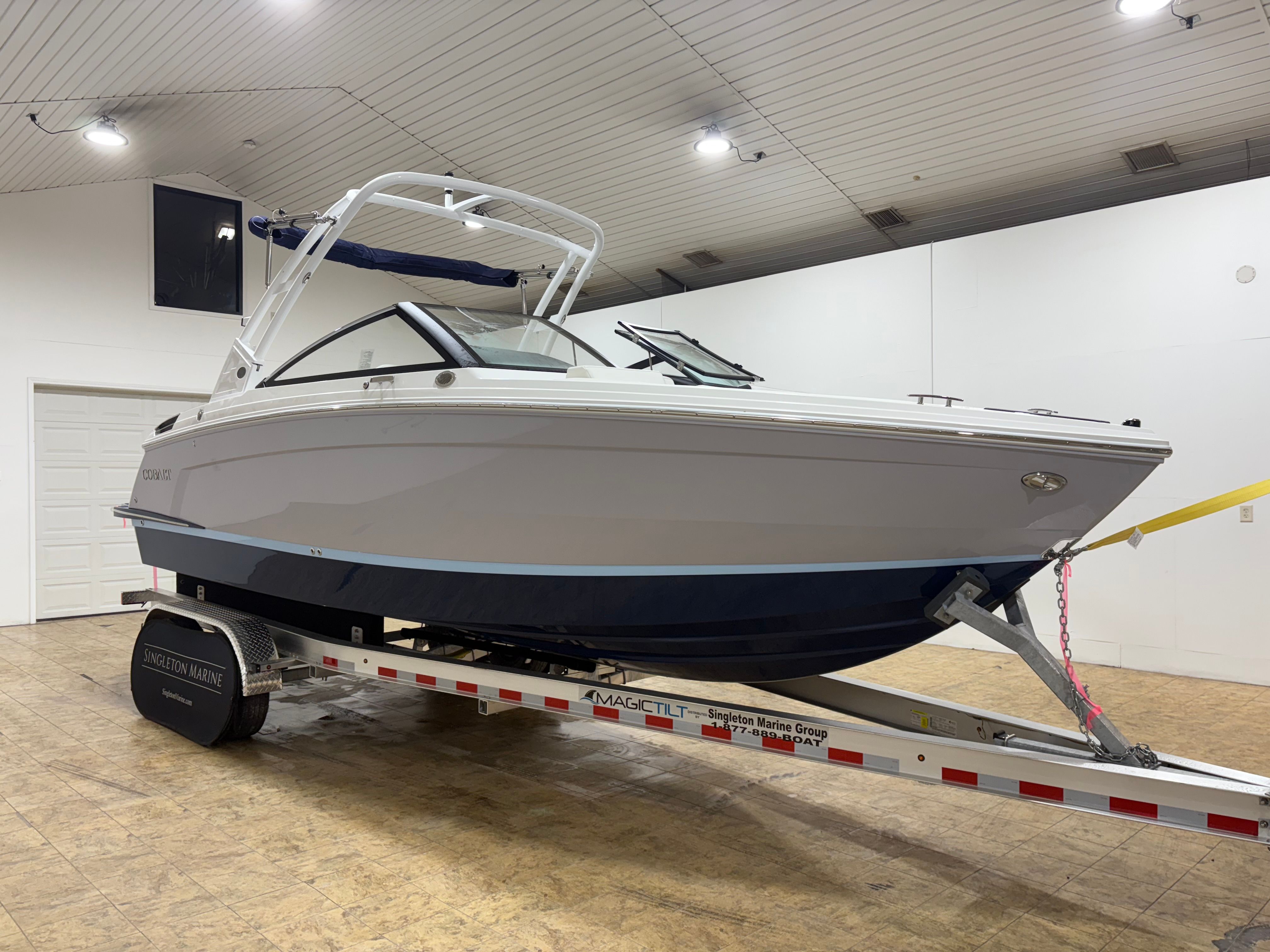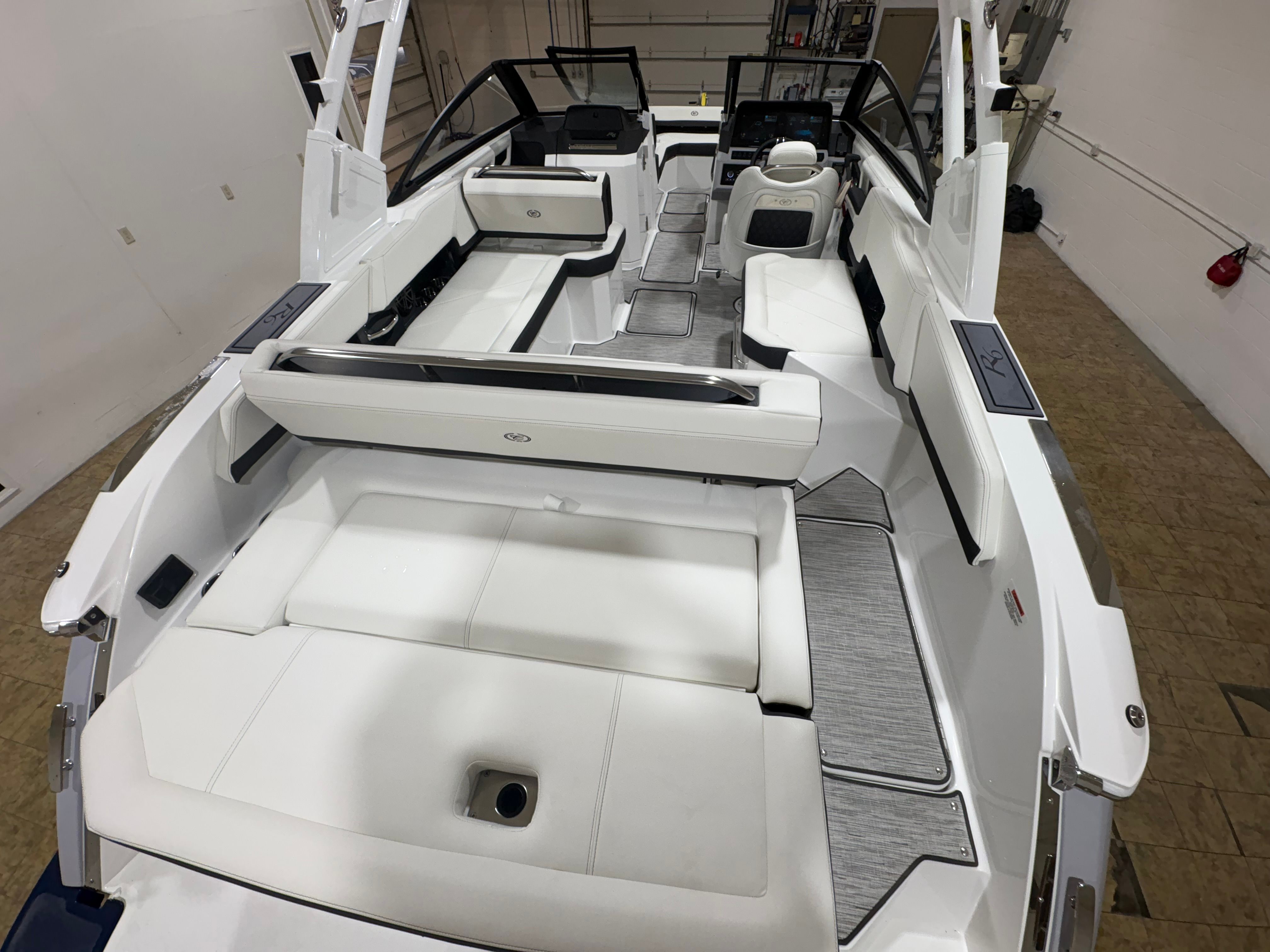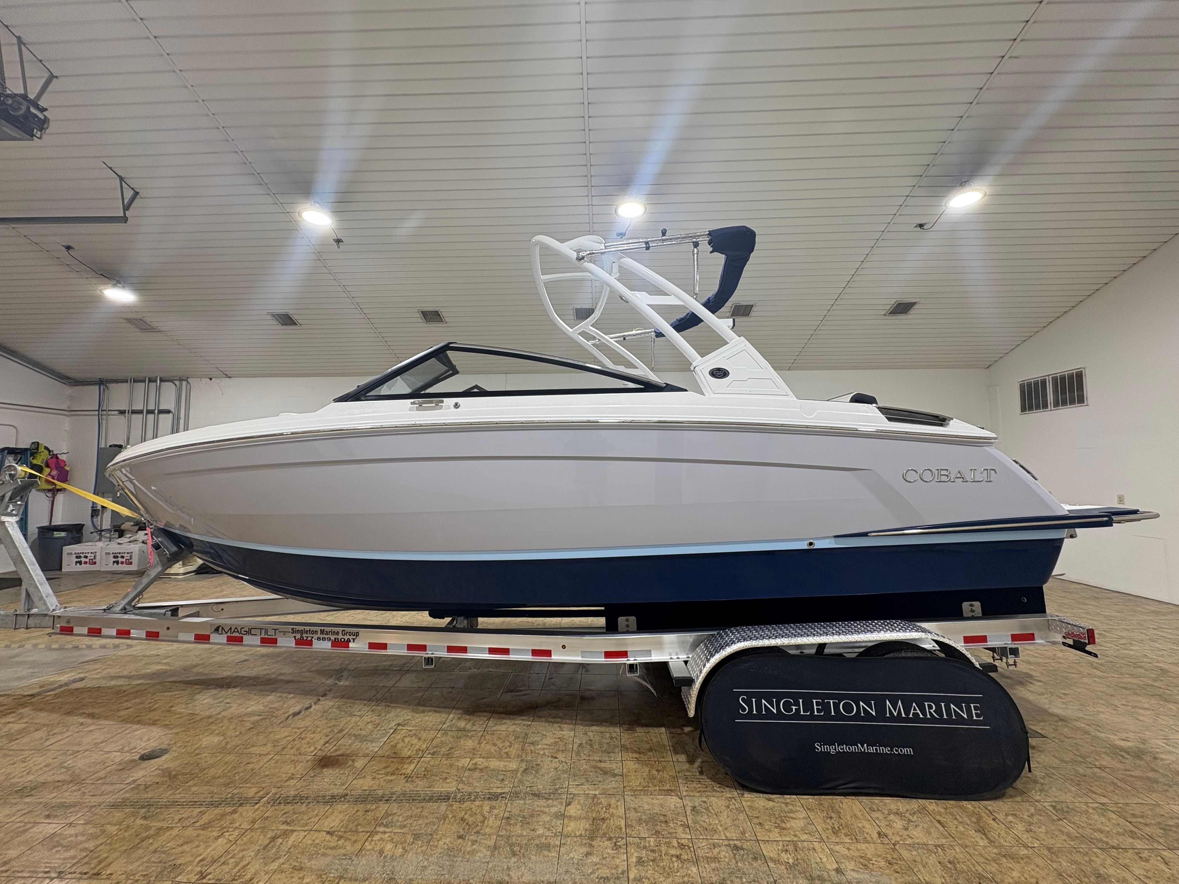 The 2026 Cobalt R6 is a brand-new bowrider that measures an impressive 25.75 feet in length, offering ample space for family, friends, and all your favorite water activities. With its sleek lines, modern design, and attention-grabbing color scheme, this boat is a true head-turner at any marina or lake. The combination of a Navy hull bottom, Frost Gray hull sides, and a Glacier Blue accent stripe creates a sophisticated and sporty look that is sure to impress. Whether you are cruising, entertaining, or enjoying watersports, the Cobalt R6 delivers a premium boating experience.