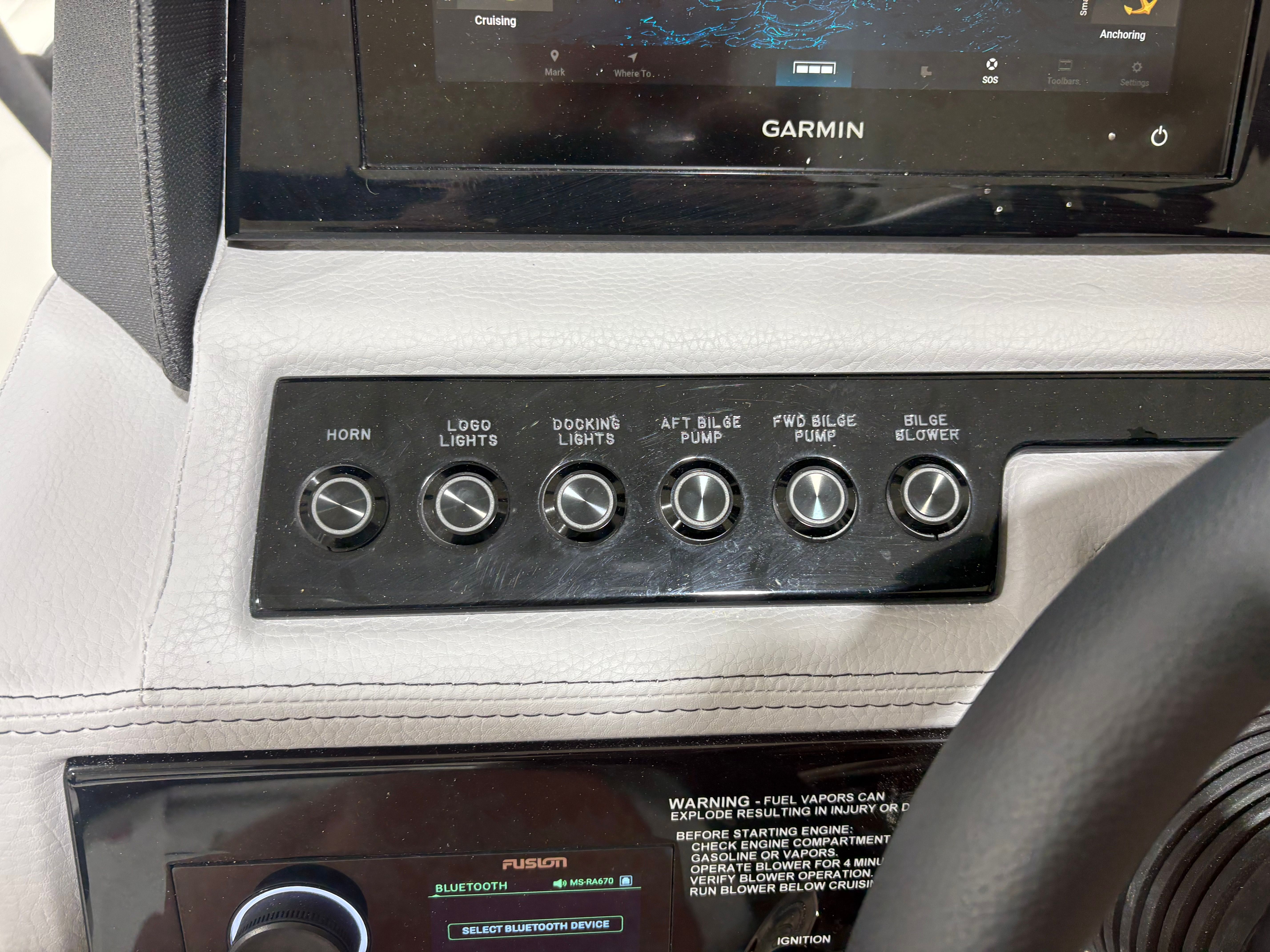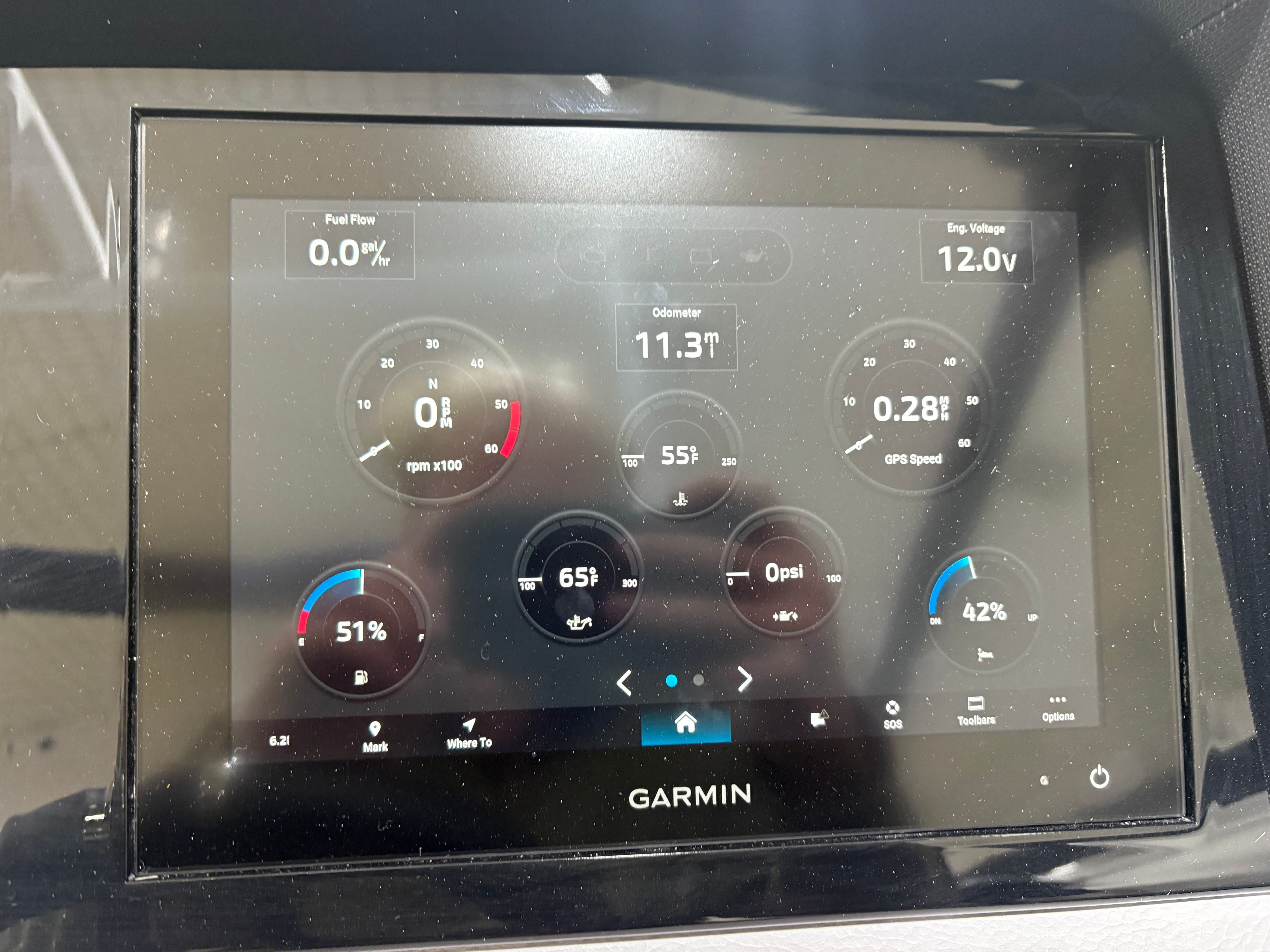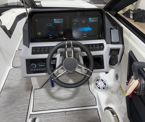 The 2026 Cobalt R6 is loaded with special features that elevate your time on the water. The folding White Arch, E2, with Captain/Navy Bimini, offers both style and practical shade, while the stainless steel docking lights add a touch of elegance and improve visibility during evening returns to the dock. The floor covering in Silver Ash Seagrass provides a comfortable, non-slip surface that is both stylish and easy to maintain.Step into the cockpit and you will find a state-of-the-art Glass Cockpit with dual Garmin 8610 displays, putting navigation, engine data, and entertainment controls at your fingertips. The LED interior accent lighting, with customizable R/G/B colors, creates a vibrant atmosphere for evening cruises or dockside gatherings. The mooring cover helps protect your investment when the boat is not in use, and the folding arch adds versatility for storage and transport.