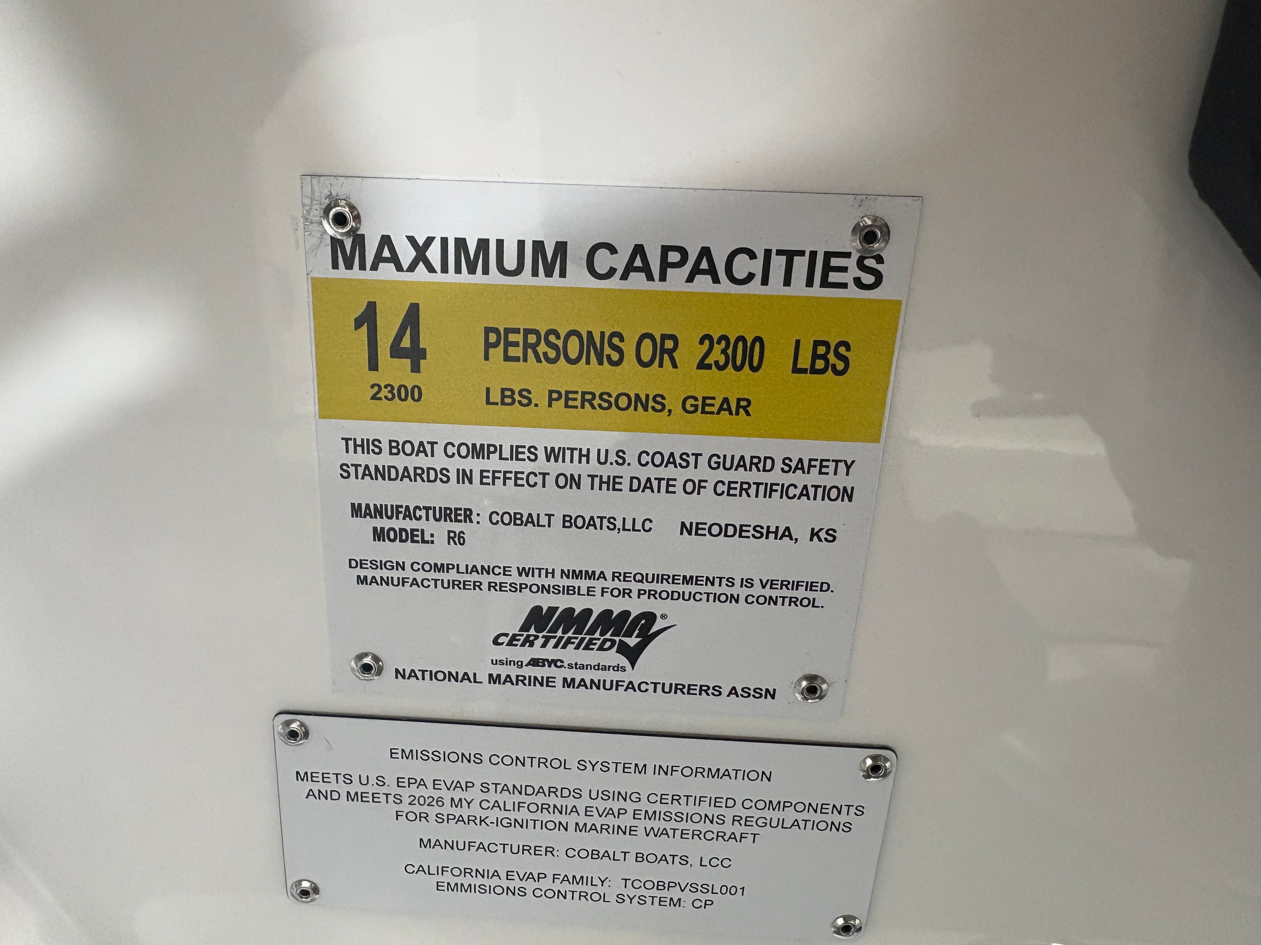 In summary, the 2026 Cobalt R6 is a standout Bowrider boat for sale that combines cutting-edge performance, luxurious features, and practical design in one stunning package. With its powerful Volvo V8 350CE DP engine, striking color scheme, advanced glass cockpit with dual Garmin 8610 displays, and thoughtful amenities like stainless steel docking lights, Seagrass flooring, and customizable LED interior lighting, this Cobalt boat for sale is ready to deliver unforgettable experiences on the water.Whether you are seeking adventure, relaxation, or the perfect platform for entertaining, the Cobalt R6 offers everything you need and more. Do not miss your chance to own this exceptional new bowrider—contact your local dealer today for more information and to schedule a viewing. Your next great boating adventure awaits with the 2026 Cobalt R6!