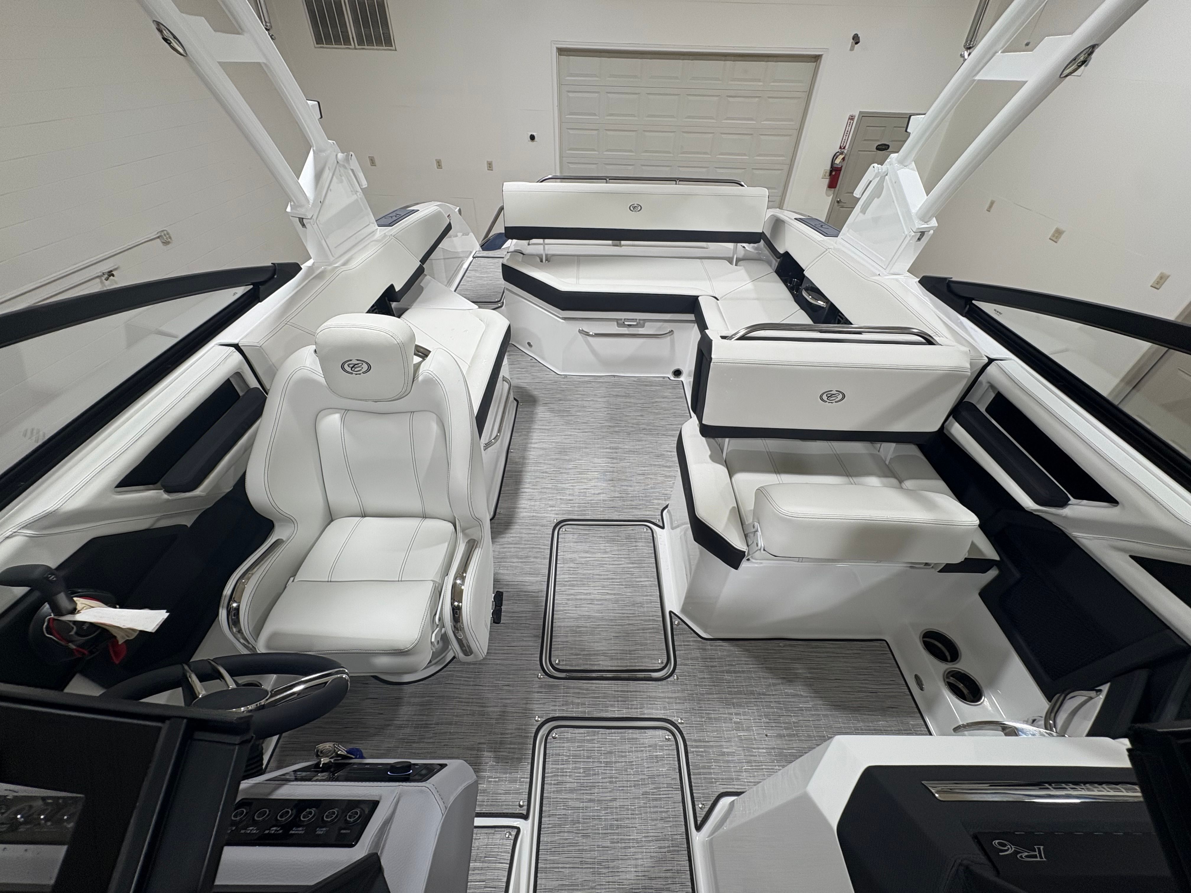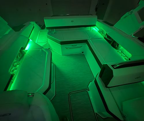 The Cobalt R6 is designed with practicality in mind, making ownership as enjoyable as the time spent on the water. The folding arch and mooring cover simplify storage and protection, while the efficient Volvo V8 engine helps you make the most of every gallon of fuel. The stainless steel docking lights and advanced navigation systems make docking and maneuvering in tight spaces a breeze, giving you peace of mind in any situation.The durable Seagrass flooring is easy to clean and maintain, ensuring your boat stays looking its best season after season. The customizable LED lighting adds a personal touch to your boating experience, whether you are hosting a sunset cruise or an evening celebration.
