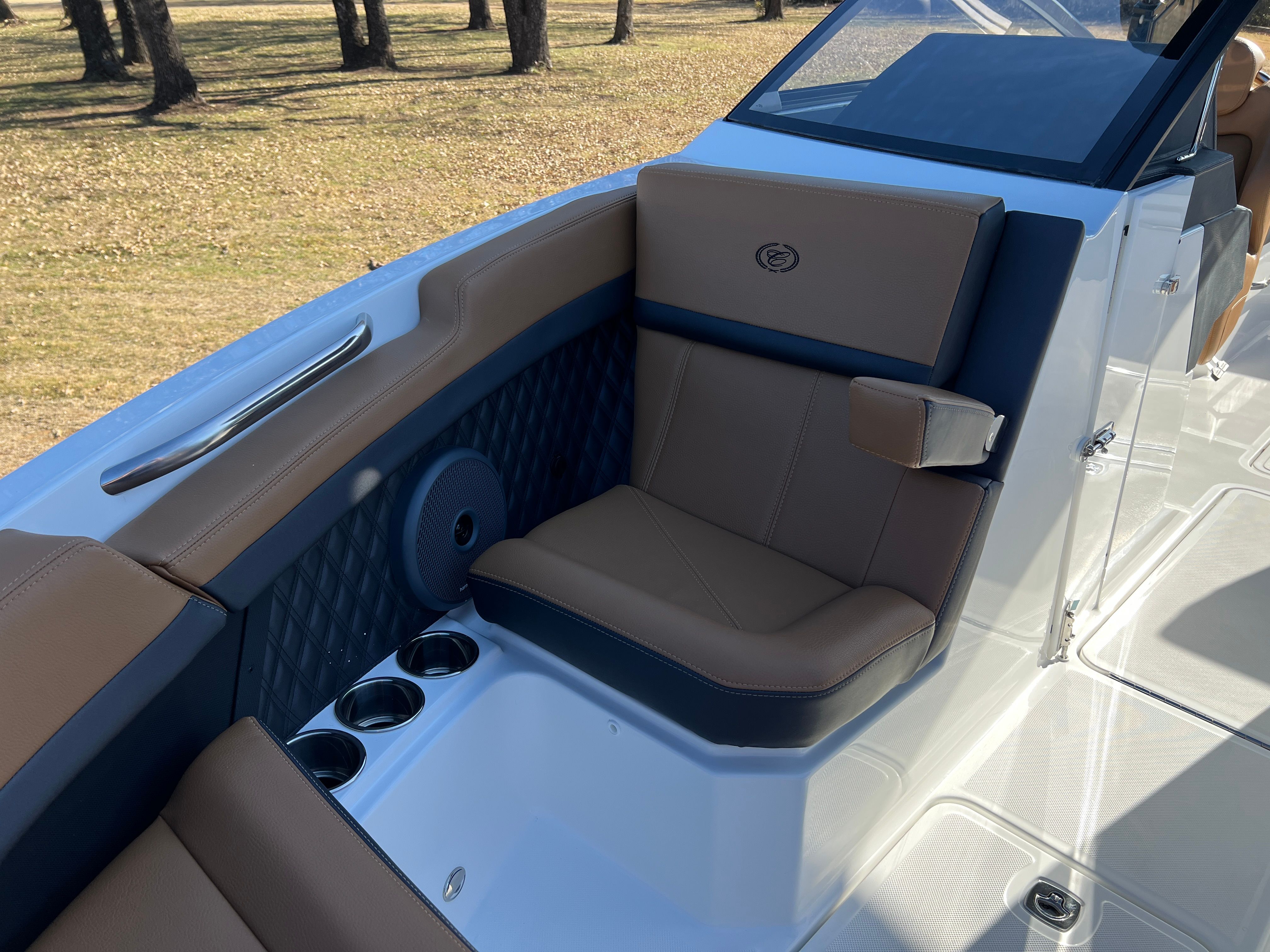 At the heart of the Cobalt R6 is a powerful 350-horsepower engine, delivering exhilarating acceleration and smooth cruising capabilities. Whether you are gliding across calm waters or powering through choppy waves, this Bowrider offers responsive handling and impressive agility. The advanced hull design enhances stability and efficiency, allowing you to reach your favorite destinations quickly and comfortably. With this level of performance, the Cobalt R6 is equally suited for high-speed adventures and leisurely cruises, making it a versatile choice for boaters of all experience levels.