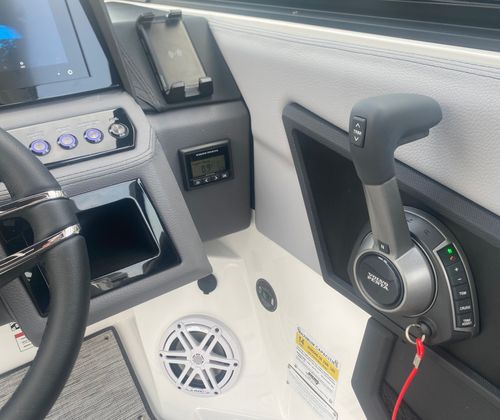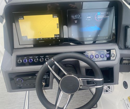 The 2026 Cobalt R6 Bowrider is packed with premium features that elevate your boating experience. The E2 Arch in White (Folding) with a Bimini in Ebony offers both style and functionality, providing shade and protection from the sun while maintaining a sleek profile. Stainless Steel Docking Lights enhance visibility during evening excursions and add a touch of sophistication to the boat’s exterior. The Black Satin Cobalt Letters further accentuate the boat’s elegant branding.Step aboard and you’ll be greeted by the luxurious Interior in Frost/Slate, complemented by Silver Ash Seagrass floor covering. This combination creates a refined and comfortable environment, perfect for relaxing after a swim or entertaining guests. The Glass Cockpit features Dual Garmin 8610 displays, offering advanced navigation and system monitoring at your fingertips. With the Battery Maintainer/Charger (110V), you can keep your boat’s electrical systems in top condition, ensuring readiness for every adventure.