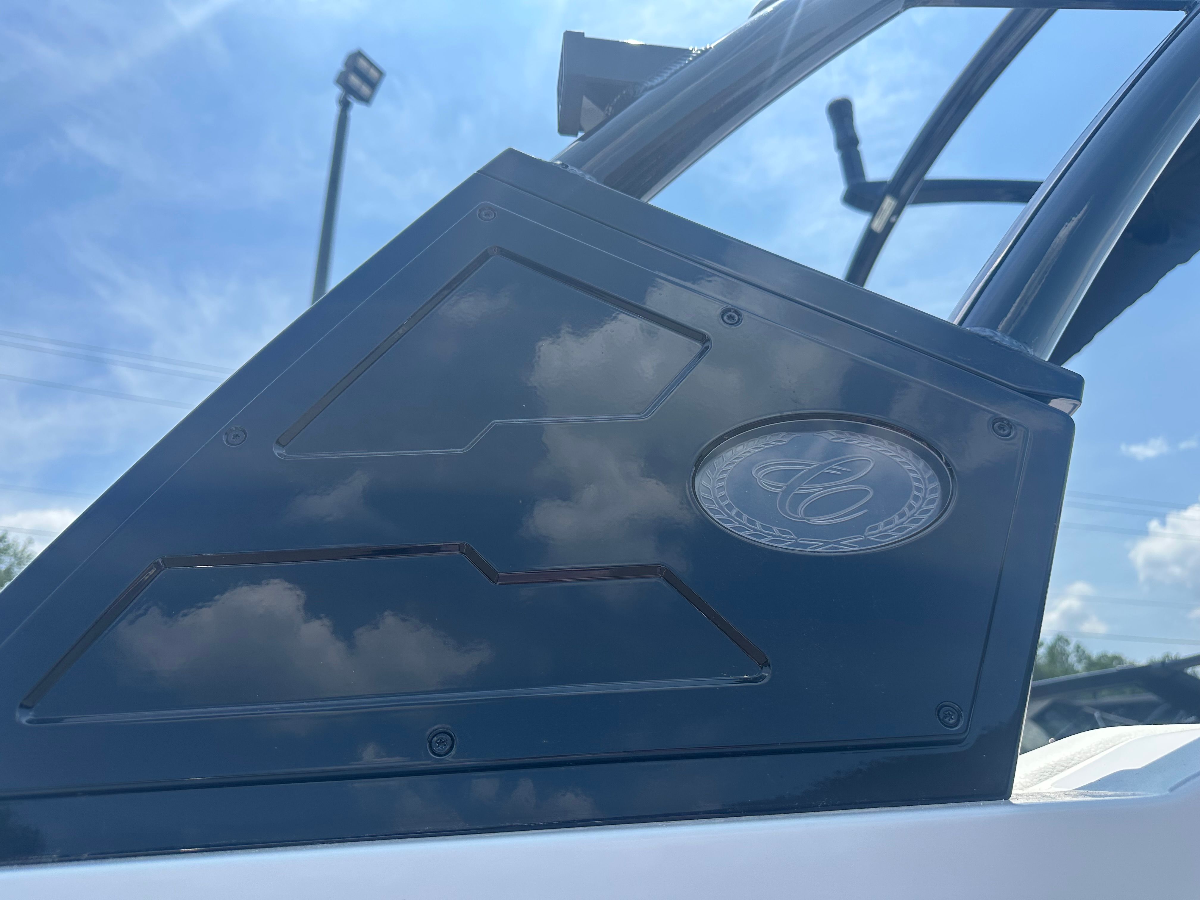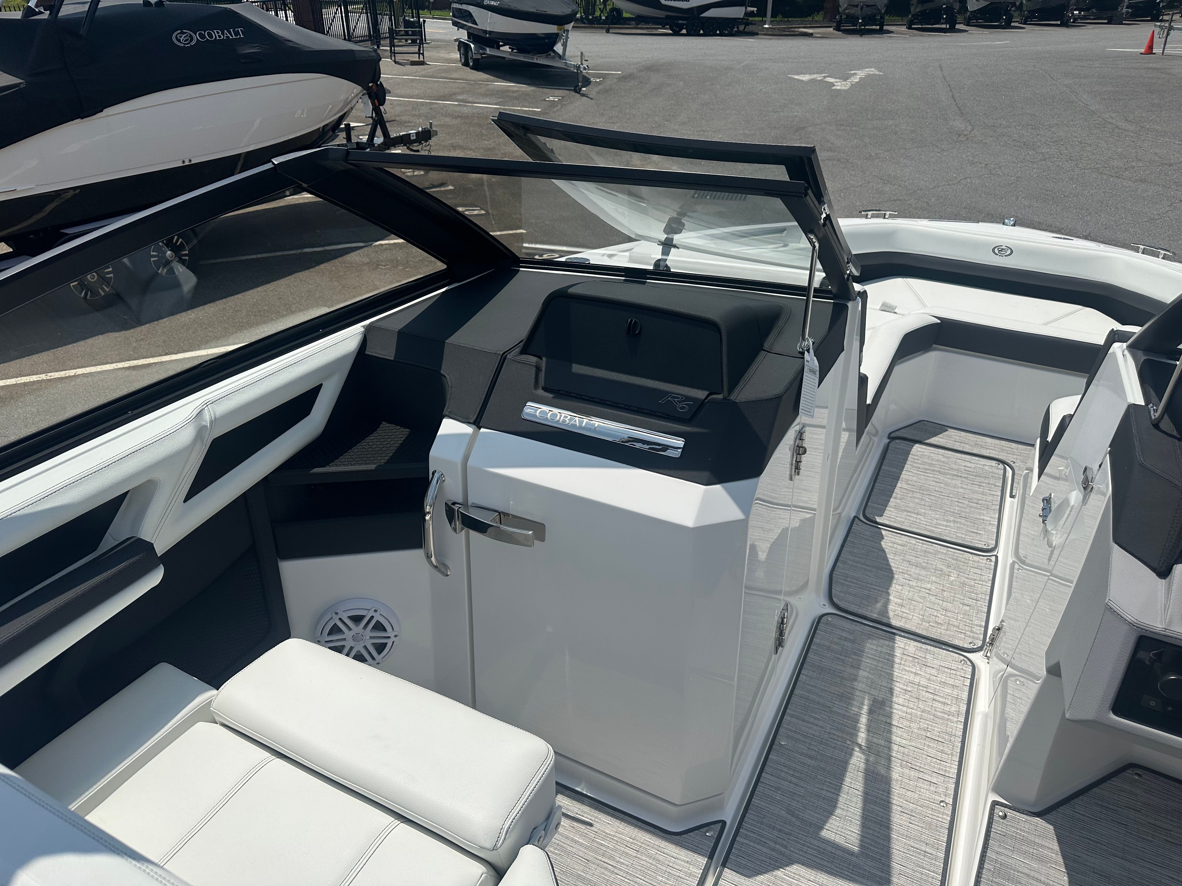 The 2025 Cobalt R6 is loaded with special features that enhance both convenience and comfort. Stay connected and organized with the wireless phone charger and holder, ensuring your devices are always ready for action. The black leather and stainless steel steering wheel adds a touch of elegance and tactile pleasure to every journey. For those who love to swim or lounge by the water, the white swim platform extension offers easy access and extra space for relaxation.The obsidian windshield not only looks striking but also provides excellent protection from wind and spray. When it’s time to secure your boat, the mooring cover keeps everything protected from the elements. The folding arch adds versatility, making it easier to store or transport your boat, while the floor covering in seagrass and silver ash delivers both style and comfort underfoot.For added convenience, the head with pump-out porta potti ensures you and your guests can enjoy extended outings without worry. The battery maintainer and charger (110V) keep your systems powered up and ready to go, while the stainless steel docking lights make nighttime arrivals and departures safe and simple. The glass cockpit, featuring dual Garmin 8610 displays, provides state-of-the-art navigation and control, putting all the information you need right at your fingertips.