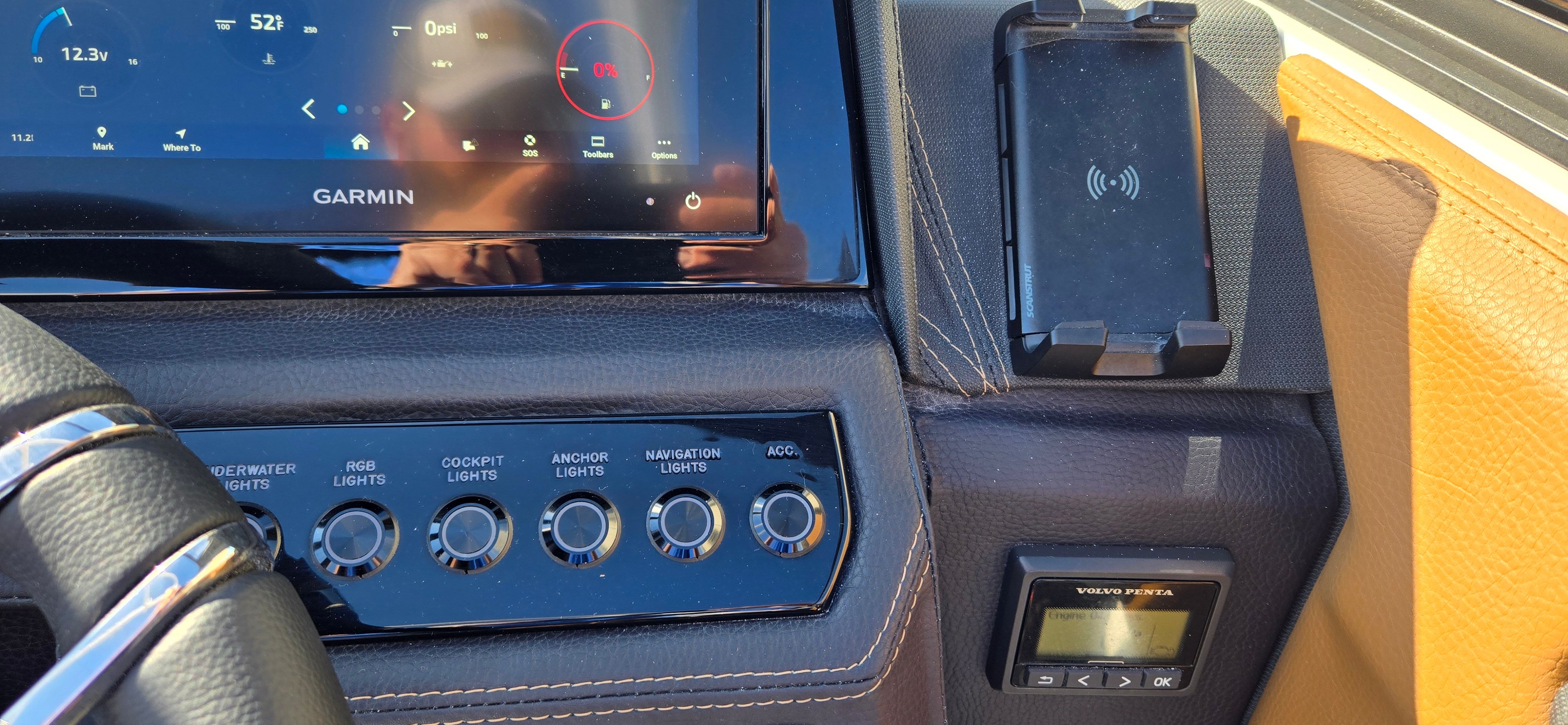 The 2026 Cobalt R6 is loaded with premium features that elevate your boating experience to new heights. The sophisticated Caramel and Carbon interior creates a warm, inviting atmosphere, while the Cobalt Letters in White Satin add a touch of elegance to the boat’s exterior. Stainless steel docking lights provide enhanced visibility and safety during evening arrivals, and the durable seagrass floor covering in Raw Umber offers both comfort and style underfoot.The R6’s glass cockpit is equipped with dual Garmin 8610 displays, delivering state-of-the-art navigation and control at your fingertips. The hull bottom in a striking navy finish not only enhances the boat’s visual appeal but also underscores its robust construction. A mooring cover ensures your investment is protected from the elements, while the folding arch adds versatility for storage and transport.For those who love music on the water, the premium sound system with transom speakers and remote lets you set the perfect soundtrack for every adventure. The battery maintainer/charger (110V) keeps your systems powered and ready, so you can focus on making memories without interruption.