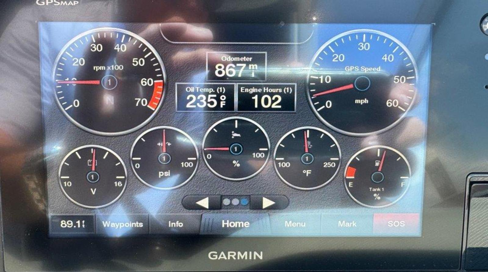 Enjoy your favorite tunes on the upgraded Premium Sound System, complete with transom speakers and remote, all powered by dual Garmin screens for full navigation and surf control.
