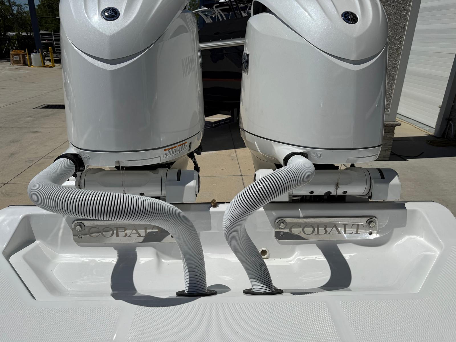 Owning the Cobalt R8 OB Bowrider opens up a world of fun and relaxation. The spacious layout is perfect for hosting gatherings, enjoying sun-soaked afternoons, or embarking on spontaneous adventures. The comfortable seating and thoughtful amenities make every outing enjoyable, whether you’re cruising with family, entertaining friends, or simply unwinding in your favorite cove. The combination of luxury finishes and practical features ensures that every moment on board is both comfortable and memorable.The twin Yamaha engines offer not only impressive speed but also smooth, quiet operation, allowing you to enjoy the serenity of the water without distraction. The rotating shade arch provides customizable protection from the sun, so you can stay cool and comfortable throughout the day. With easy access via the boarding ladder and convenient shower facilities, swimming and water sports become effortless and enjoyable for everyone on board.