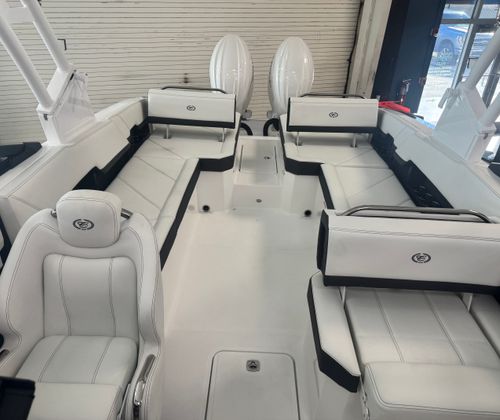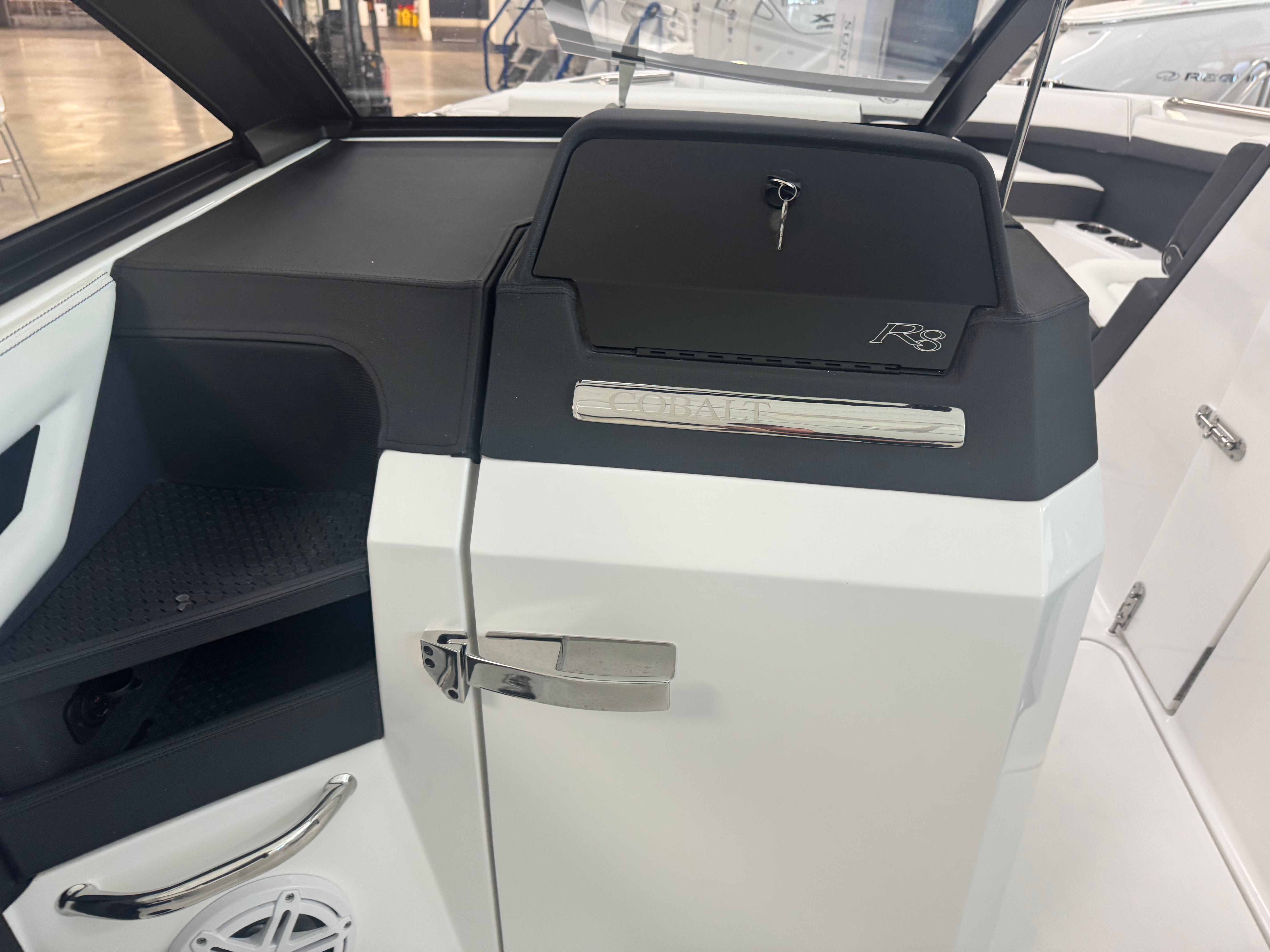 The Cobalt R8 OB is designed with practicality in mind, making ownership as enjoyable as it is exciting. The dual engines not only provide impressive power but also offer enhanced maneuverability for easy docking and tight turns. Fender Clips with Line simplify the process of securing your boat, reducing stress when arriving at the dock.Storage solutions are integrated throughout the boat, allowing you to keep gear, snacks, and personal items organized and out of the way. The Head with Electric Porcelain Toilet adds a level of convenience that is especially appreciated during longer outings, ensuring comfort for all passengers.Fuel efficiency is a hallmark of Cobalt engineering, allowing you to spend more time on the water and less time at the pump. The durable Stainless Steel Foot Tread and high-quality construction ensure your investment is protected for years to come.