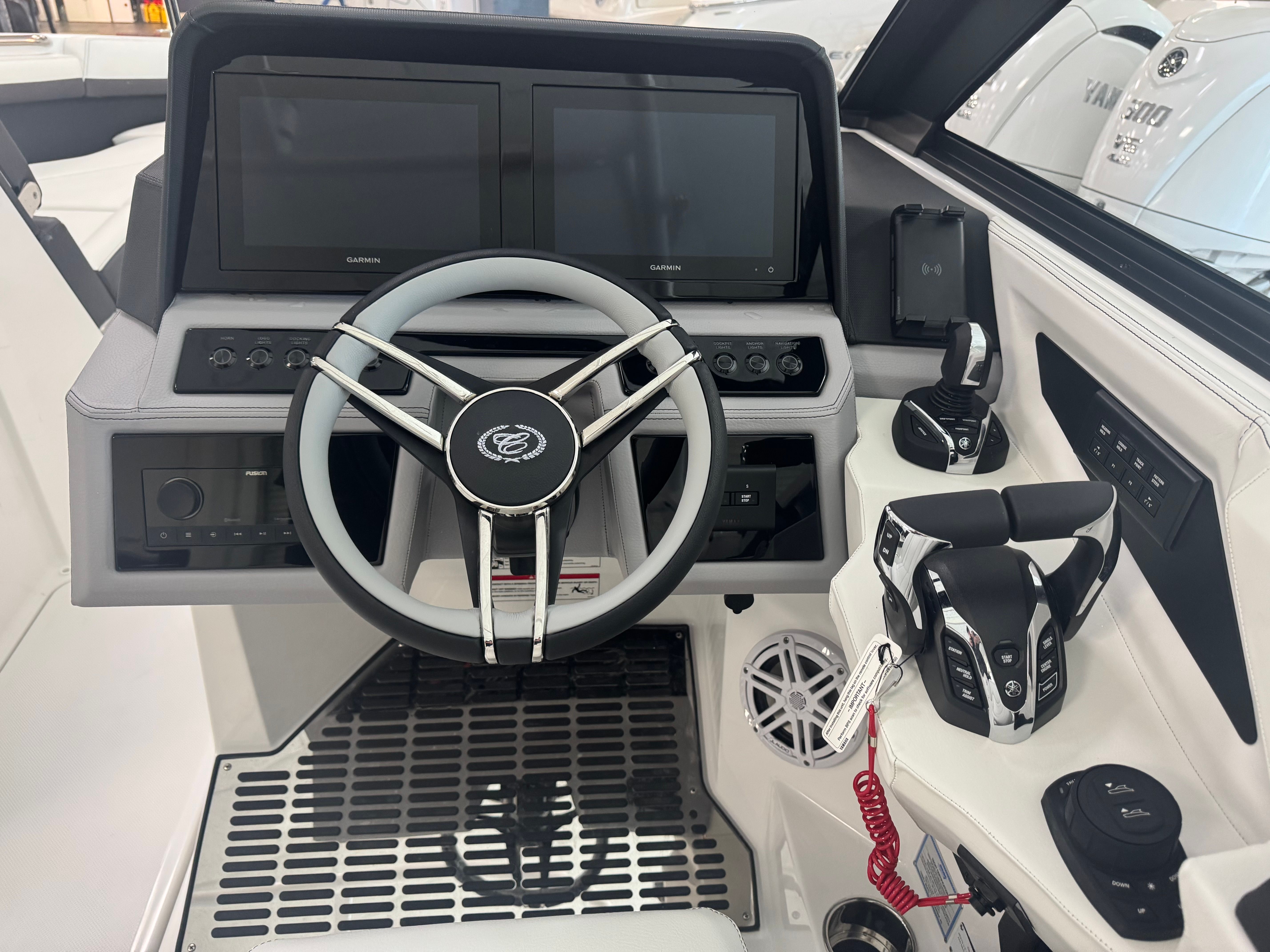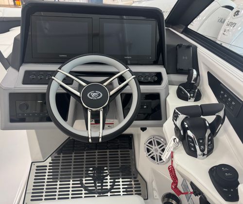 The 2026 Cobalt R8 OB is a brand-new, 27-foot bowrider designed for those who demand both style and substance. Measuring 27.08 feet in length, this boat offers ample space for family and friends, making it perfect for social gatherings, water sports, or relaxing cruises. The R8 OB’s modern lines and bold accent stripe ensure you will turn heads at every marina, while its Obsidian Windshield adds a touch of sophistication and protection from the elements.