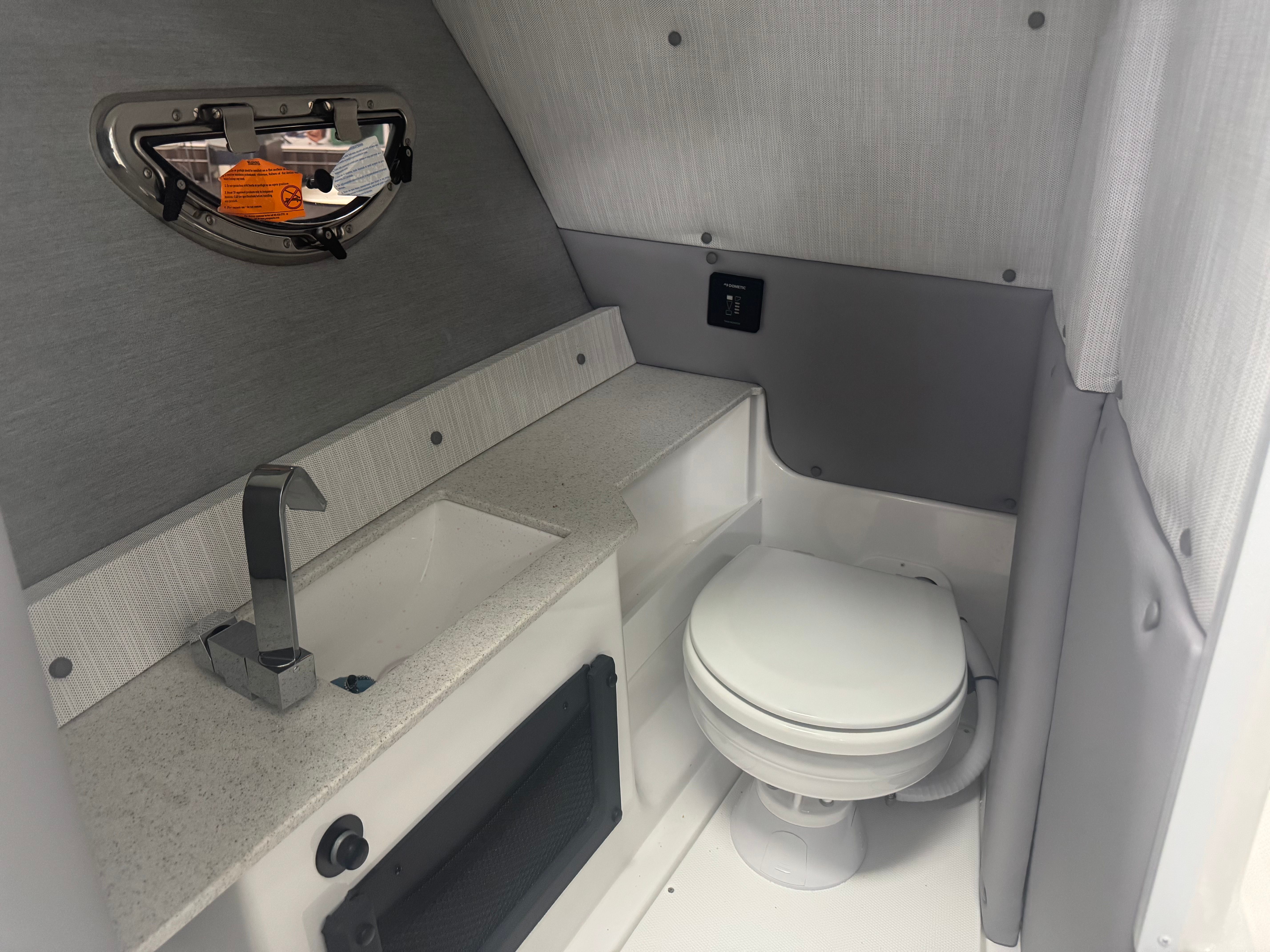 Step aboard the Cobalt R8 OB and experience a world of luxury and innovation. The Summit/Frost Interior creates a welcoming and contemporary atmosphere, while LED interior accent lighting with R/G/B options allows you to set the perfect mood for any occasion. The Bayside Blue exterior, complemented by a striking accent stripe, ensures this boat stands out on the water.For those sunny days, the Bow Shade Sail in black provides essential shade and comfort for passengers relaxing in the bow. The Obsidian Windshield not only enhances the boat’s aesthetics but also offers superior protection from wind and spray. The Premium Sound system, complete with transom speakers and a remote, delivers crystal-clear audio, ensuring your favorite tunes are always part of the experience.Attention to detail is evident throughout, with Stainless Steel Foot Tread for added durability and style, and a Leather Steering Wheel Upgrade in black and gray for a luxurious touch at the helm. Fender Clips with Line make docking and securing the boat effortless, while the Head with Electric Porcelain Toilet offers convenience and comfort for extended days on the water.