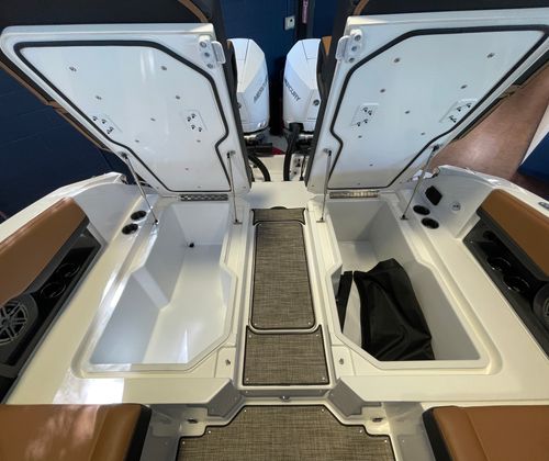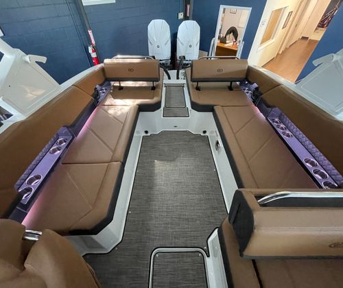 The Cobalt R8 OB is as practical as it is stylish. The intuitive joystick control system makes docking and maneuvering effortless, even for less experienced boaters. The spacious layout offers plenty of room for storage, ensuring you can bring along all the gear and supplies you need for a day on the water. The durable tonneau covers protect your investment from the elements, while the high-quality materials throughout the boat are designed for easy cleaning and maintenance. Fuel efficiency is enhanced by the advanced Mercury Verado engines, allowing you to spend more time enjoying the water and less time at the pump.