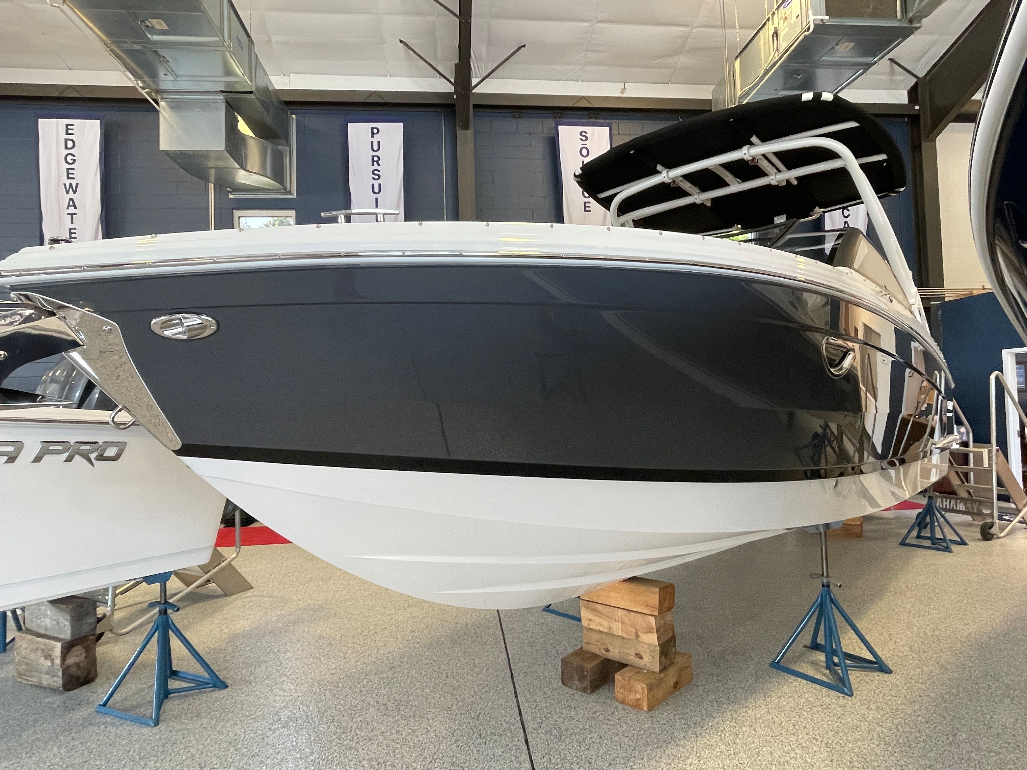 The 2025 Cobalt R8 OB is a brand-new bowrider, measuring an impressive 27 feet in length. This spacious design ensures ample room for family and friends, making it ideal for entertaining, relaxing, or enjoying a day of watersports. The R8 OB’s contemporary styling is highlighted by its Graphite Gray hull sides, Rich Ebony boot stripe, and a crisp White hull bottom, creating a sophisticated and eye-catching presence on the water. The Caramel Carbon interior, paired with a White platform and Ebony sport canvas, adds a touch of elegance and comfort to every outing.