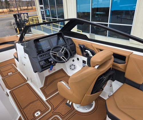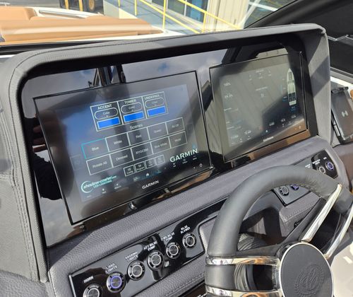 Practicality meets luxury in the Cobalt R8 Surf. The folding Prisma arch with Ebony Bimini makes it easy to navigate under bridges or store your boat in tighter spaces, while still providing ample shade when needed. The mooring cover protects your boat from the elements, preserving its beauty and value over time. Stainless steel docking lights make evening arrivals and departures safer and more convenient, and the battery maintainer/charger ensures your boat is always ready to go.The dual Garmin 8610 displays in the glass cockpit provide intuitive navigation and system monitoring, making it simple to plan routes, track performance, and stay informed on the water. The spacious layout offers plenty of room for gear, coolers, and water toys, making it easy to prepare for a day of fun. The combination of luxury, convenience, and performance makes the R8 Surf a practical choice for boaters who demand the best.