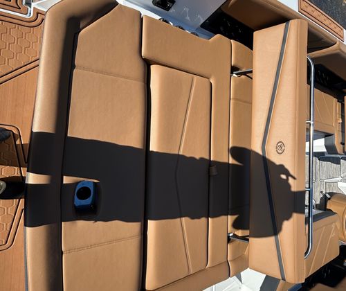 The 2026 Cobalt R8 Surf is loaded with premium features that enhance comfort, convenience, and style. The interior boasts a sophisticated Caramel/Carbon/Ebony color scheme, creating a luxurious and inviting atmosphere for all passengers. The Cobalt Letters in White Satin add a touch of elegance to the boat’s exterior, while the Docking Lights in Stainless Steel ensure safe and easy maneuvering during evening outings.One of the standout features is the EL Arch, Prism - White (Fold) With Bimini, C/Navy, which provides shade and protection from the sun, as well as a striking visual element. The floor covering in Seagrass, Raw Umber, offers both durability and comfort underfoot, making it perfect for barefoot relaxation. The Glass Cockpit - Dual Volvo 8610 delivers cutting-edge navigation and control, allowing you to manage every aspect of your journey with ease.For added convenience, the R8 Surf includes a Battery Maintainer/Charger (110V), ensuring your boat is always ready for action. The Head With Pump Out Port Potti offers a practical solution for longer trips, while the LED Interior Accent Lighting, R/G/B, creates a vibrant and customizable ambiance for evening cruises.