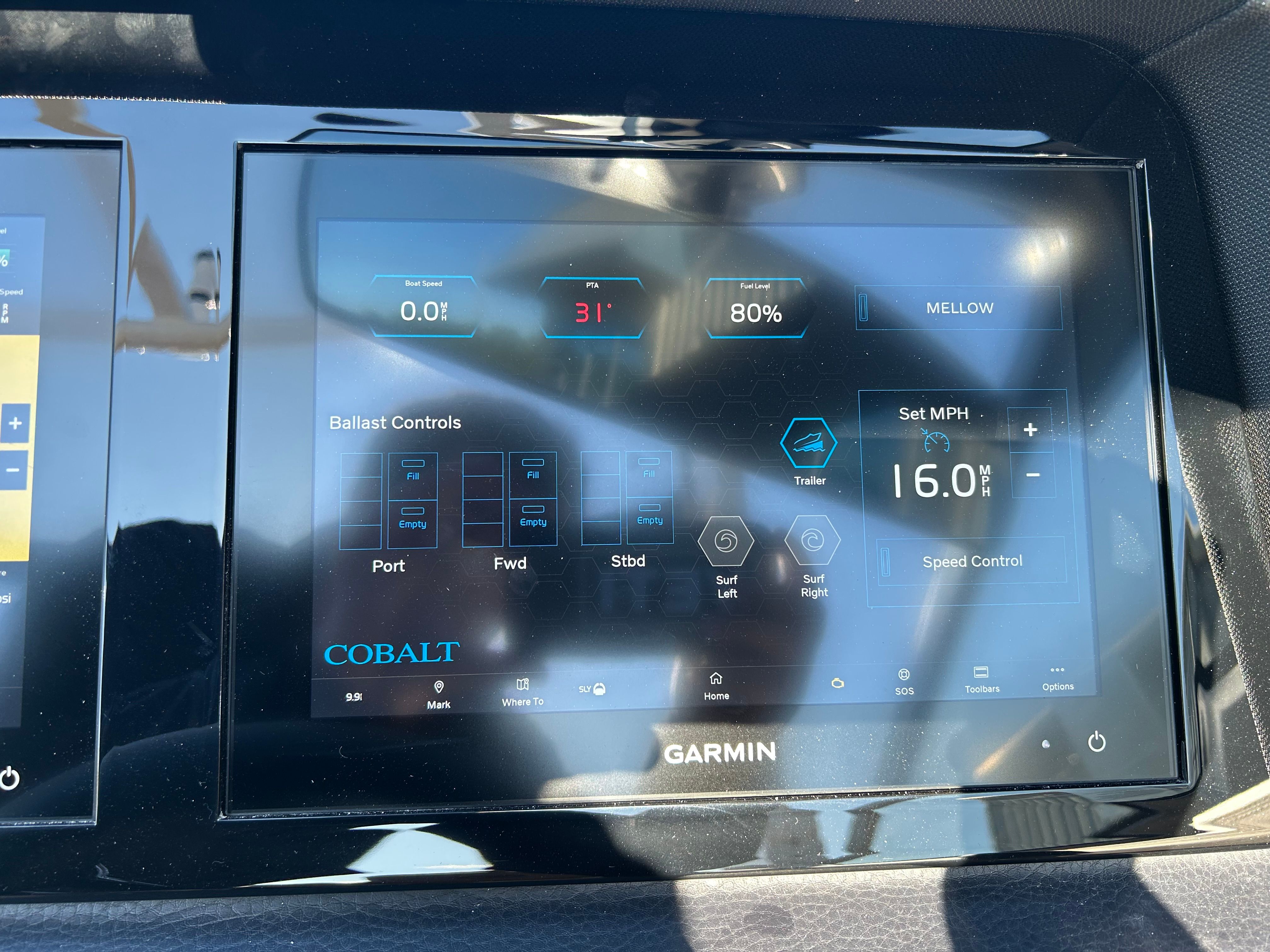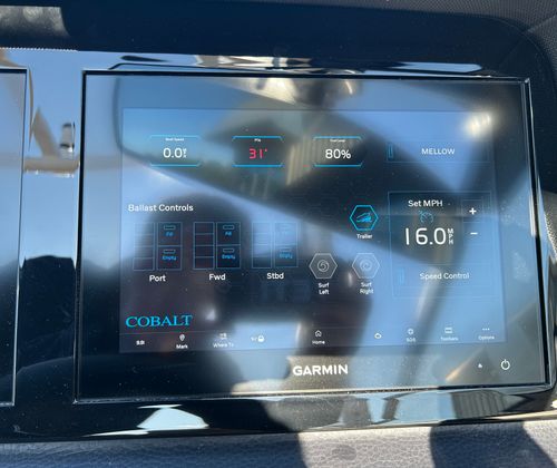 Practicality meets luxury in the Cobalt R8 Surf. The generous storage options allow you to stow away gear, snacks, and personal items with ease, keeping the deck clutter-free and organized. The boat’s length and design make docking straightforward, while the stainless steel docking lights enhance visibility in low-light conditions.Fuel efficiency is another key benefit, thanks to the advanced Volvo V8 engine, which balances power with economical operation. The battery maintainer/charger ensures your boat is always ready to go, minimizing downtime and maximizing your time on the water. The foldable EL Arch with Bimini offers flexible shade options, adapting to changing weather and personal preferences.