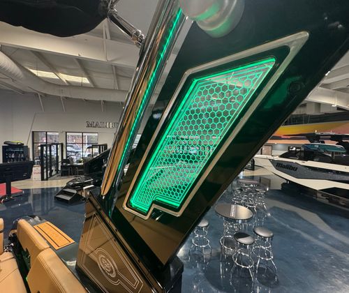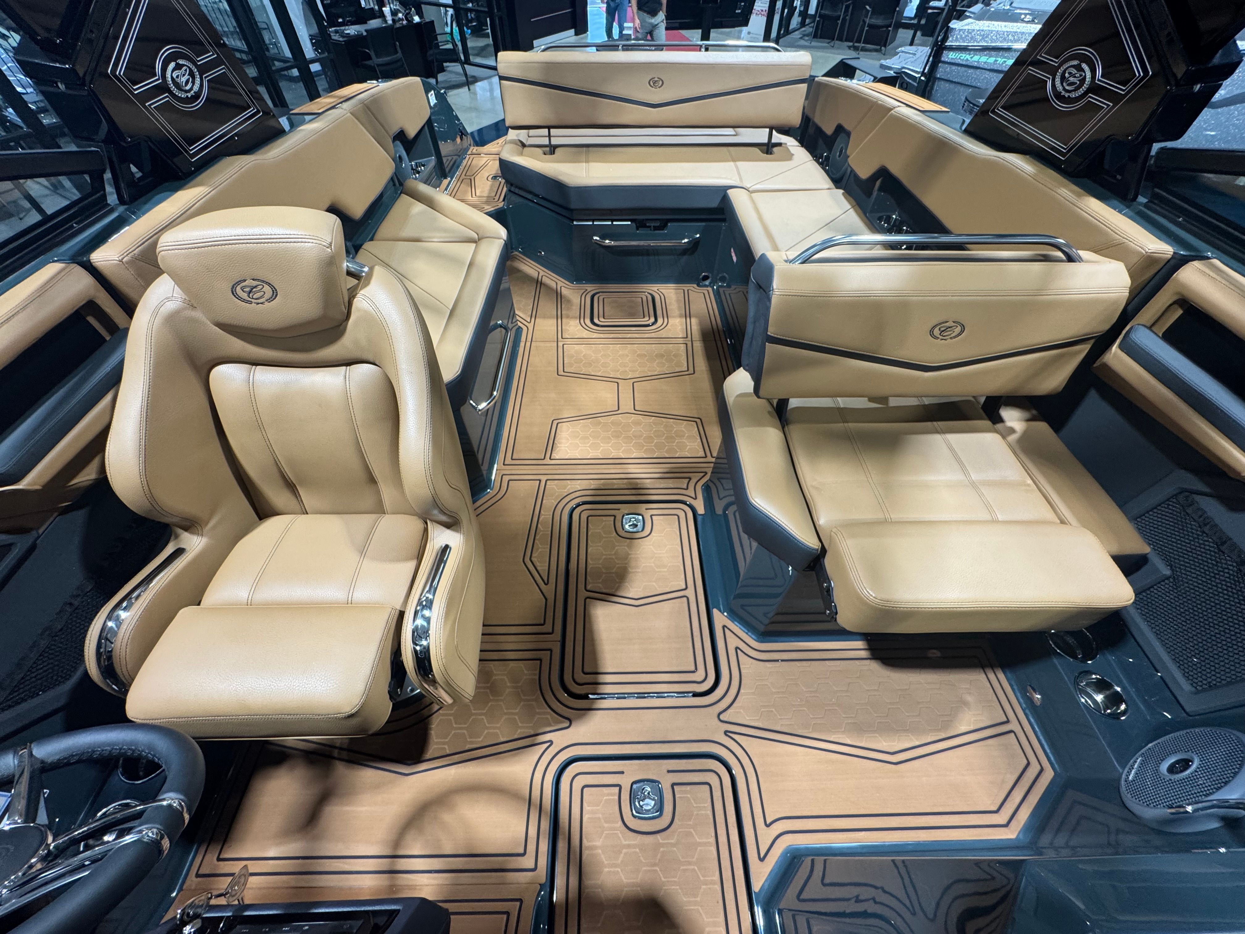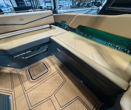 The 2026 Cobalt R8 Surf Bowrider is packed with premium features designed to enhance your boating experience. The interior boasts a sophisticated palette of Caramel, Carbon, and Ebony, creating a warm and inviting atmosphere for passengers. Cobalt Letters in Black Satin add a touch of elegance to the boat’s exterior, while stainless steel docking lights provide both style and safety during evening excursions.A standout feature is the electric arch, Prisma - Black (Folding) with Ebony Bimini, which offers shade and protection from the sun while maintaining the boat’s sleek silhouette. The electric adjustable seat ensures optimal comfort for the captain, allowing for personalized positioning during long journeys. The rear-facing camera adds an extra layer of safety and convenience, making it easier to monitor activities behind the boat, especially during water sports.Additional features include a battery maintainer/charger (110V) to keep your boat powered and ready for action, a flagpole with flag for added flair, and a full-colored deck in Deep Teal that sets the R8 Surf apart from the crowd.