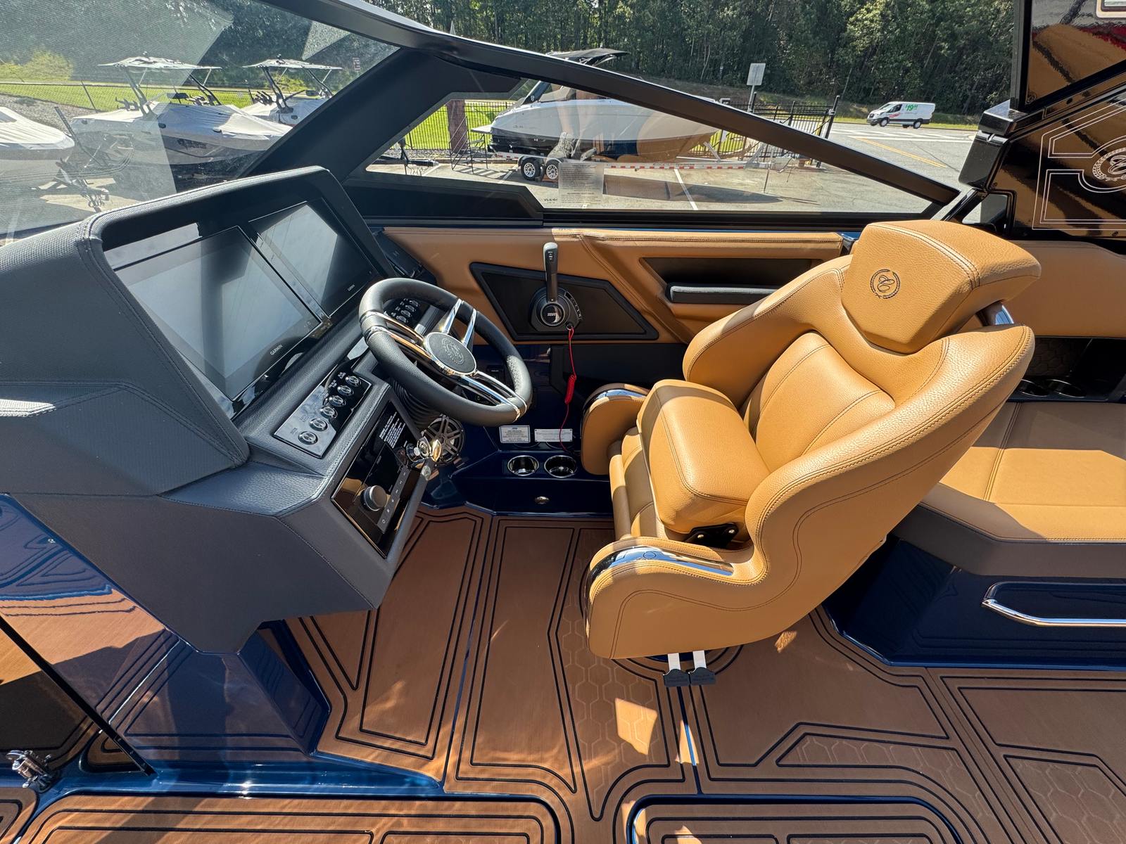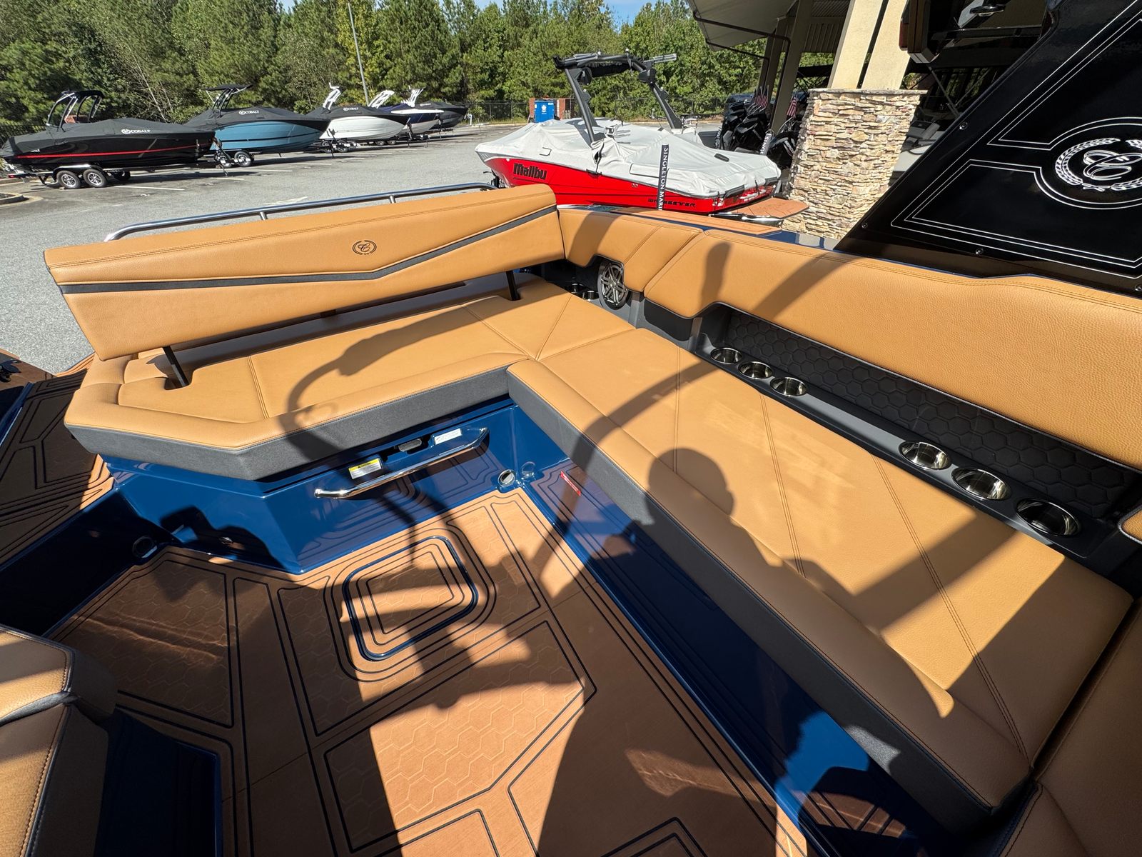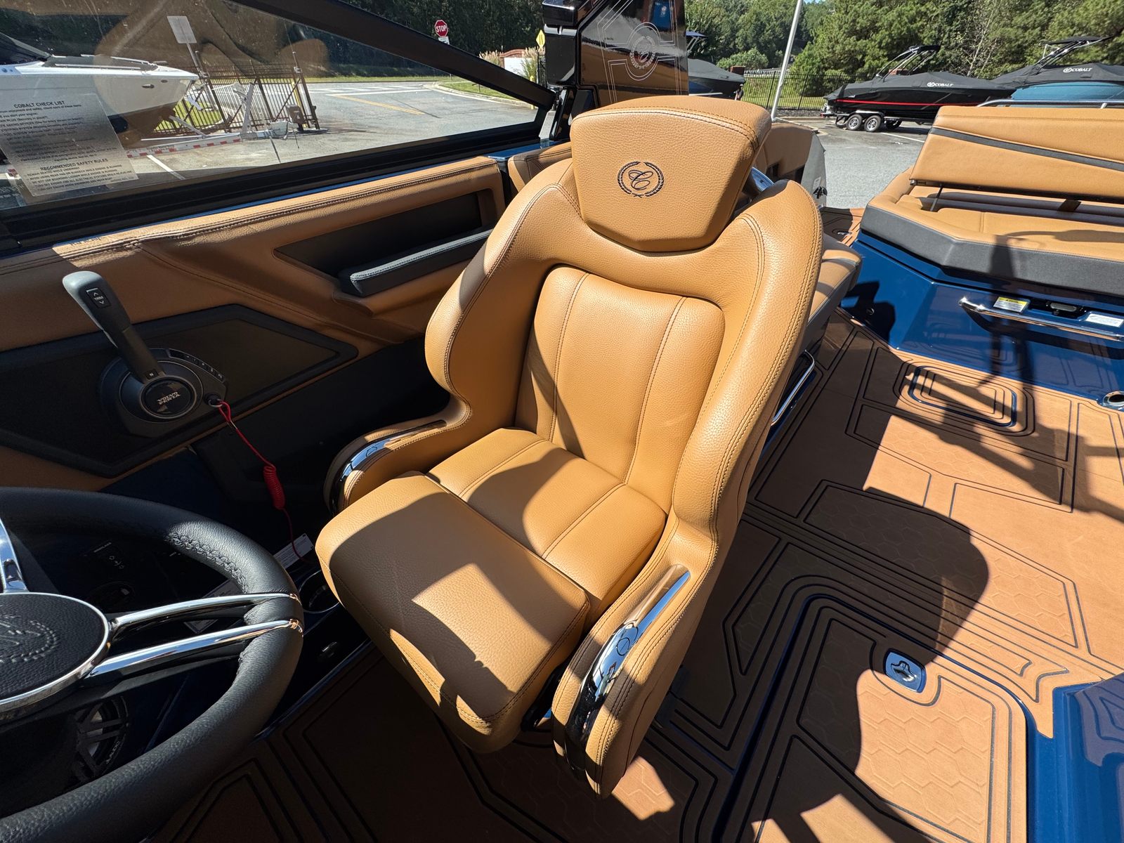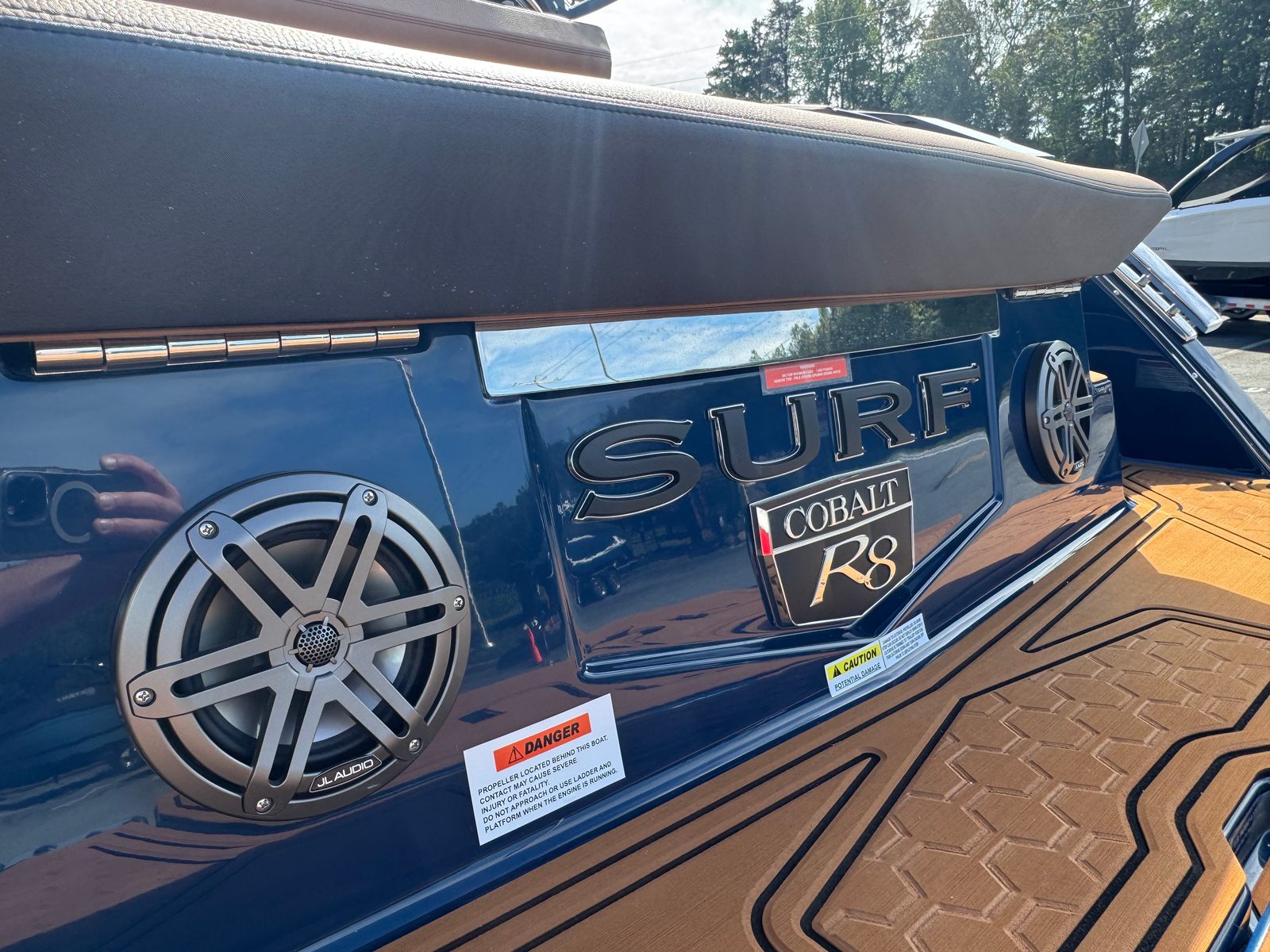 The 2026 Cobalt R8 Surf is loaded with special features that enhance both convenience and enjoyment. Four Fender Clips with Line make docking and undocking a breeze, ensuring your boat stays protected and secure. The stainless steel docking lights not only add a touch of elegance but also improve visibility during evening outings. For those who value connectivity, the wireless phone charger and holder keep your devices powered and within reach at all times.A white rubrail adds a sleek, modern touch to the boat’s exterior, while the battery switch with ACR-Dual provides peace of mind by ensuring reliable power management. Music lovers will appreciate the premium sound system, complete with transom speakers and a remote, allowing you to set the perfect soundtrack for your day on the water. The head with pump-out porta potti offers added convenience for longer trips, and the Sof Trac Mat at the helm footrest in a stylish caramel and ebony color scheme enhances comfort and aesthetics.