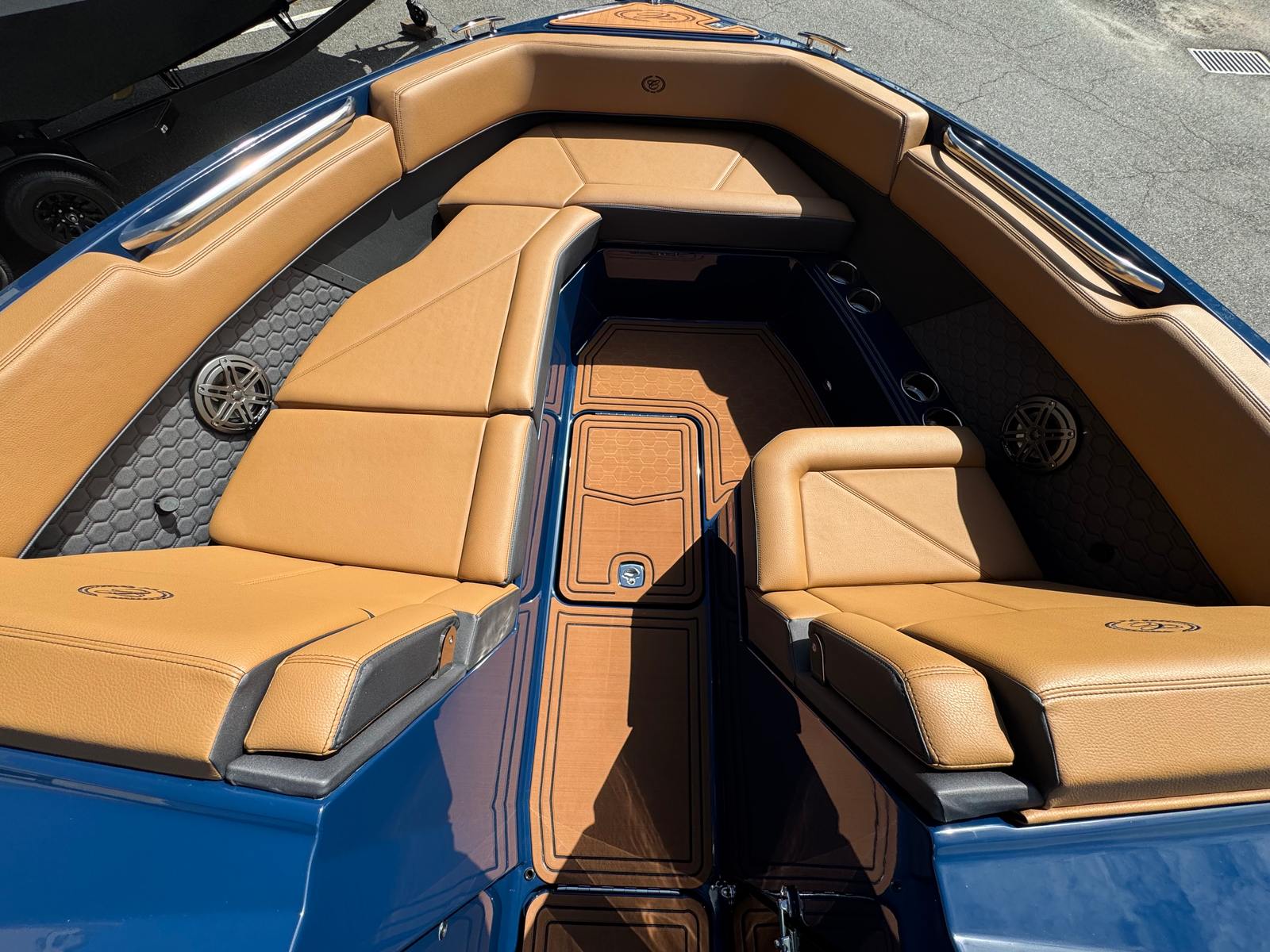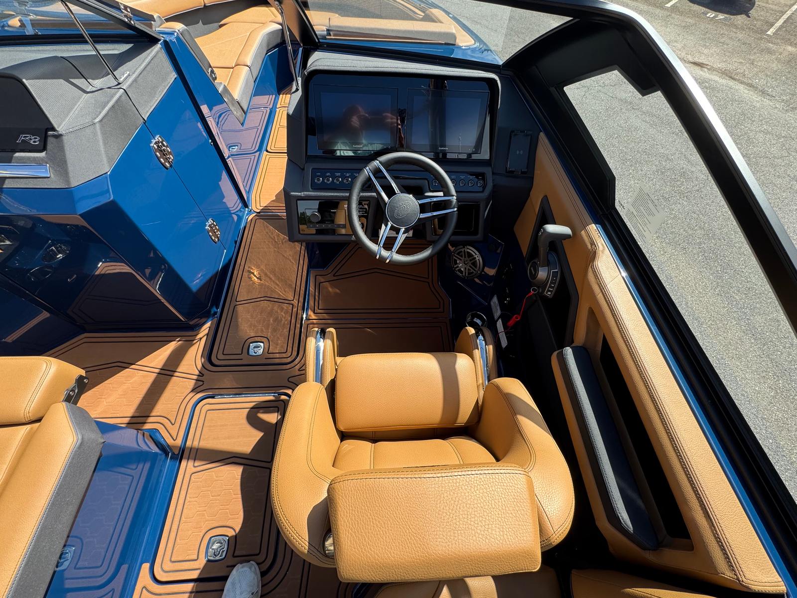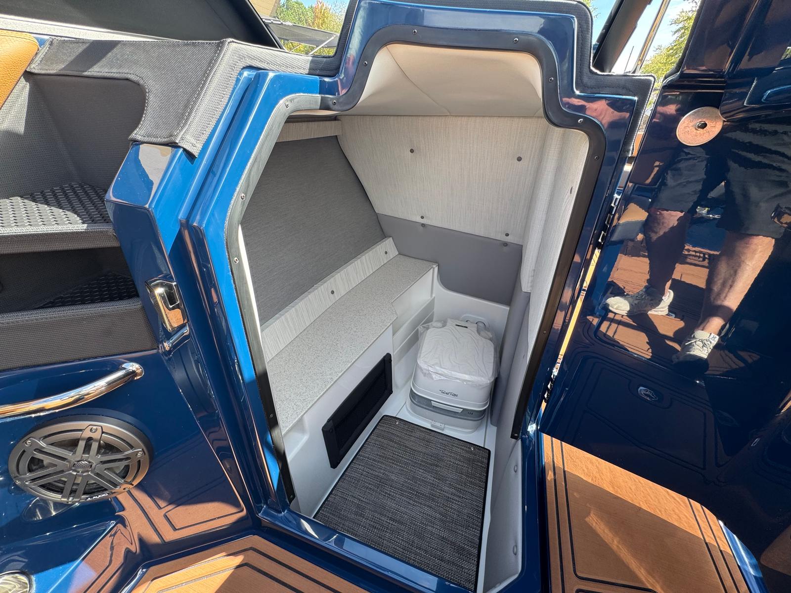 The Cobalt R8 Surf is as practical as it is luxurious. The fender clips and stainless steel docking lights make docking straightforward and stress-free, even for less experienced boaters. The large EPA fuel tank means you can spend more time enjoying the water and less time worrying about refueling. The battery switch with ACR-Dual ensures your boat’s electrical systems are always ready to go, providing added safety and reliability.Storage is never an issue, with ample space for gear, water toys, and personal items. The head with pump-out porta potti adds a level of convenience that makes longer excursions more comfortable for everyone on board. The Sof Trac Mat at the helm footrest provides extra comfort during extended cruises, reducing fatigue and enhancing your overall boating experience.