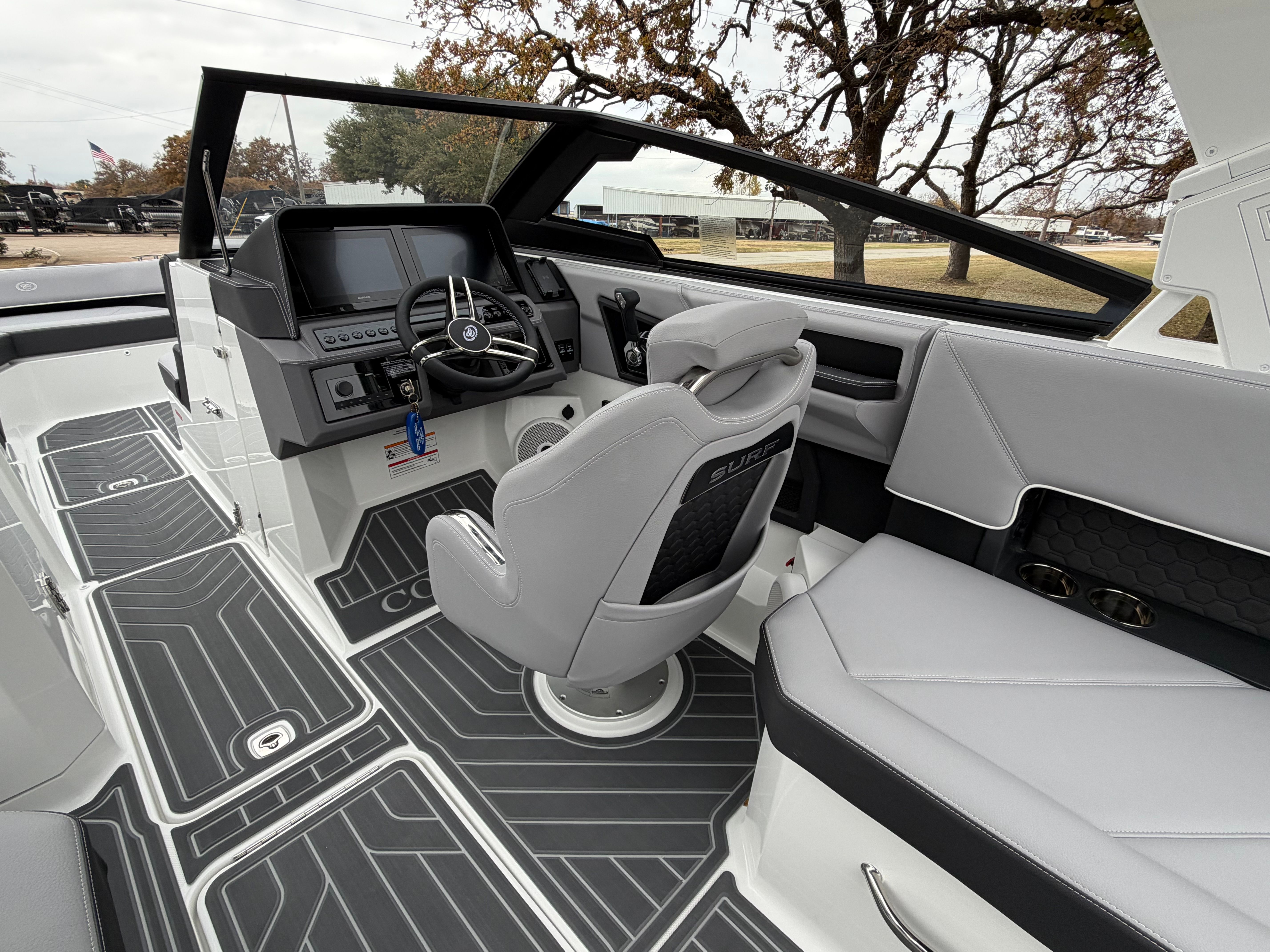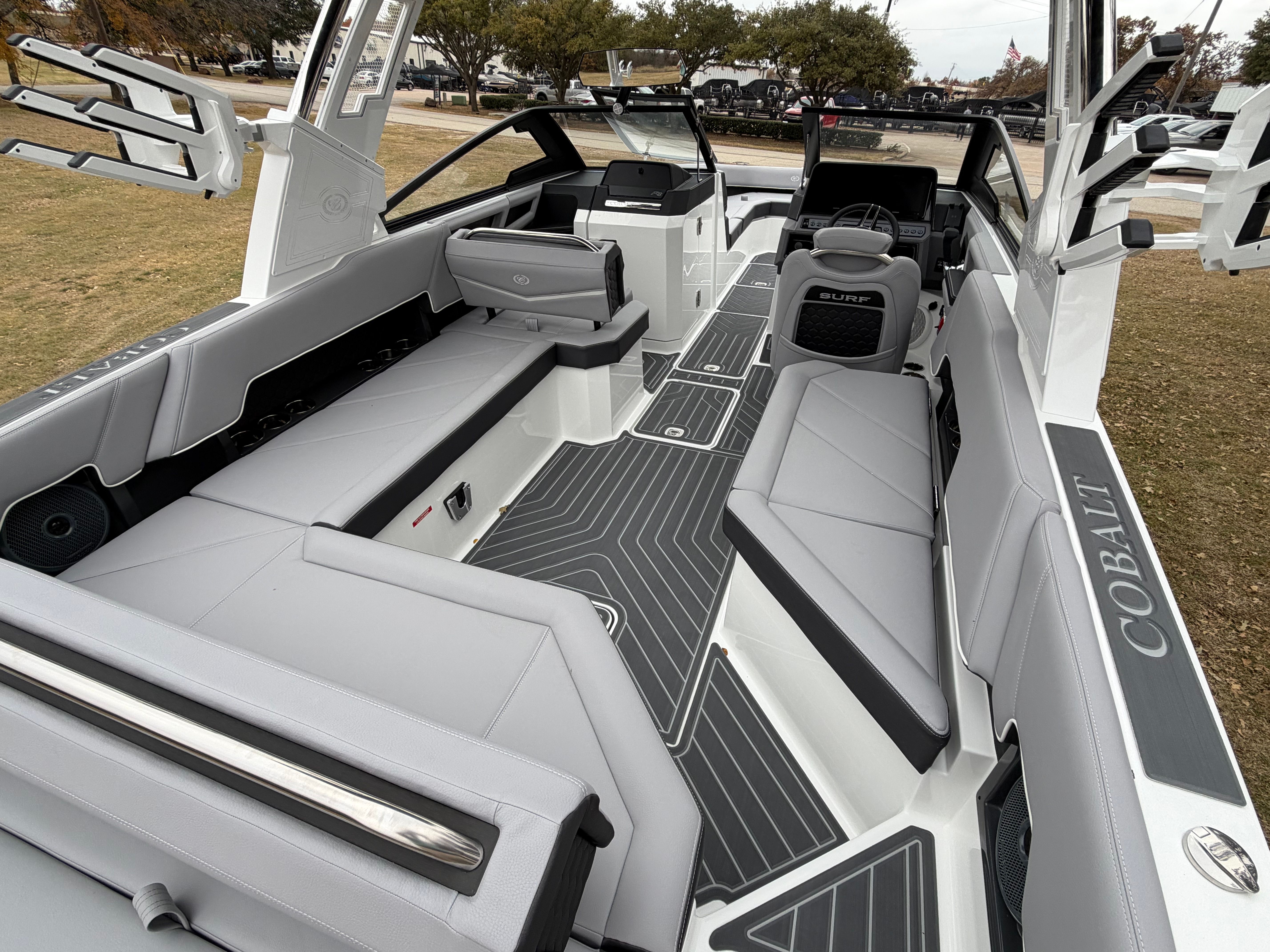 The Cobalt R8 Surf is packed with features designed to enhance every aspect of your boating experience. The spacious bow seating area provides ample room for guests to relax and soak up the sun, while the ergonomic helm station puts all controls within easy reach for the captain. Premium upholstery, high-quality finishes, and intuitive storage solutions create an environment that is as functional as it is luxurious. The innovative surf system is a standout feature, allowing you to tailor the boat’s wake for a variety of water sports activities. Every detail of the R8 Surf is crafted with comfort, convenience, and performance in mind.