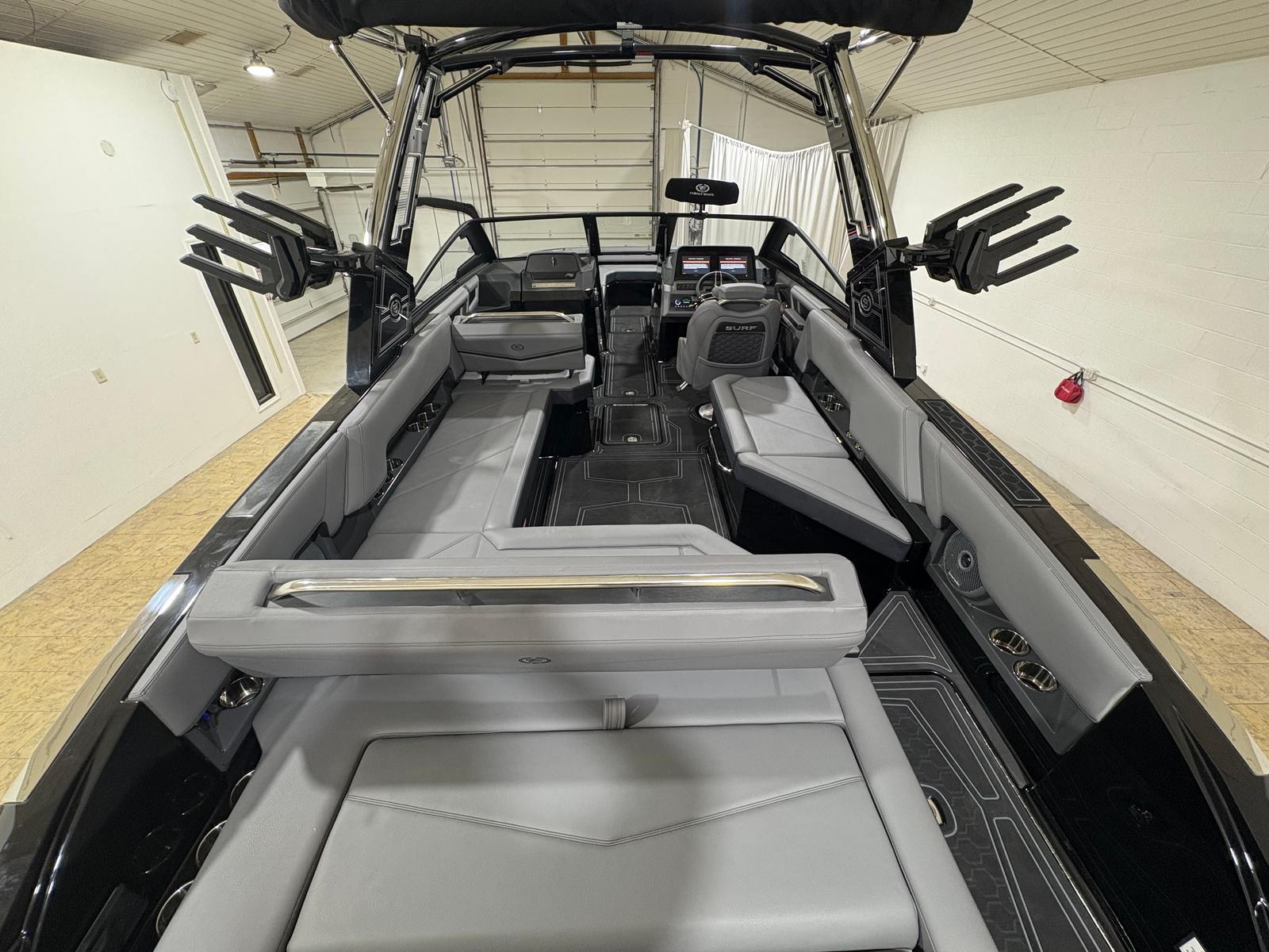 At the heart of the Cobalt R8 Surf is a robust engine boasting 430 horsepower. This single-engine setup is engineered for both power and efficiency, providing smooth acceleration and responsive handling. Whether you’re carving through waves or cruising at a leisurely pace, the R8 Surf delivers a dynamic boating experience that’s second to none.The advanced surf technology integrated into this model ensures optimal wave creation for wake surfing and other water sports. With the Surf Gate Accent in Ebony, you can easily customize your wake for riders of all skill levels, making every outing on the water exciting and memorable.