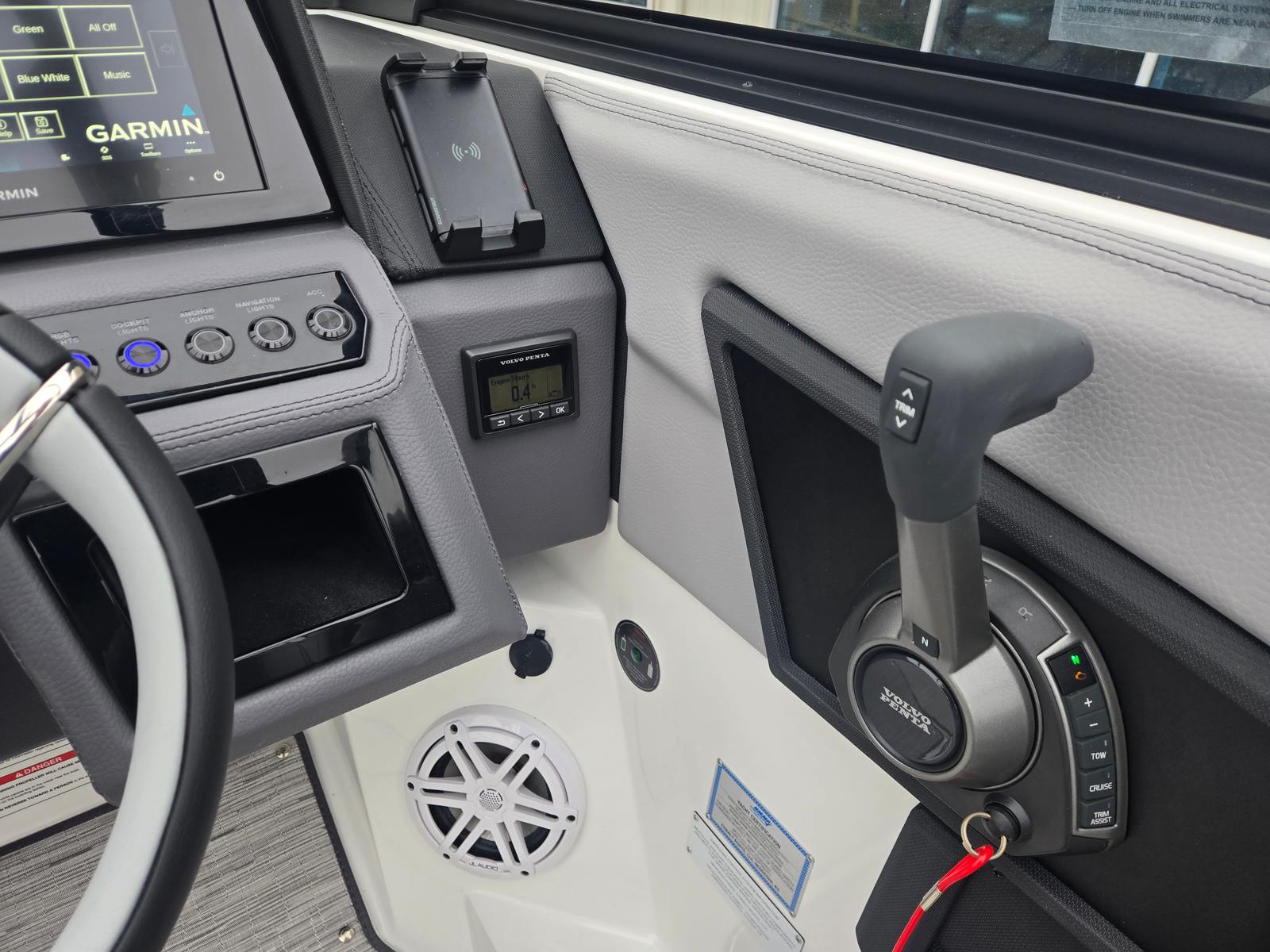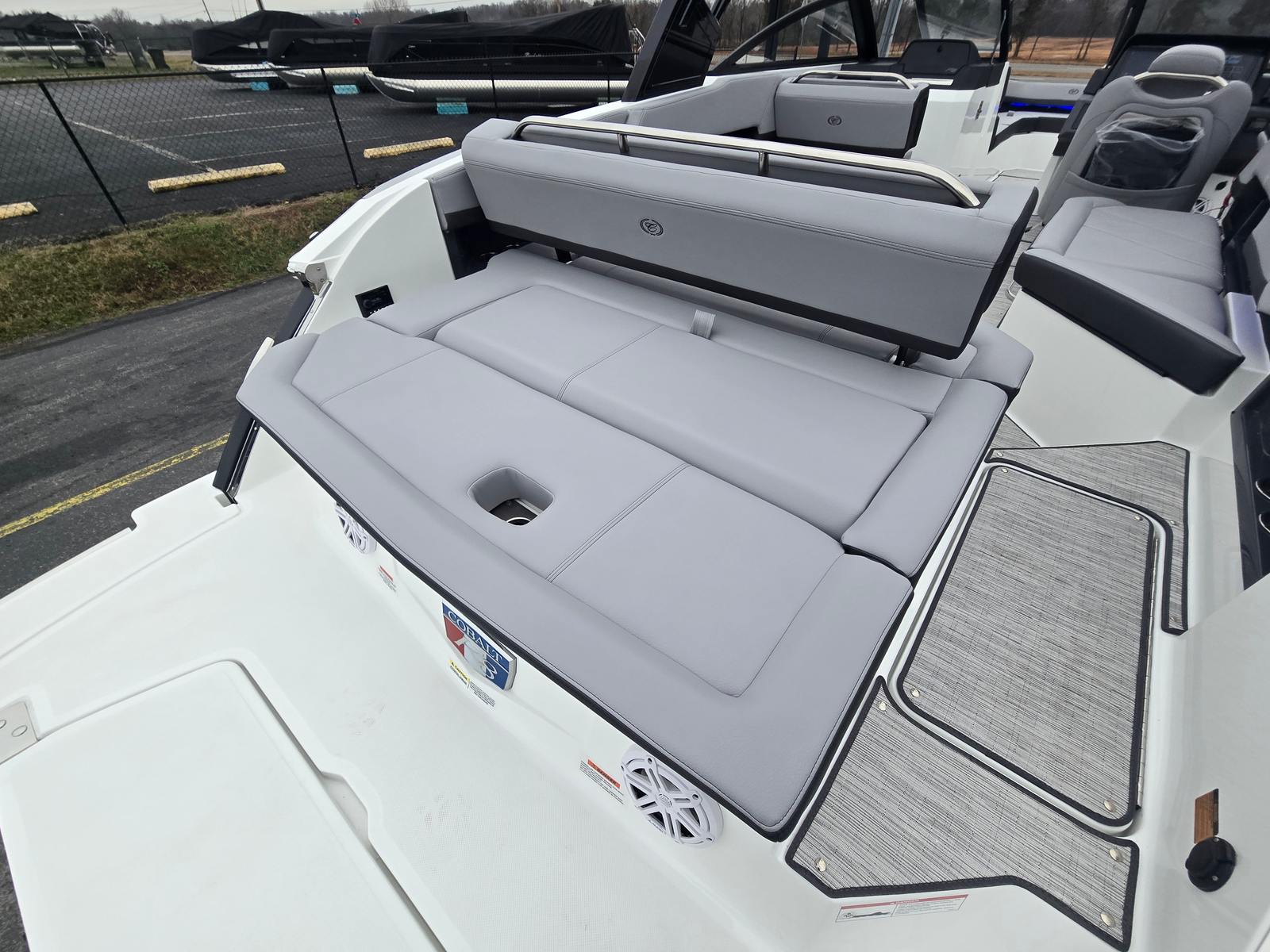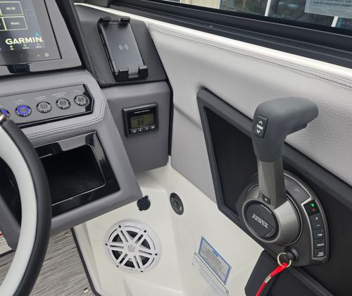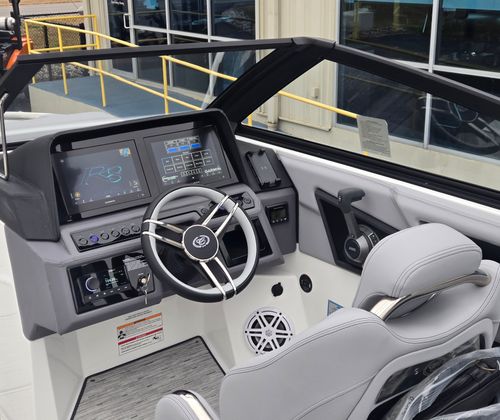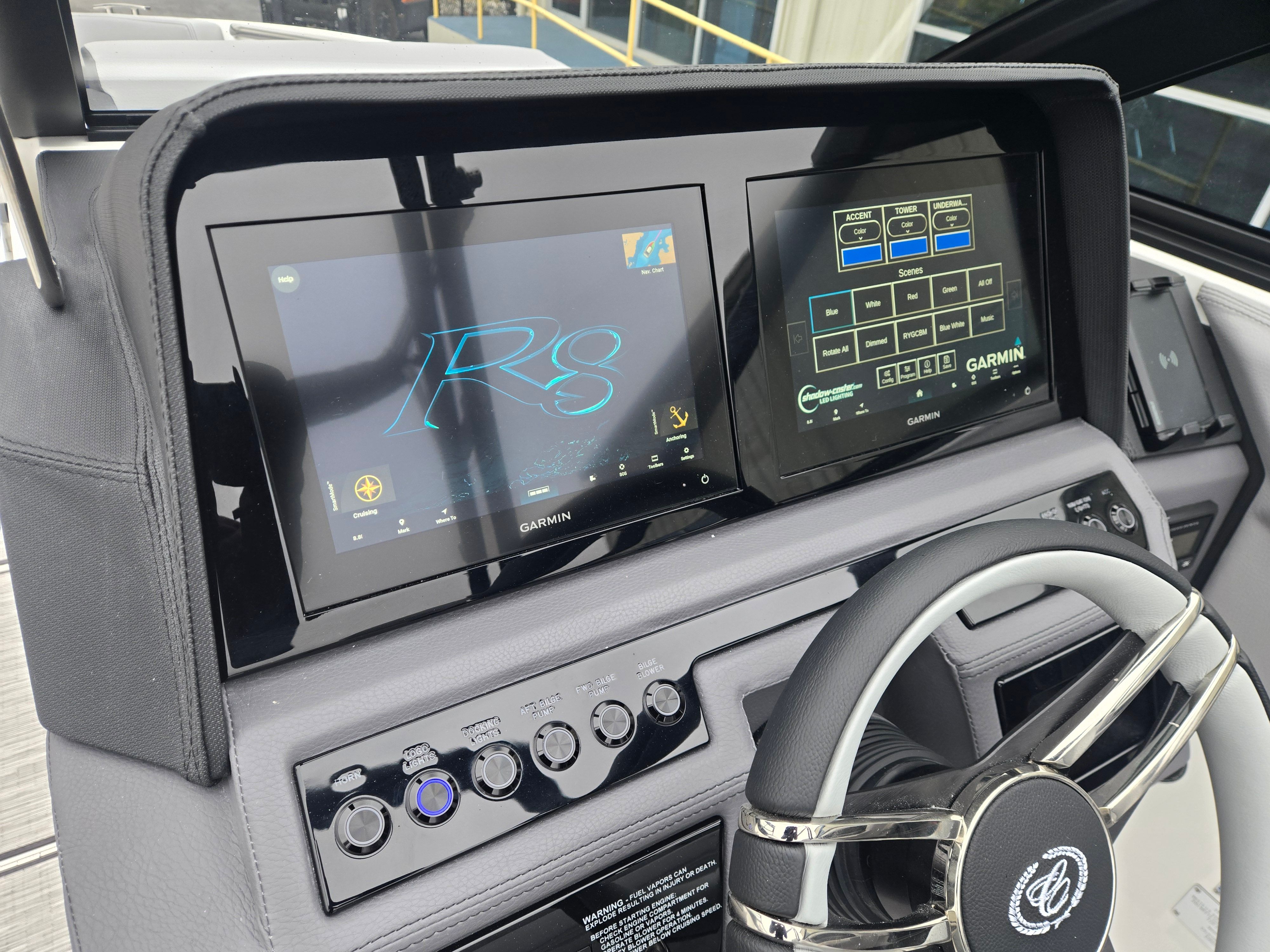 The Cobalt R8 Bowrider is packed with premium features designed to enhance your time on the water. The Black Arch, E2 (Folding) with Ebony Bimini provides stylish shade and protection from the sun, while the stainless steel docking lights ensure safe and easy docking in any conditions. The floor covering in Seagrass, Silver Ash adds a touch of elegance and comfort underfoot, perfectly complementing the Frost and Slate interior. The glass cockpit is equipped with dual Garmin 8610 displays, offering advanced navigation and system monitoring at your fingertips. For added convenience, the head features a pump-out Porta Potti, making longer trips more comfortable for everyone on board. The battery maintainer/charger (110V) keeps your systems powered and ready, so you can focus on enjoying your time on the water.