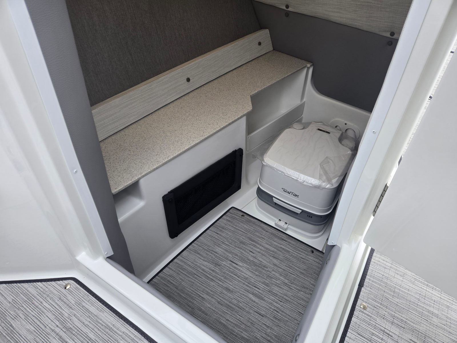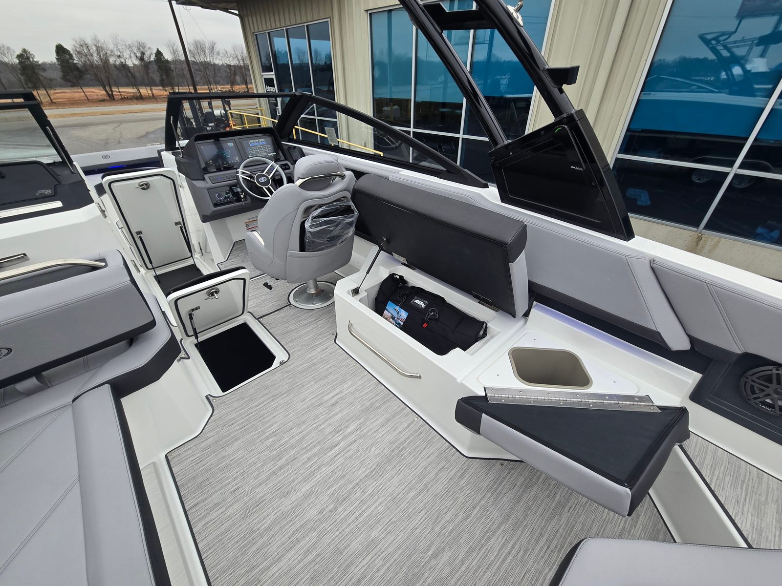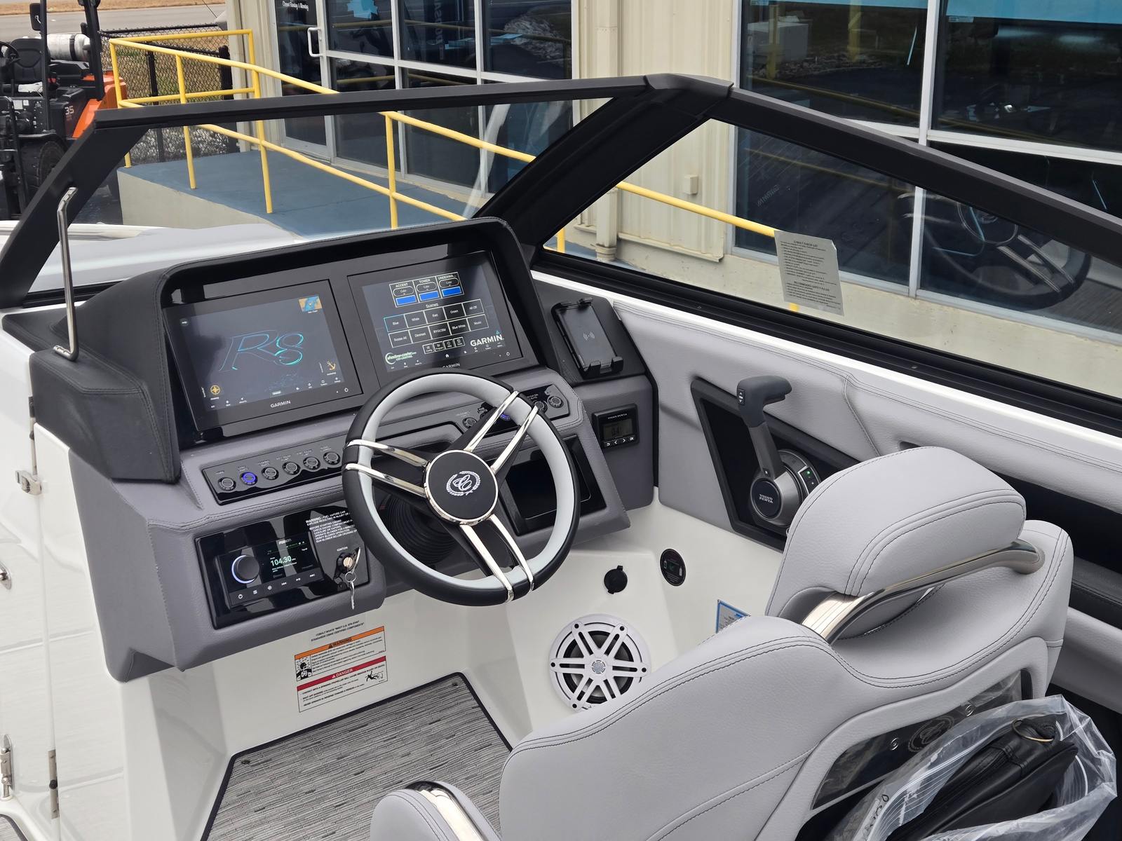 The Cobalt R8 Bowrider is packed with premium features designed to enhance your time on the water. The Black Arch, E2 (Folding) with Ebony Bimini provides stylish shade and protection from the sun, while the stainless steel docking lights ensure safe and easy docking in any conditions. The floor covering in Seagrass, Silver Ash adds a touch of elegance and comfort underfoot, perfectly complementing the Frost and Slate interior. The glass cockpit is equipped with dual Garmin 8610 displays, offering advanced navigation and system monitoring at your fingertips. For added convenience, the head features a pump-out Porta Potti, making longer trips more comfortable for everyone on board. The battery maintainer/charger (110V) keeps your systems powered and ready, so you can focus on enjoying your time on the water.