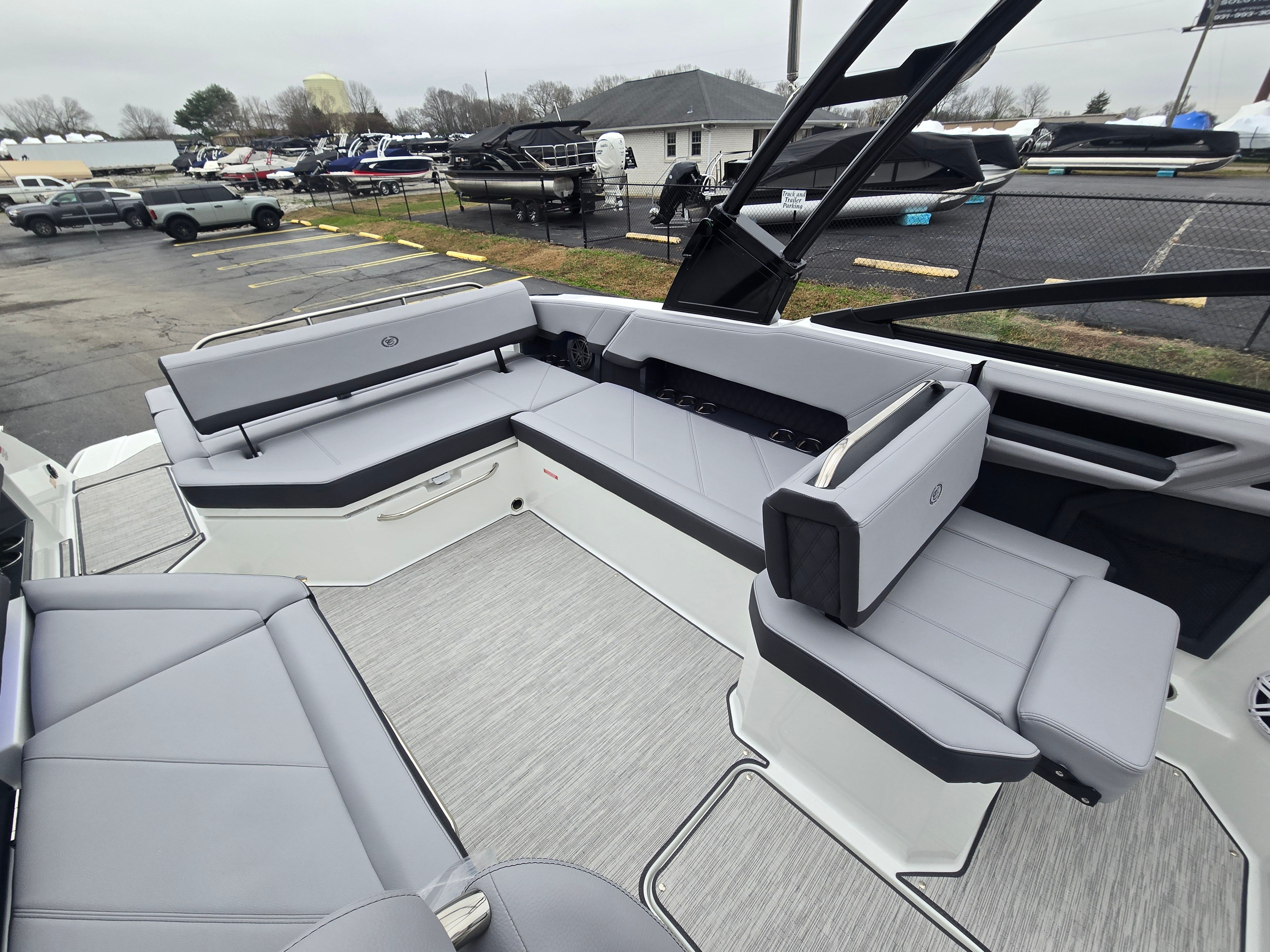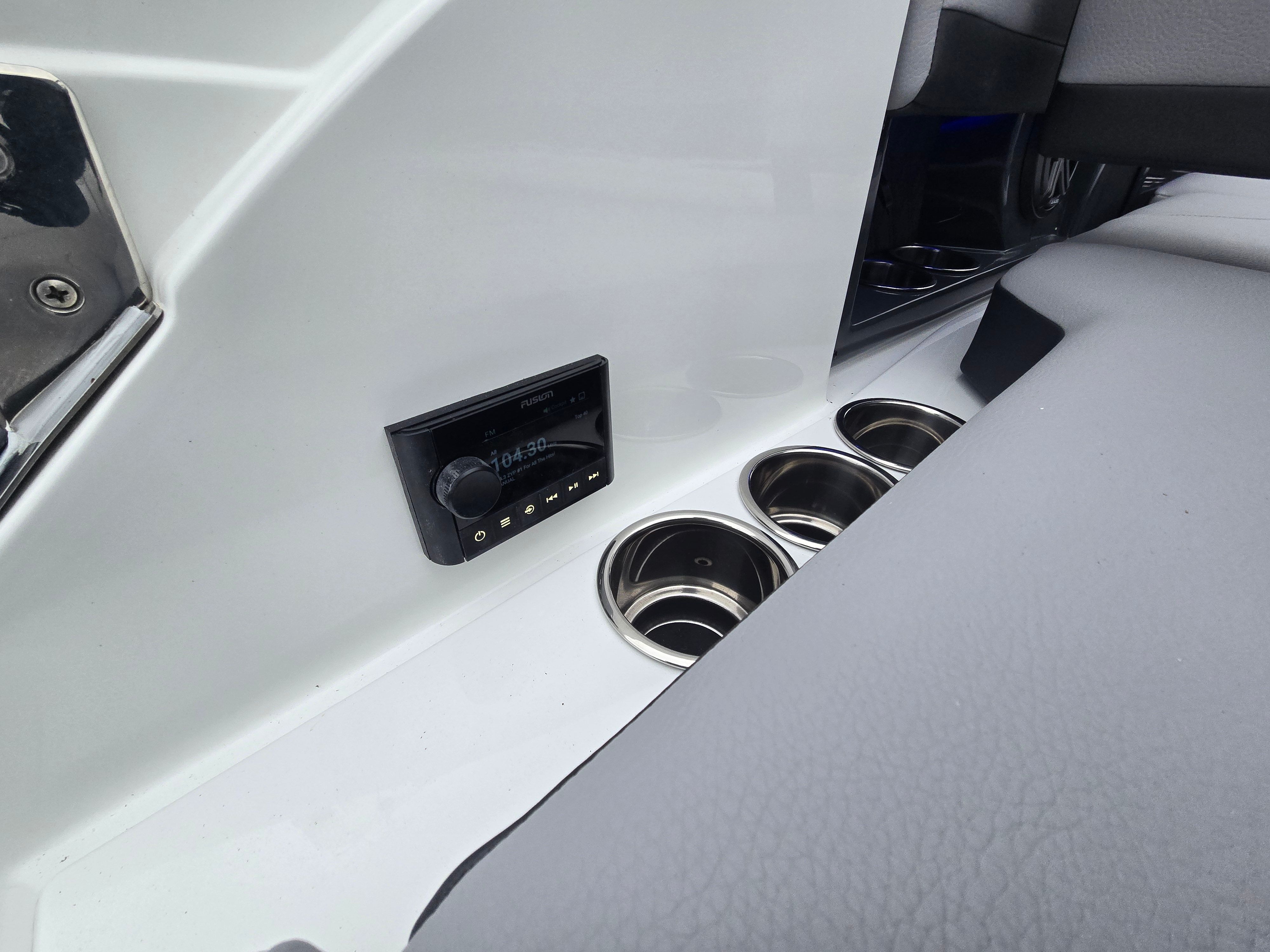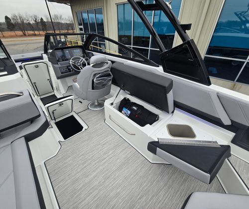 The Cobalt R8 Bowrider is designed with practicality in mind, making ownership both enjoyable and hassle-free. The folding arch and bimini system provide flexible shade options, allowing you to adapt to changing weather conditions with ease. The stainless steel docking lights make nighttime arrivals and departures safer, while the battery maintainer/charger ensures your boat is always ready for action. The spacious layout offers plenty of storage for gear, snacks, and personal items, keeping the deck clutter-free and organized. The pump-out Porta Potti adds convenience for longer trips, eliminating the need for frequent stops. With its efficient engine and advanced navigation systems, the R8 is easy to dock, maneuver, and maintain, giving you more time to focus on fun and relaxation.
