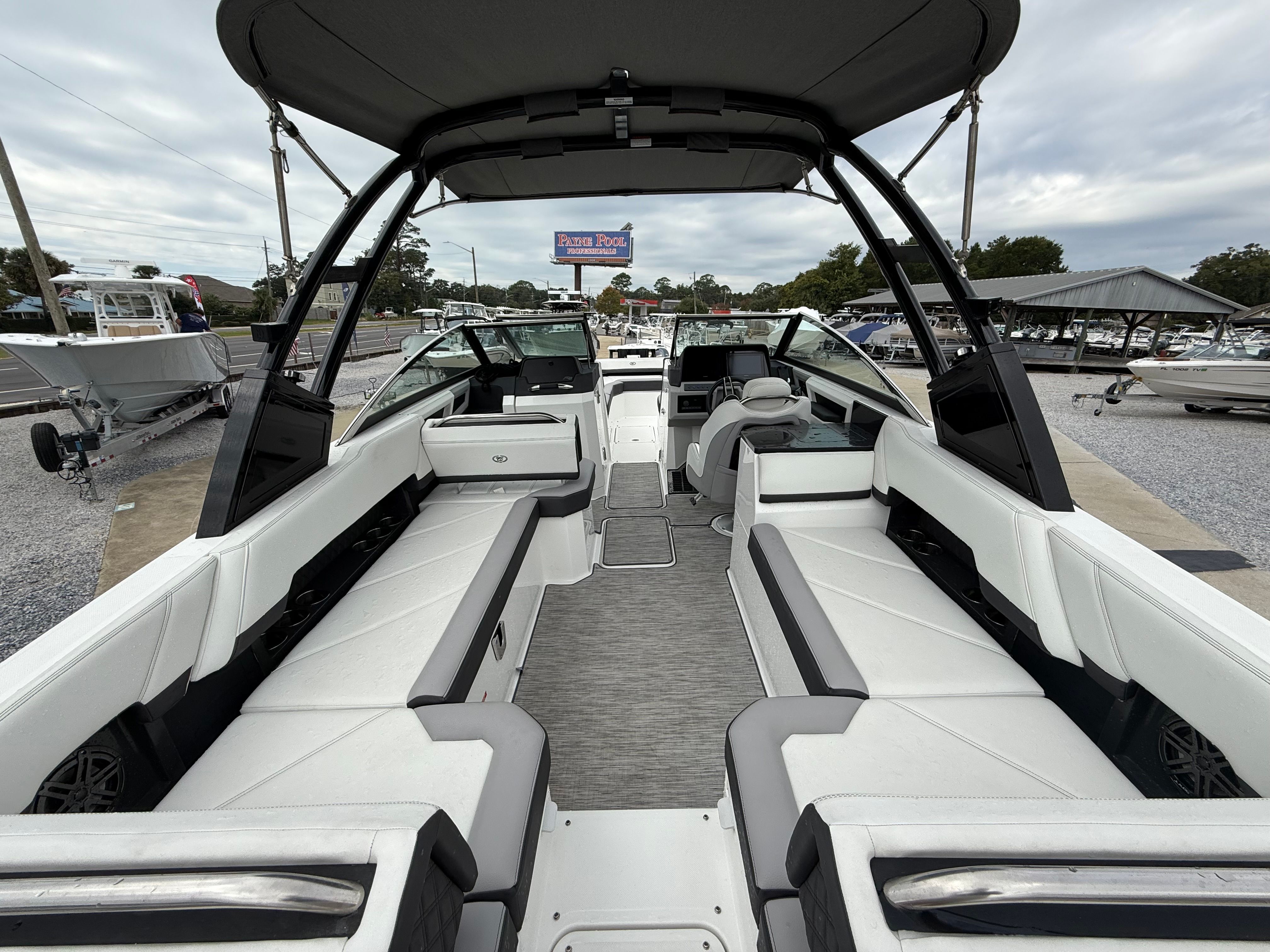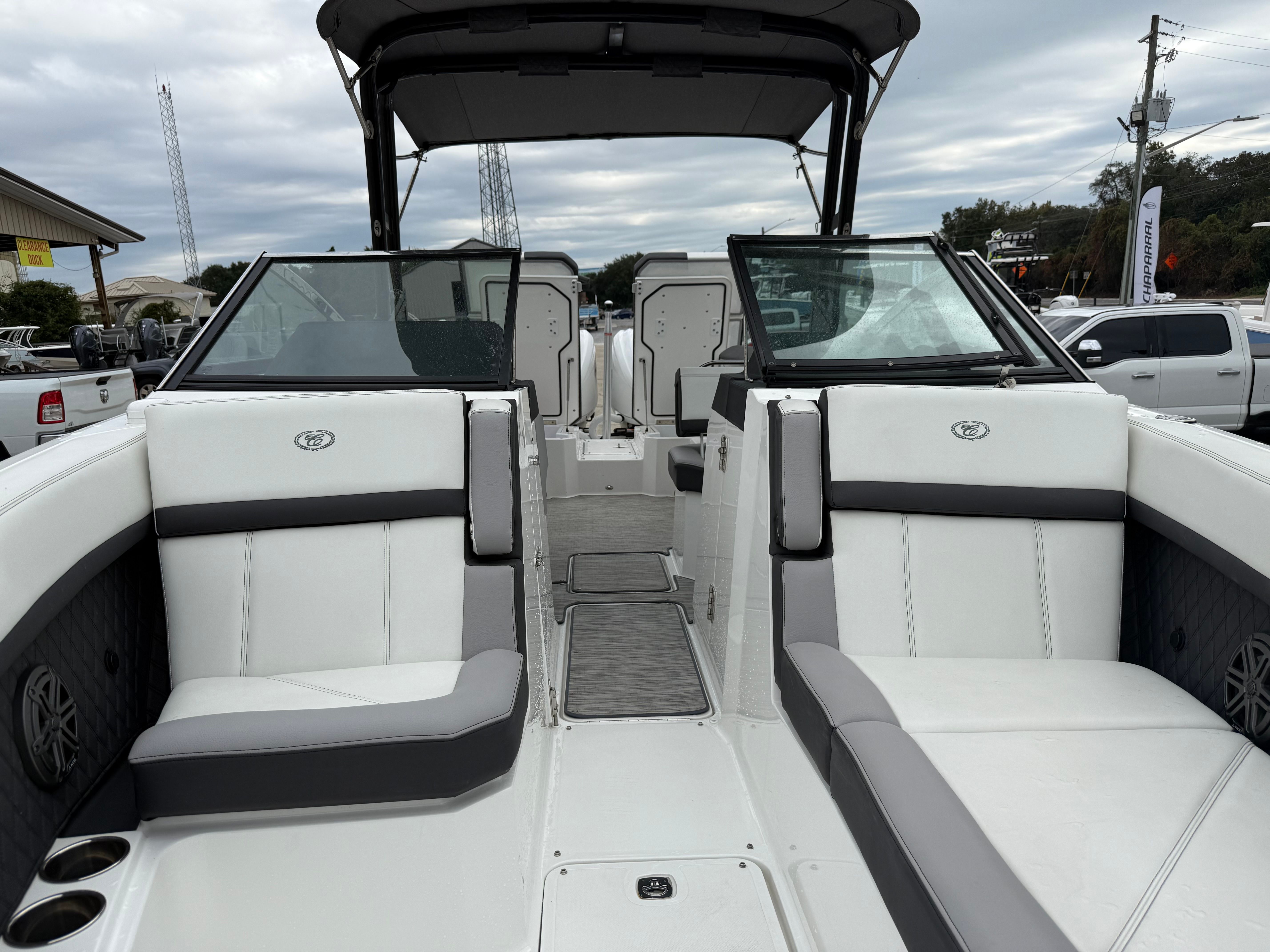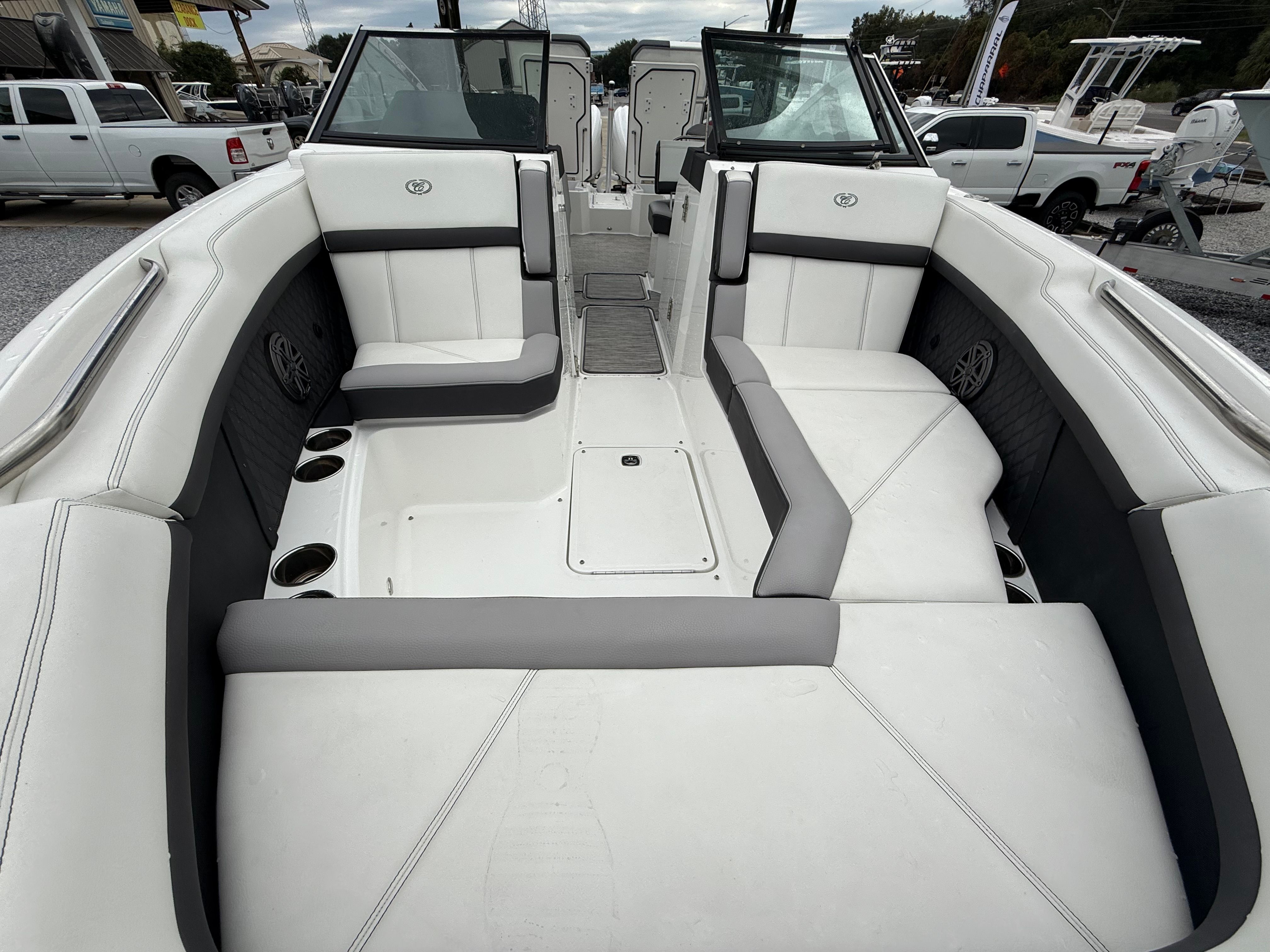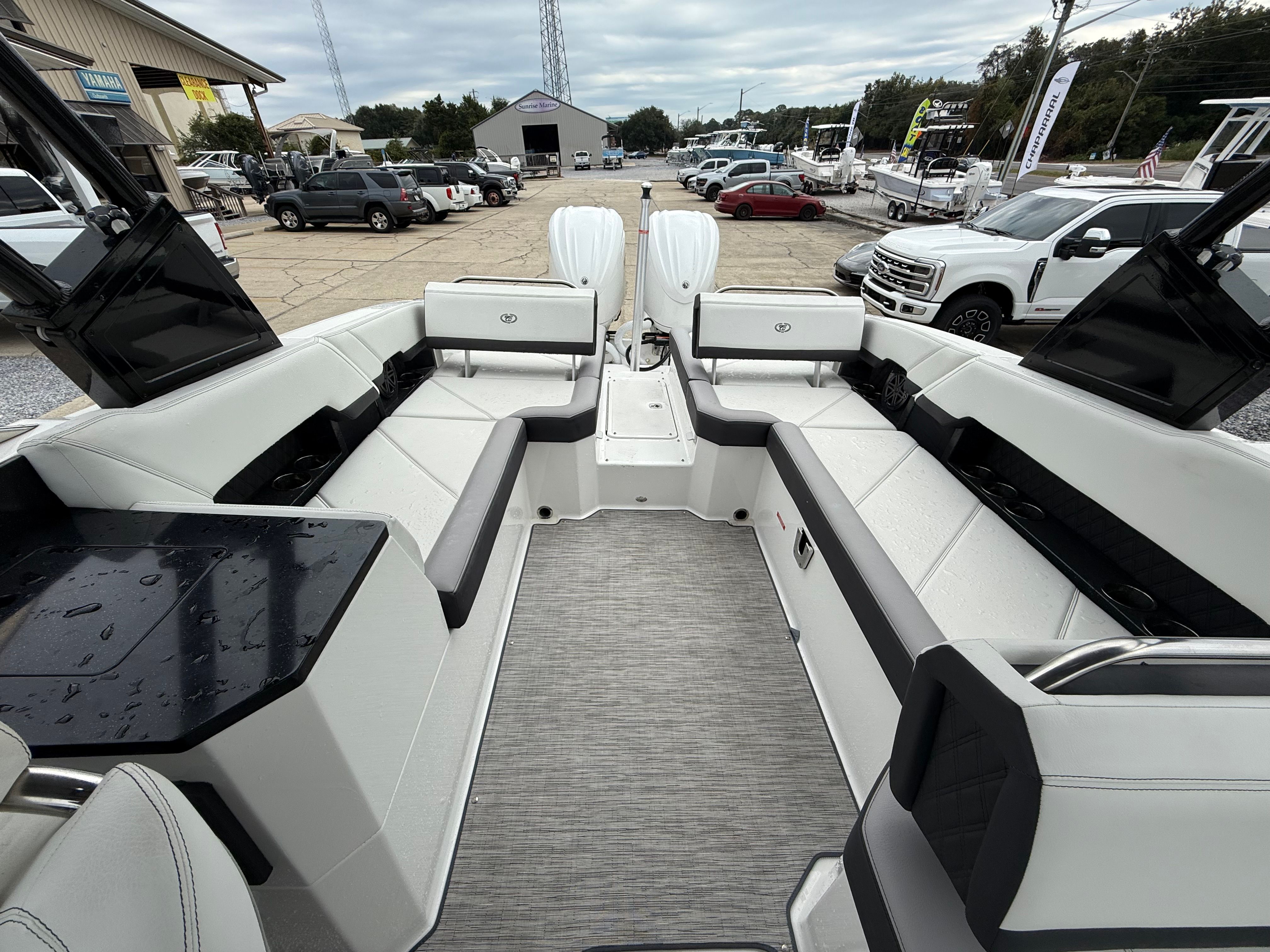 Under the hood, the Cobalt R8 is powered by twin engines, delivering a combined 600 horsepower. This robust setup ensures exhilarating acceleration, smooth cruising, and the power needed for a variety of water sports. Whether you are towing skiers, racing across the lake, or enjoying a leisurely cruise, the R8’s performance capabilities make every outing memorable. The dual-engine configuration also enhances maneuverability and control, providing confidence whether you are docking in tight spaces or navigating open waters.
