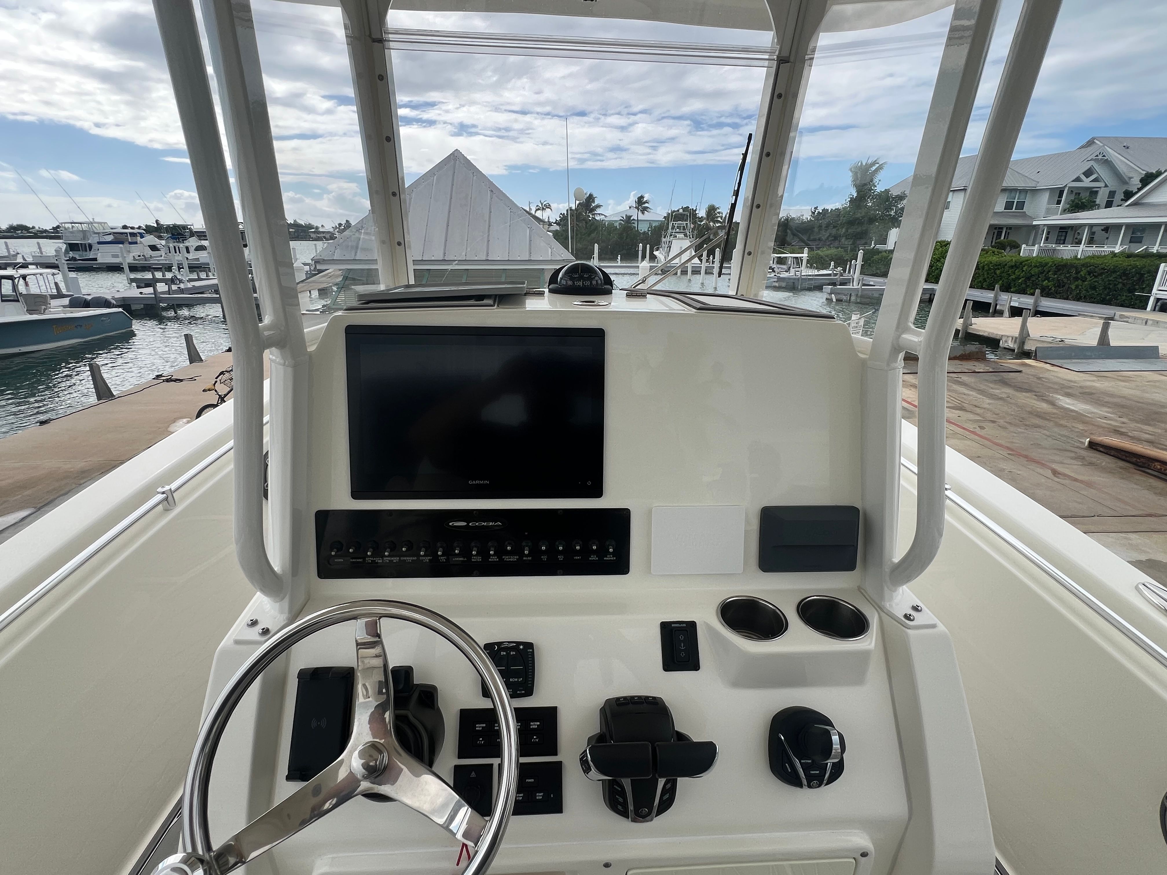 Just Listed! Extremely clean 2024 Cobia 262 Center console! Powered with twin Yamaha 200s (only 58 hours!) with integrated digital steering, and Yamaha YES warranty out to December of 2029! This boat is equipped with a windlass, forward seating with backrests, a head, a Garmin 16" screen, Yamaha full maneuverability joy stick, Garmin vhf radio, fusion sound system, very well kept seadek, and a full boat cover. She offers plenty of seating for your sunset cruises and sandbar days, while also offering tackle storage and fish boxes for your days fishing on the reef. This center console is the perfect size to do a little bit of everything on the water. This boat is listed offsite and can be shown by appointment. Give us a call to schedule your showing today!