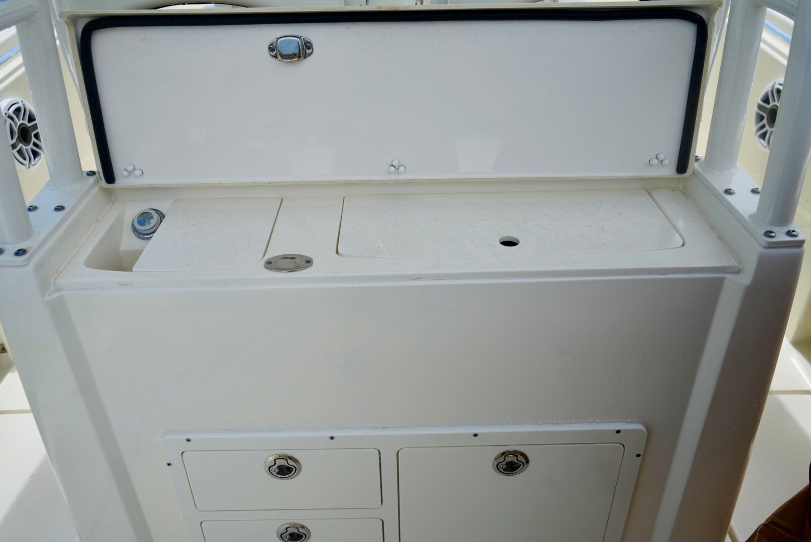 Powering the Cobia 301 CC are twin engines, delivering a combined 600 horsepower for thrilling acceleration and smooth cruising. With only 27 engine hours, these engines promise reliability and longevity, giving you peace of mind whether you’re heading offshore or exploring local waterways. The Center Console design enhances visibility and maneuverability, allowing for precise handling in various conditions. Whether you’re chasing the horizon or navigating tight marinas, the Cobia 301 CC responds with agility and confidence, making it a top choice among Center Console boats for sale.