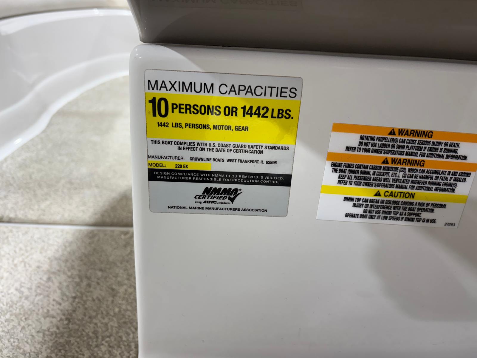 This Bowrider boat for sale is not just about fun – it is also practical and user-friendly. The ample storage space allows you to bring along everything you need for a day on the water, from coolers and snacks to water sports equipment and extra towels. The swim platform makes swimming and water access a breeze, while the intuitive layout ensures that docking and maneuvering are straightforward, even for less experienced boaters.Fuel efficiency is another advantage of the Crownline 220 EX, allowing you to spend more time enjoying the water and less time refueling. The durable construction and reliable engine mean you can count on this boat for years of dependable service, making it a smart investment for anyone looking to enhance their boating lifestyle.
