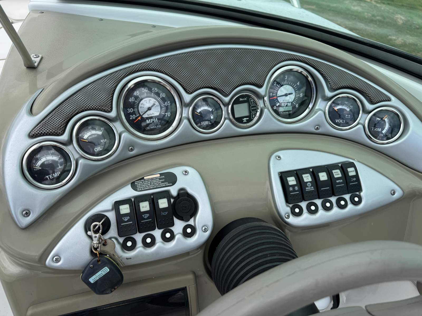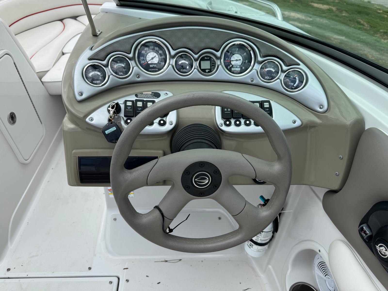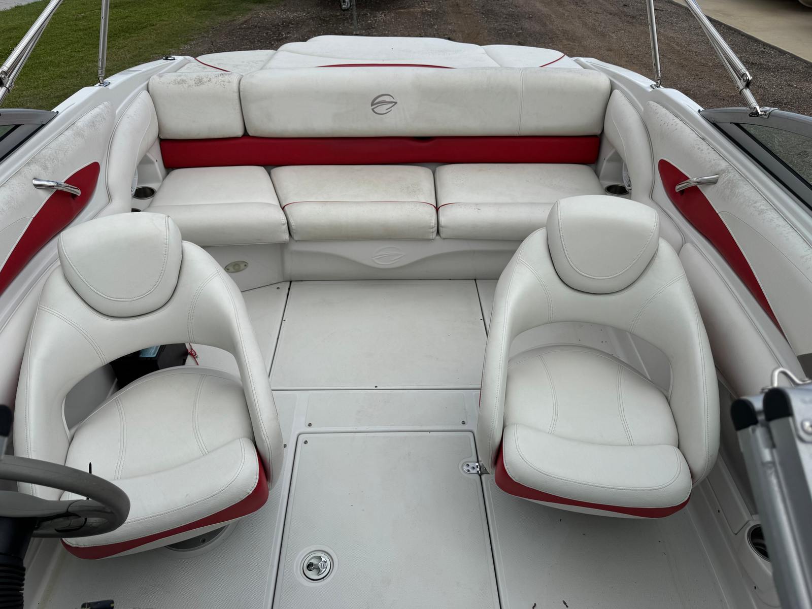 Under the hood, the Crownline 220 LS is powered by a single engine delivering an impressive 260 horsepower. With only 1 engine hour, this used bowrider offers nearly new performance, ensuring reliability and plenty of power for all your aquatic adventures. Whether you are cruising across the lake, towing water skiers, or simply enjoying a leisurely ride, the 260 HP engine provides smooth acceleration and responsive handling. The efficient powertrain makes this Crownline boat for sale a joy to operate, delivering both speed and stability for a wide range of activities.