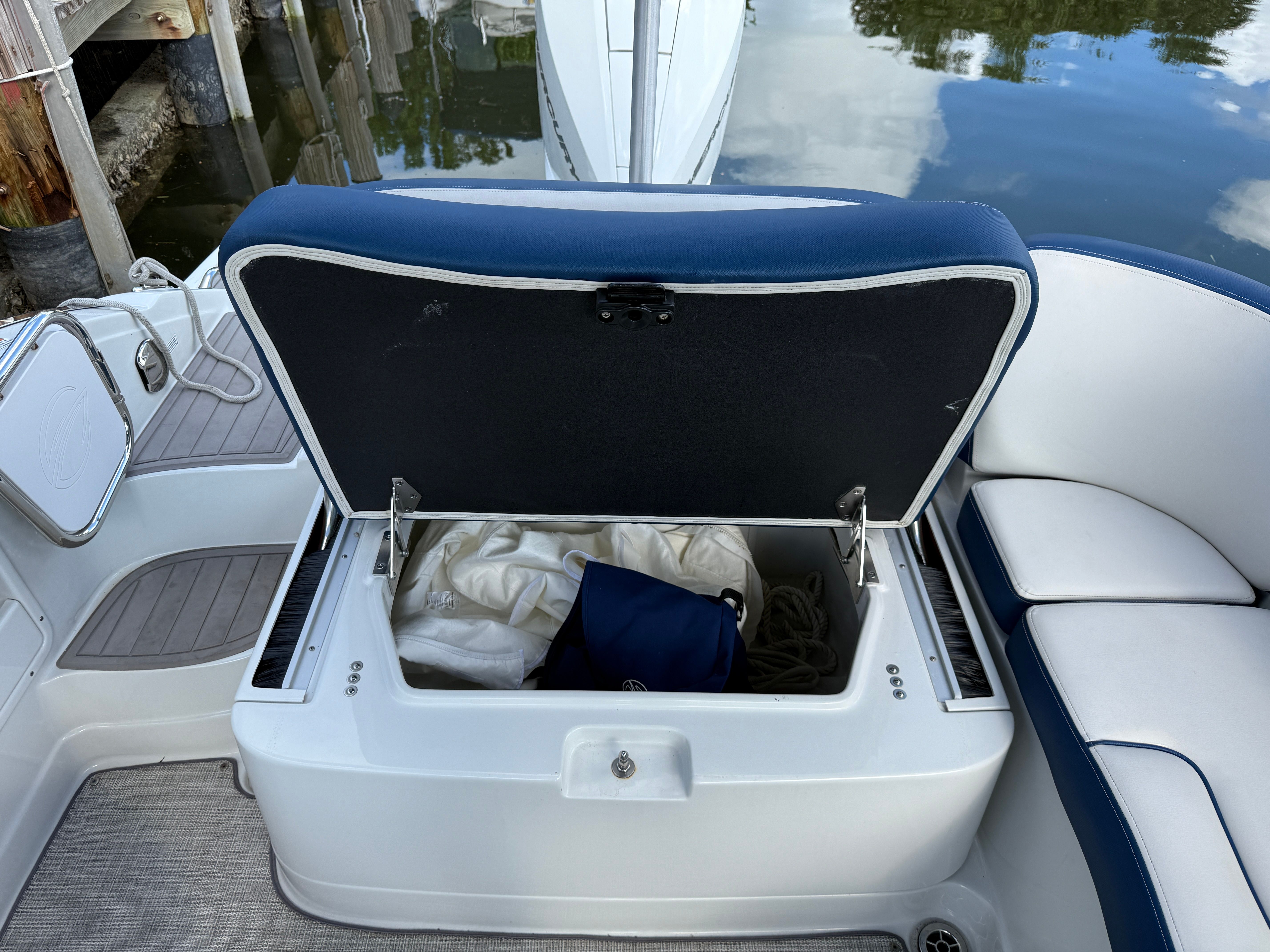 Performance: Powering the Crownline 260 XSS is a single engine delivering an impressive 250 horsepower. With only 63 engine hours, this Bowrider is primed for many more seasons of smooth cruising and exhilarating rides. The engine’s robust output ensures quick acceleration, responsive handling, and the ability to tackle a variety of water conditions with confidence. Whether you’re slicing through calm lakes or navigating coastal waters, the 260 XSS offers a dynamic and enjoyable ride. The efficiency and reliability of the engine make this Crownline boat for sale a smart investment for those who value performance and peace of mind.