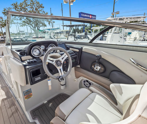 The Crownline 285 SS Bowrider is designed with both comfort and convenience in mind. Its spacious layout allows for easy movement throughout the boat, with generous seating areas that invite guests to stretch out and enjoy the ride. The helm is thoughtfully arranged for intuitive control, while the open bow provides a perfect spot for sunbathing or taking in the views. Storage compartments are strategically placed to keep gear organized and out of the way, ensuring a clutter-free environment. The boat’s high-quality construction and attention to detail are evident in every aspect, from the sleek exterior to the inviting interior spaces.