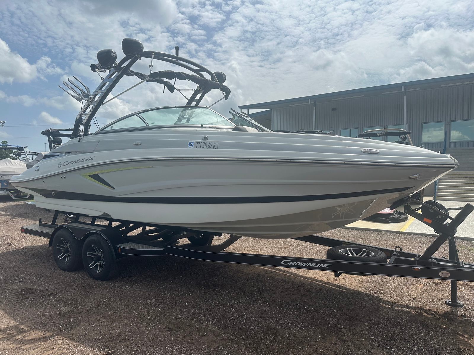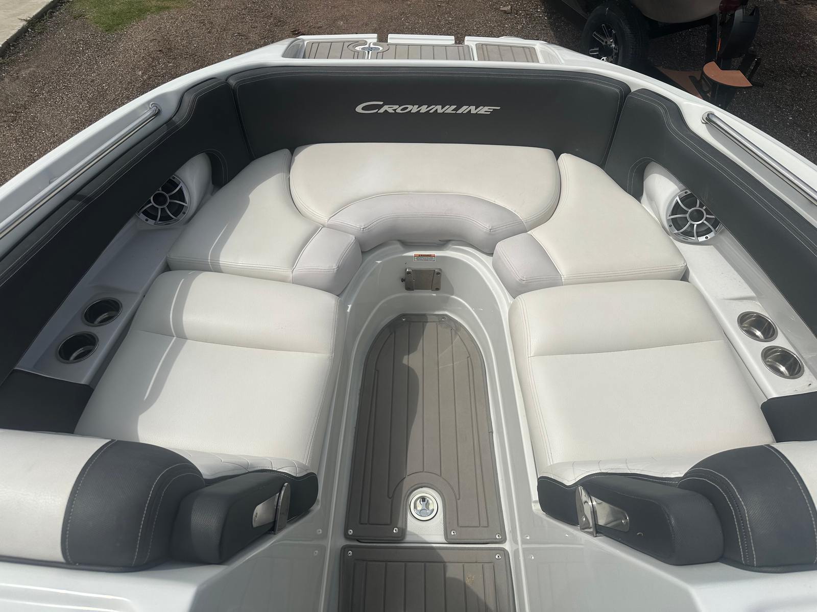 The Crownline E255 Surf is packed with features that enhance both performance and comfort. Its spacious Bowrider layout provides plenty of seating for guests, making it ideal for social gatherings and family outings. The ergonomic design ensures everyone on board can relax in style, while the open bow area is perfect for sunbathing or enjoying the breeze. The E255 Surf’s surf-ready capabilities make it a top choice for water sports enthusiasts, offering the perfect platform for wake surfing and other activities.This model’s attention to detail is evident in its high-quality materials and finishes. From the plush upholstery to the sleek dashboard, every aspect of the E255 Surf is crafted for durability and visual appeal. The intuitive helm station puts all controls within easy reach, allowing the captain to navigate with confidence and ease. With its generous length and smart layout, this Bowrider boat for sale offers plenty of room for coolers, water toys, and personal belongings, ensuring you’re always prepared for a day on the water.