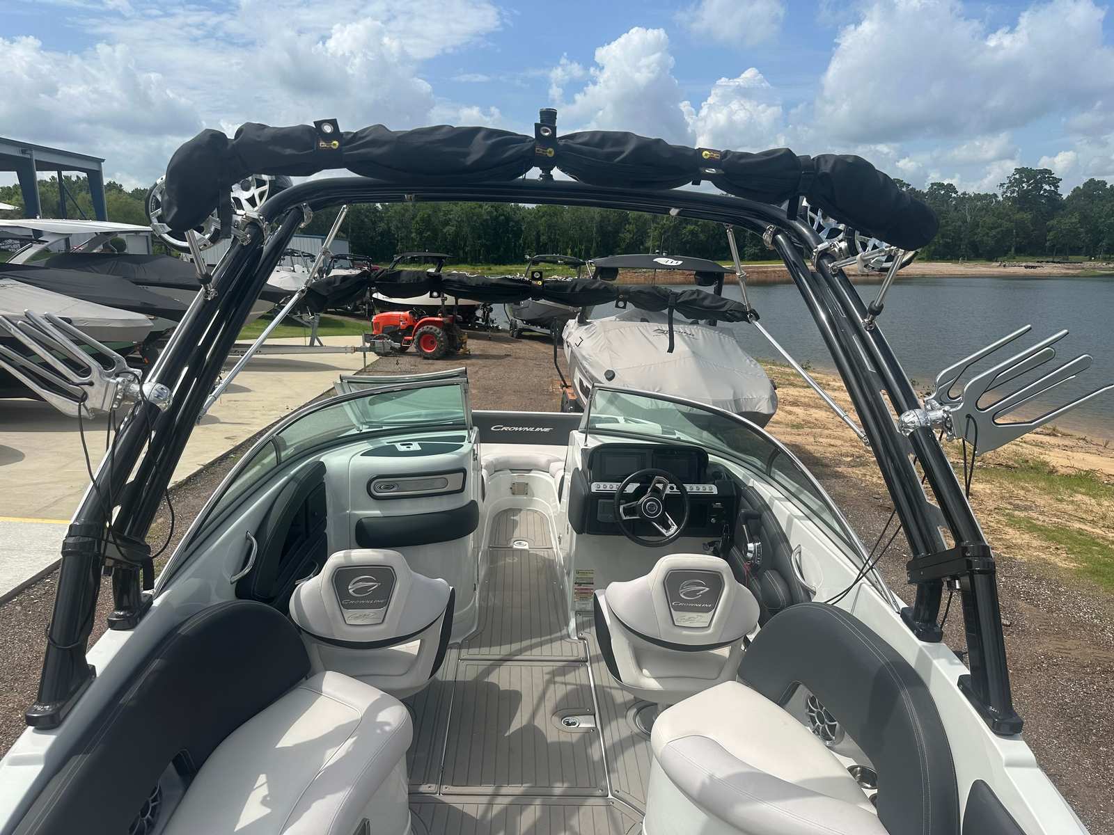 Practicality is at the heart of the Crownline E255 Surf’s design. The spacious deck and smart storage solutions make it easy to keep your gear organized and accessible. Docking is a breeze thanks to the boat’s responsive handling and manageable size, while the efficient engine helps keep fuel costs in check. Whether you’re heading out for a quick afternoon escape or a full day of adventure, this Bowrider is designed to make every outing hassle-free and enjoyable.The E255 Surf’s user-friendly features ensure that both seasoned boaters and newcomers can operate it with confidence. The intuitive controls and clear instrumentation make navigation straightforward, while the comfortable seating and open layout provide a welcoming environment for all passengers. With its blend of performance and practicality, this Crownline boat for sale is an excellent choice for families, couples, and groups of friends.
