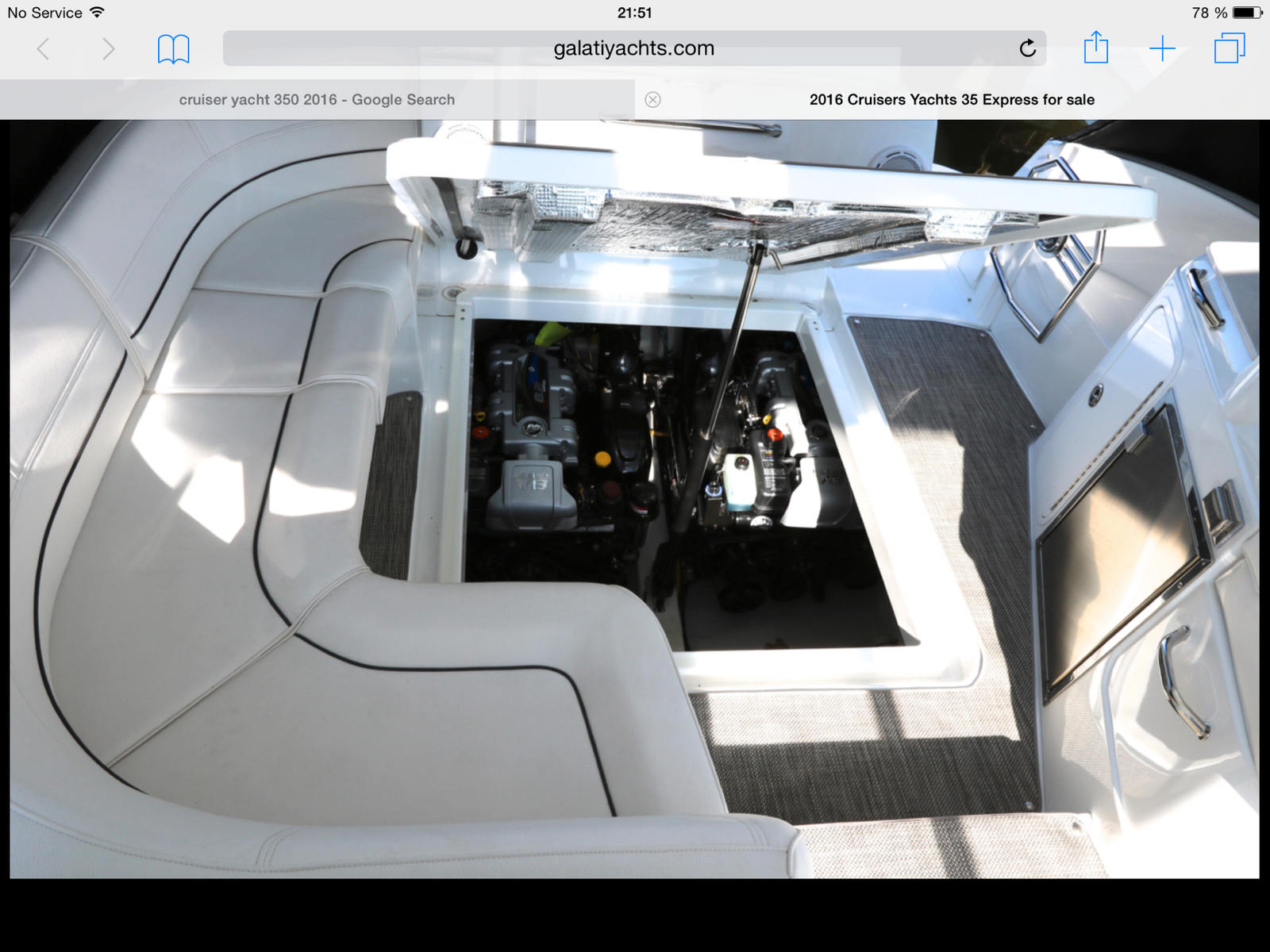 The 2016 Cruisers Yachts 35 Express measures an impressive 36 feet in length, providing ample space for relaxation, entertainment, and exploration. This used express cruiser boat for sale has been meticulously maintained and is ready to deliver countless hours of enjoyment on the water. With its sleek lines, modern design, and attention to detail, the 35 Express stands out in any marina and is sure to turn heads wherever you go.